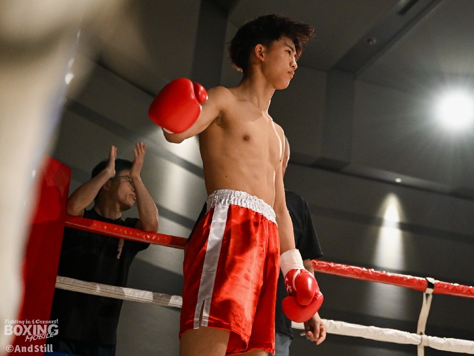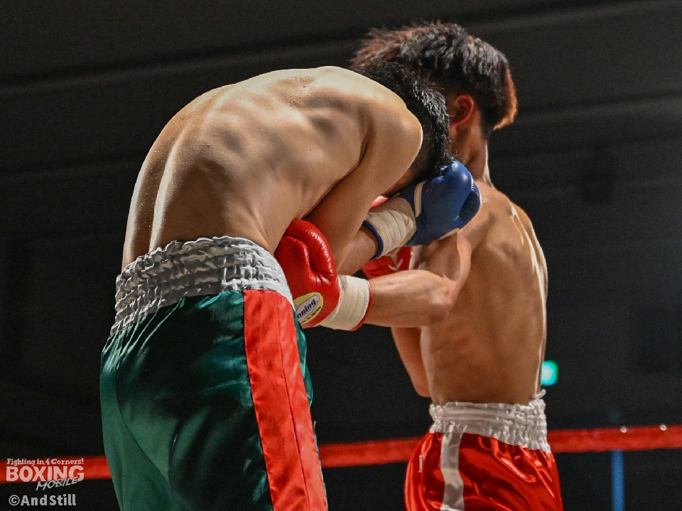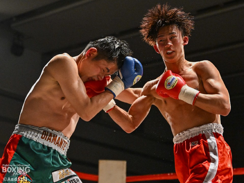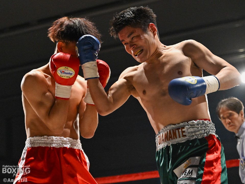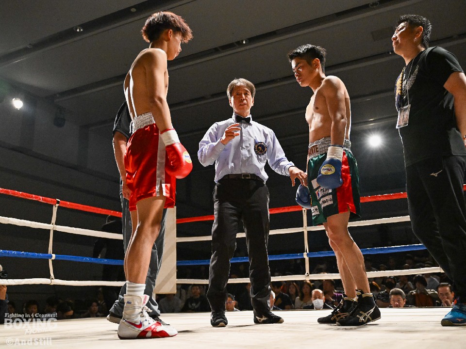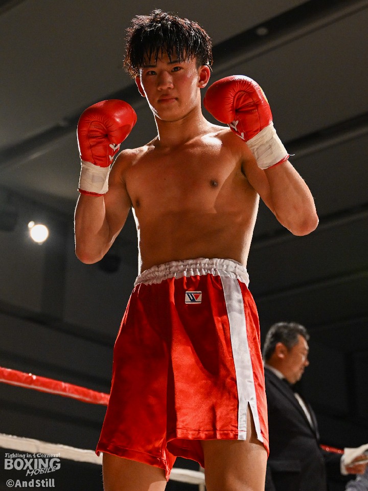試合:中原がジャブから左ボディにつなげて先制攻撃。前林は左右フックを叩きつけて対抗。初回は中原のテンポの良さが光った。2回、前林はブンブンと左右を振ったが、中原は左ボディから上下に打ち分け優勢をアピール。3回、中原はジャブを軸に足を使って回り込むが、前林は圧力をかけて回転数を上げた。4回、前林はボディにパンチを集めて積極的な攻撃。中原はジャブを忘れずコツコツと当ててペースを渡さず。6回、「良則」コールに後押しされた前林は最後の力を振り絞ったが、中原はアウトボクシングを徹底した。終始、有効打で上回った中原が勝利した。
