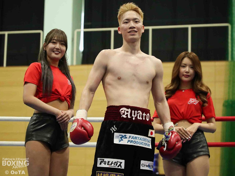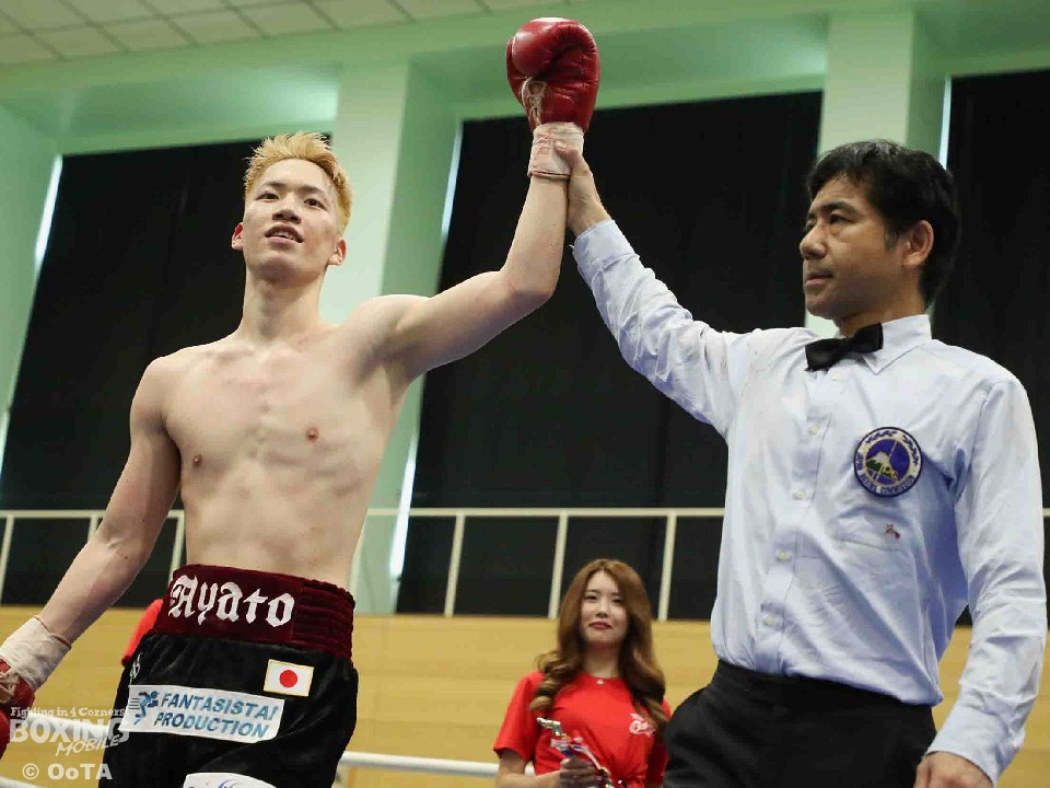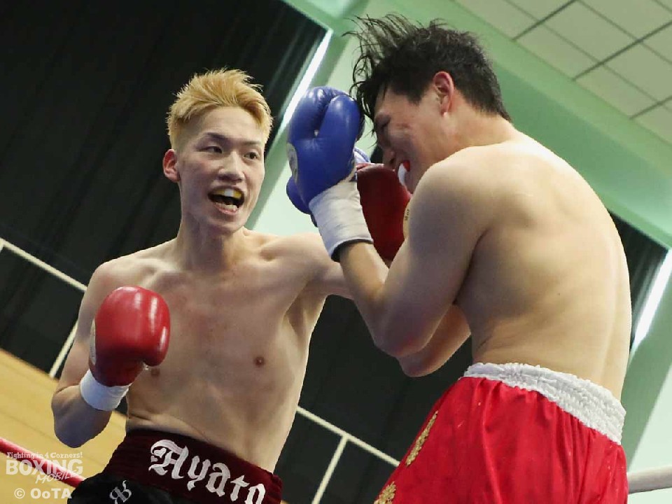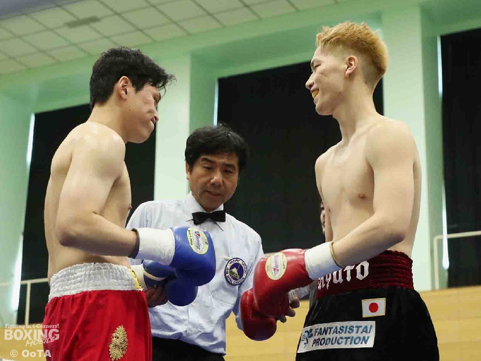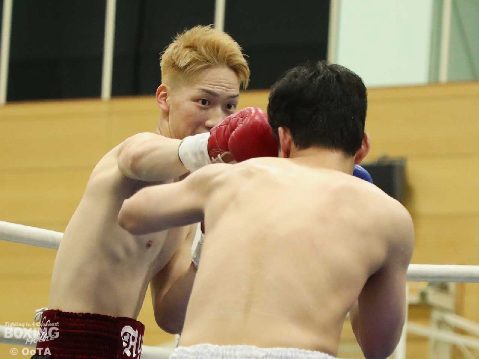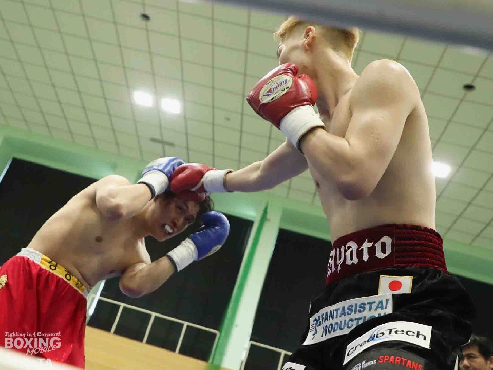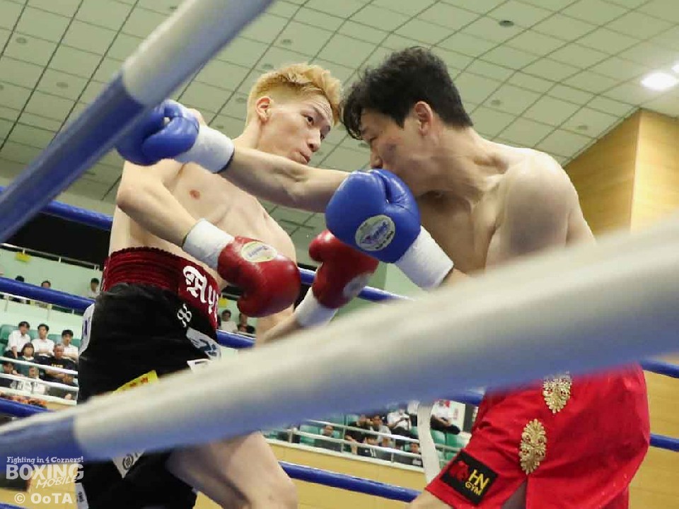 試合:サウスポー古森がリーチ差を生かして左ストレートを好打。カンはガードを固めて前に出るも、防戦が続く中で右目をパンチによってカット。苦しい展開となった。2回、ここもガードを固めて前に出るカンだが、古森は的確にパンチを集めてダメージを加算させて行くと、青コーナーからタオルが投入。そのままストップとなった。