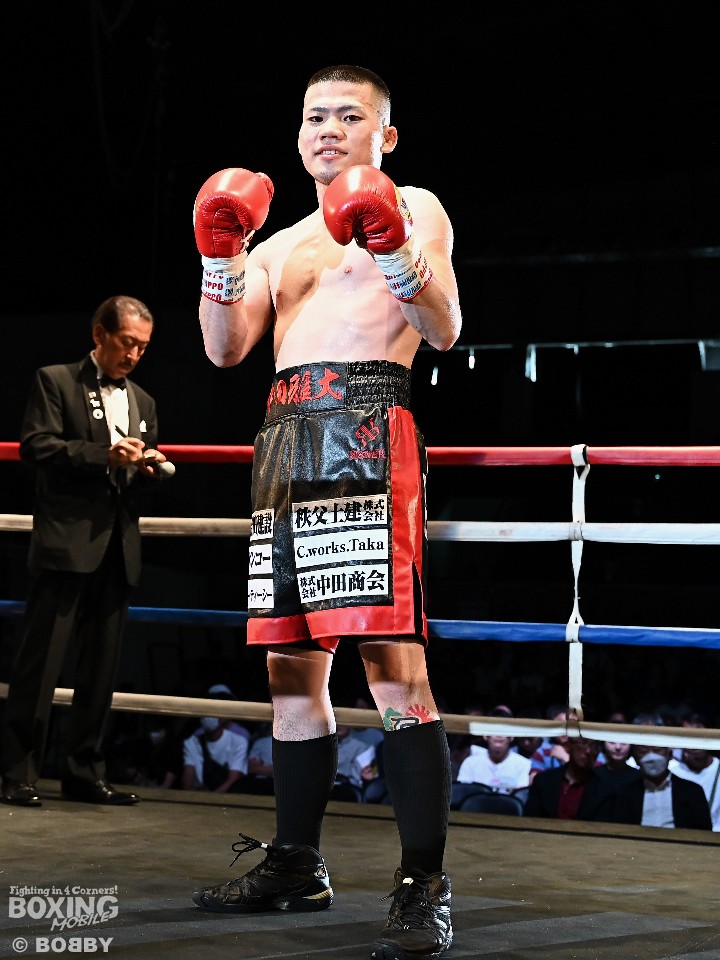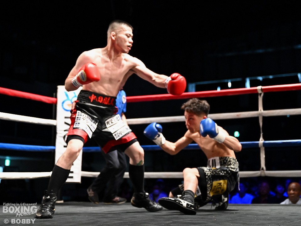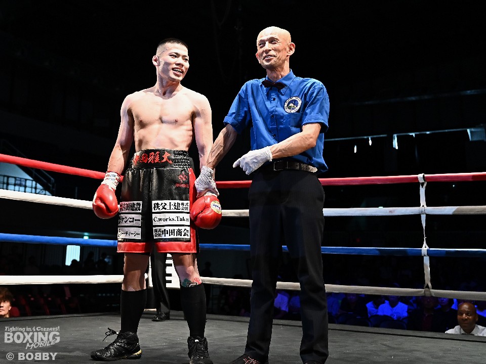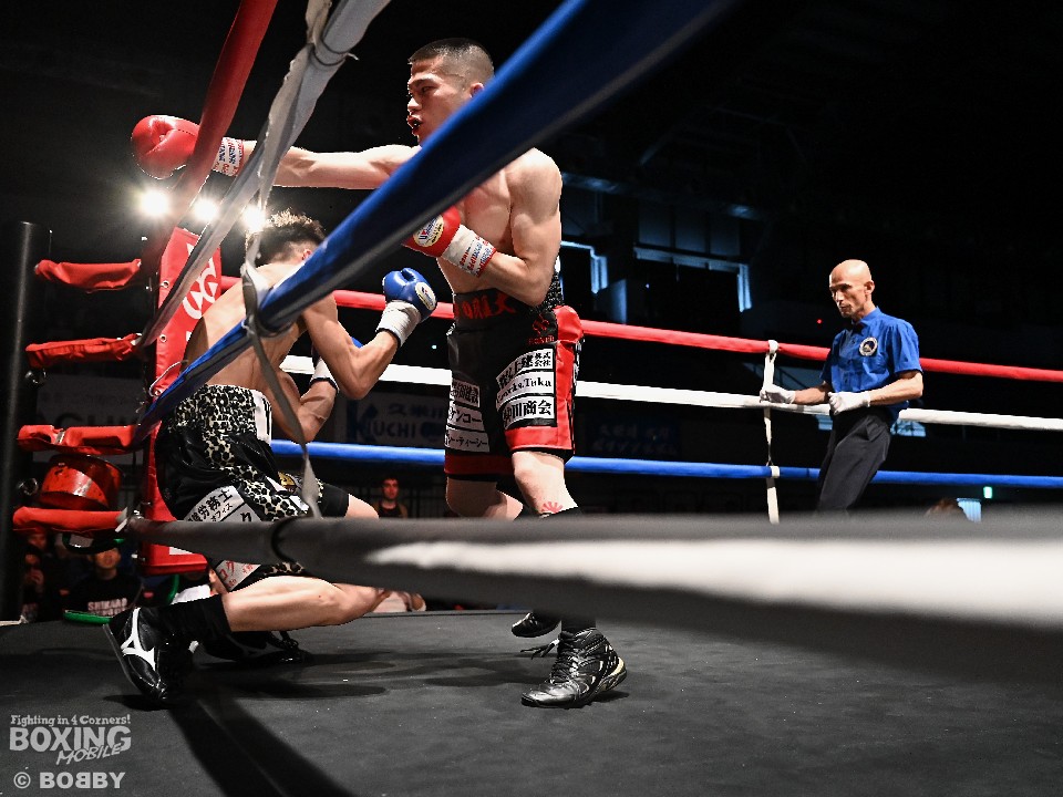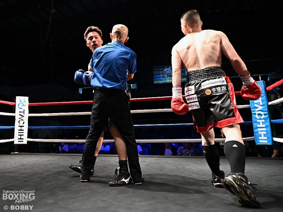 試合:ジャブの差し合いから始まった試合。中田が右ストレート、左フックと顔面を連打で叩くと、バランスを崩した仲嶺を見て、レフェリーがダウンを宣告。すぐに試合が再開されると、前に出てきた仲嶺に左アッパーを合わせた中田がダウンを追加。立ち上がった仲嶺に対して、中田が左ロングアッパーでアゴをとらえた瞬間にレフェリーが試合を止めた。