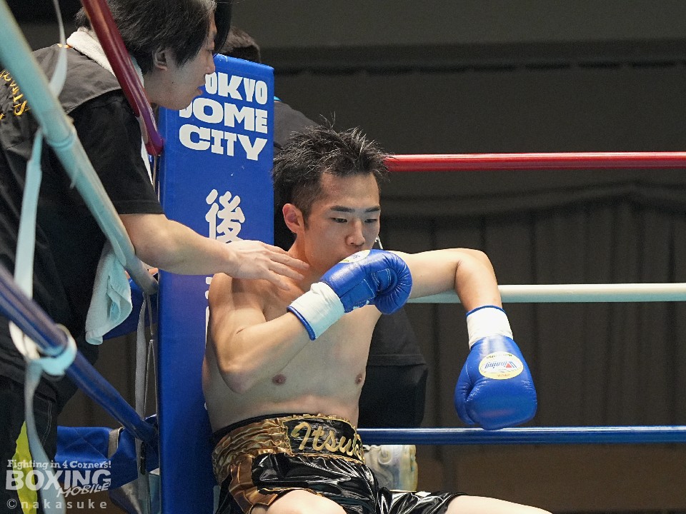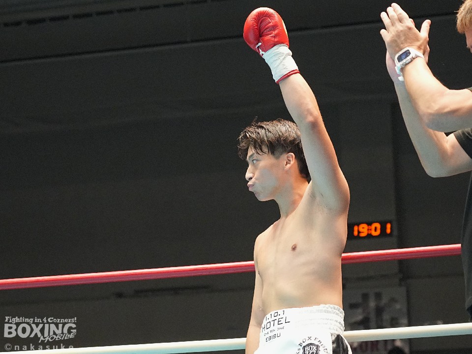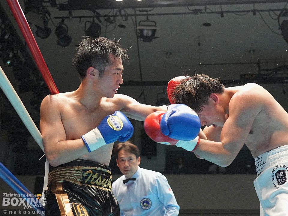 試合:サウスポー同士のデビュー戦。初回、篠田がジャブから強力な左フックをヒット。伊藤はジャブから立て直すと、左フックで対抗。2回、共に大きな左右フックを振りかぶると、伊藤は左フックをヒット、篠田はボディにパンチを集めた。この回、レフェリーは篠田にブレイク後の加撃により、減点を言い渡した。3回、互いにボディからパンチを上に返し、どちらも引かないビッグパンチの応酬で会場を大いに沸かせた。4回、互いに消耗の見える中、壮絶な打ち合いが続き、互いの応援団の声が会場に響き渡った。採点は割れたが篠田に軍配が上がった。