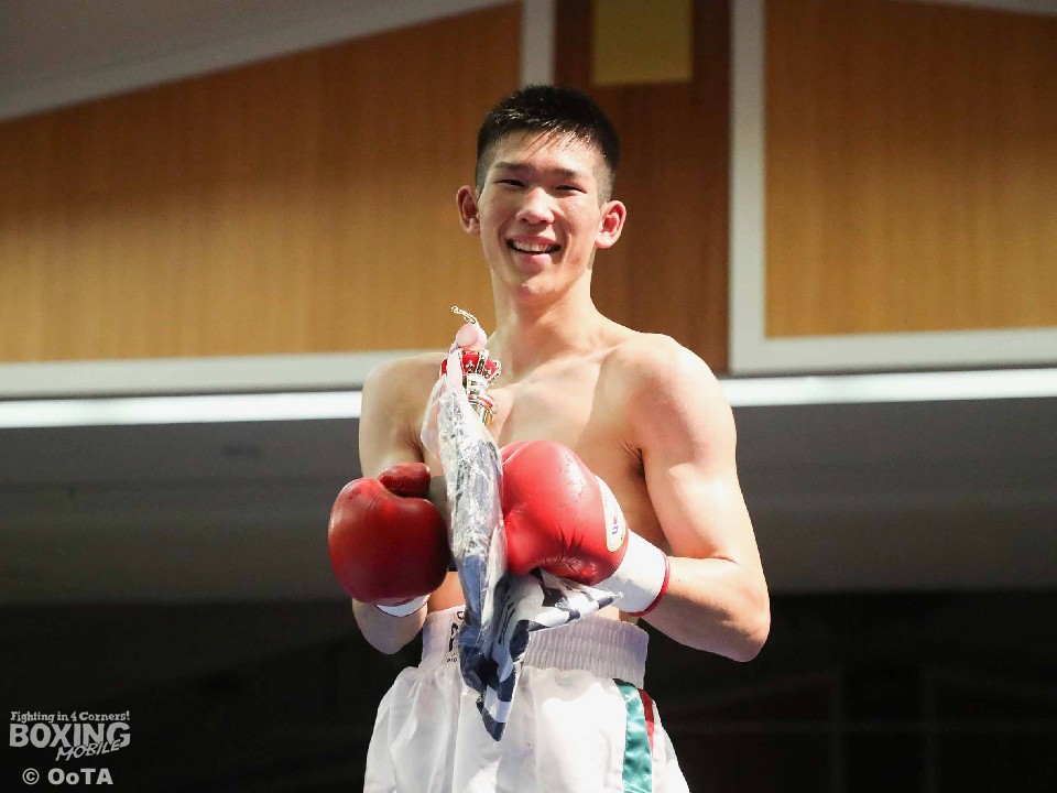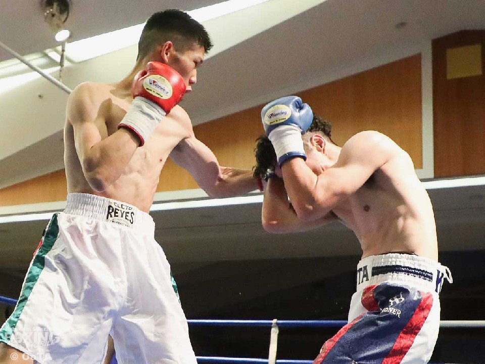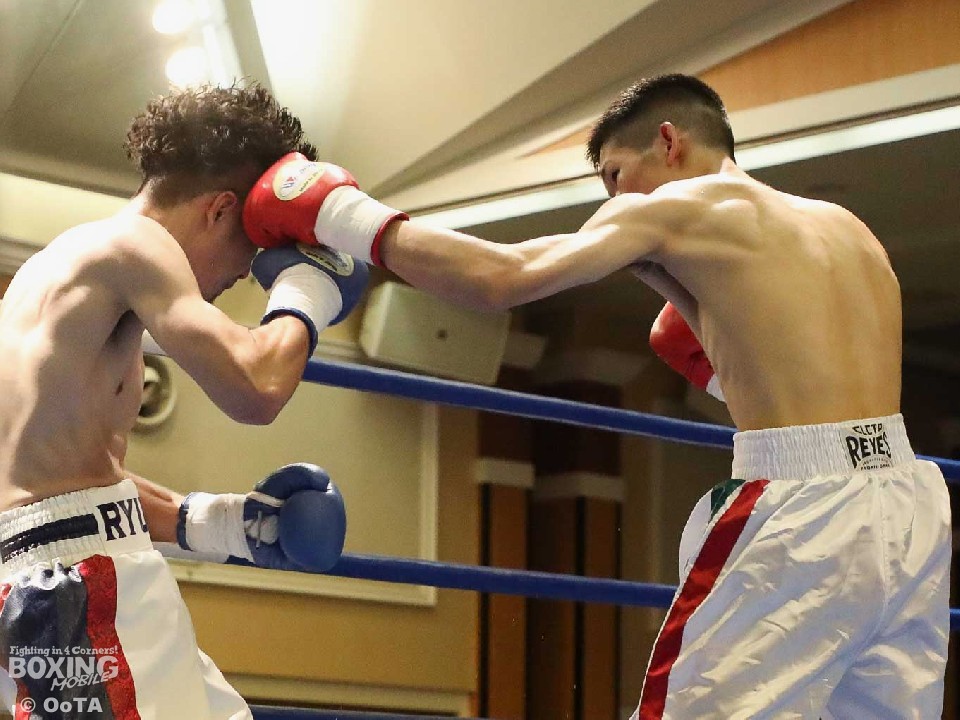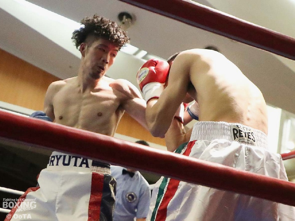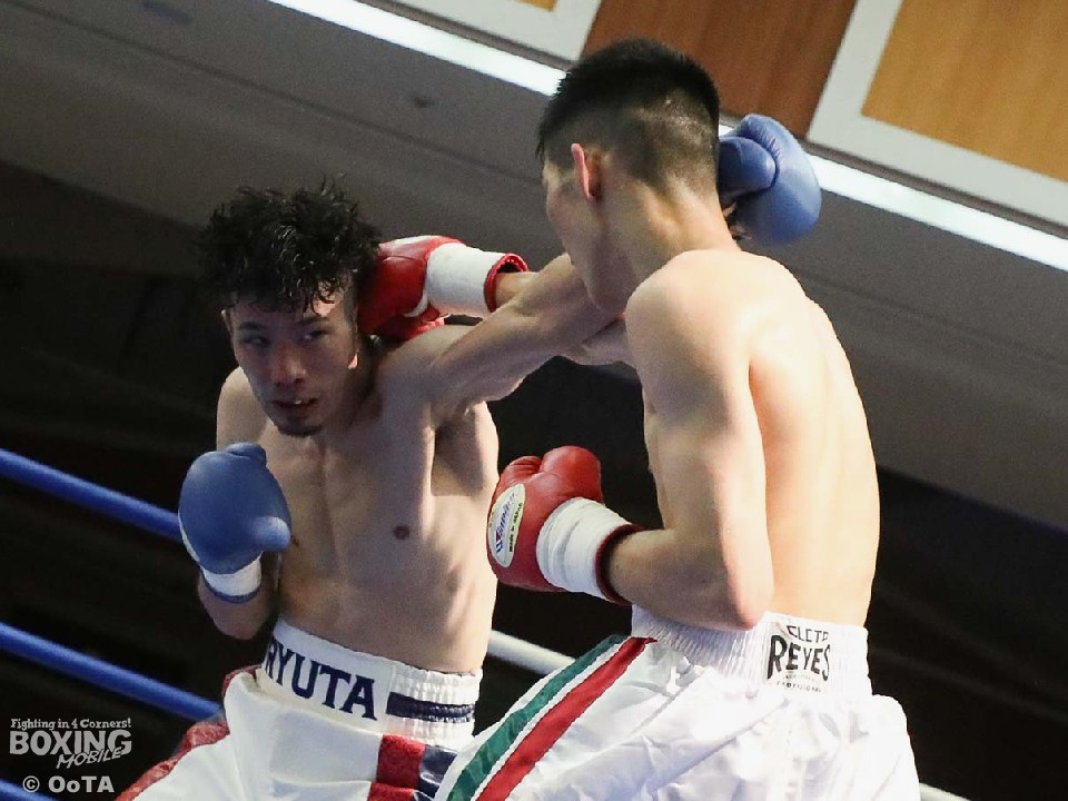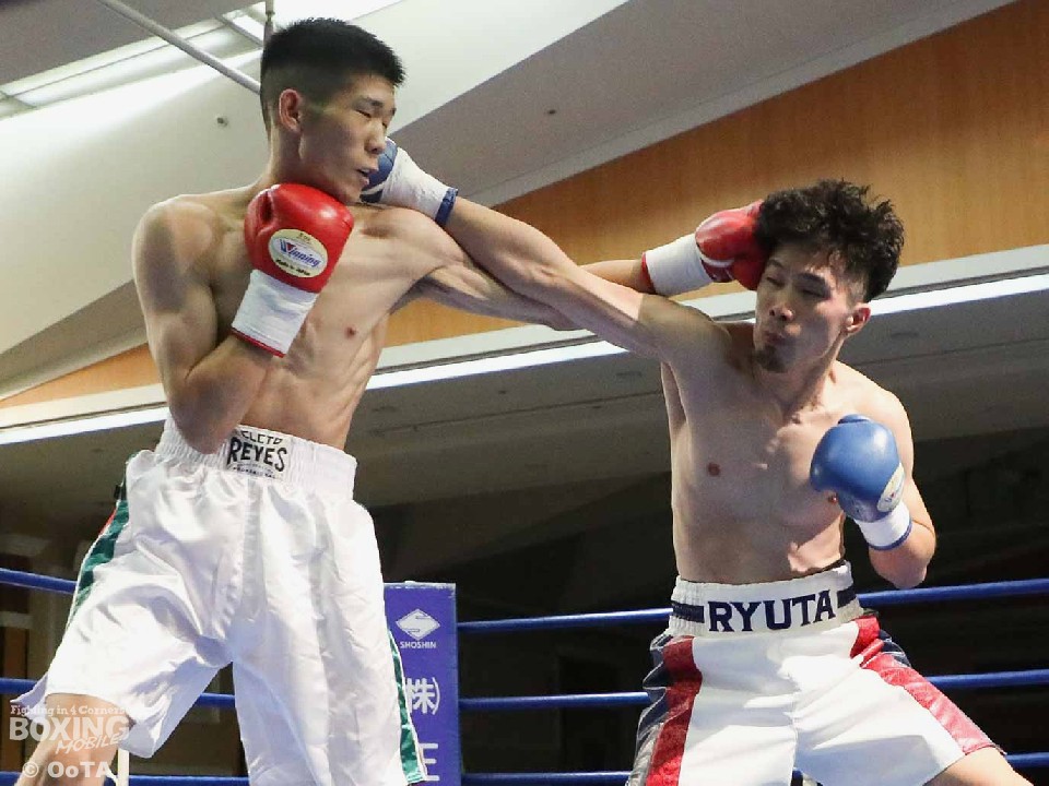 試合:金城がスイッチを織り交ぜながらロングフックで一発を狙うのに対し、竹山はジャブからワンツーを返して丁寧な組み立て。2回、金城は左ボディを突き刺すと大きく振りかぶってアグレッシブな姿勢。3回、金城はボディをしつこく叩くが、ここを耐えた竹山は打ち終わりに右アッパー、左ボディをヒット。4回、竹山は相手の空振りを誘うとワンツー、左ボディを好打。試合終了直前にロープに詰めて連打を浴びせて勝利を決定づけた。