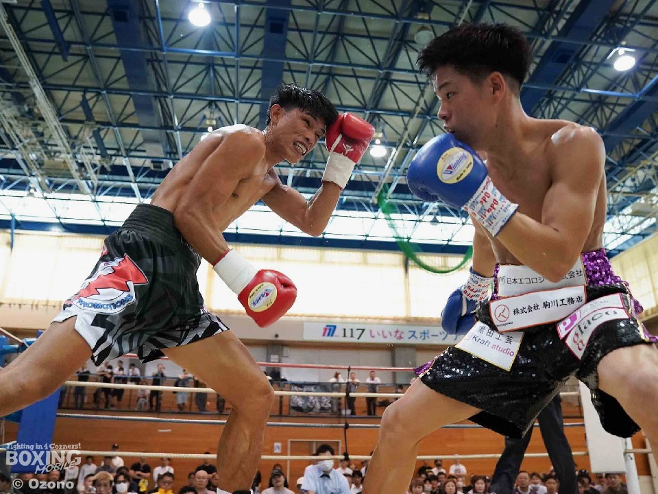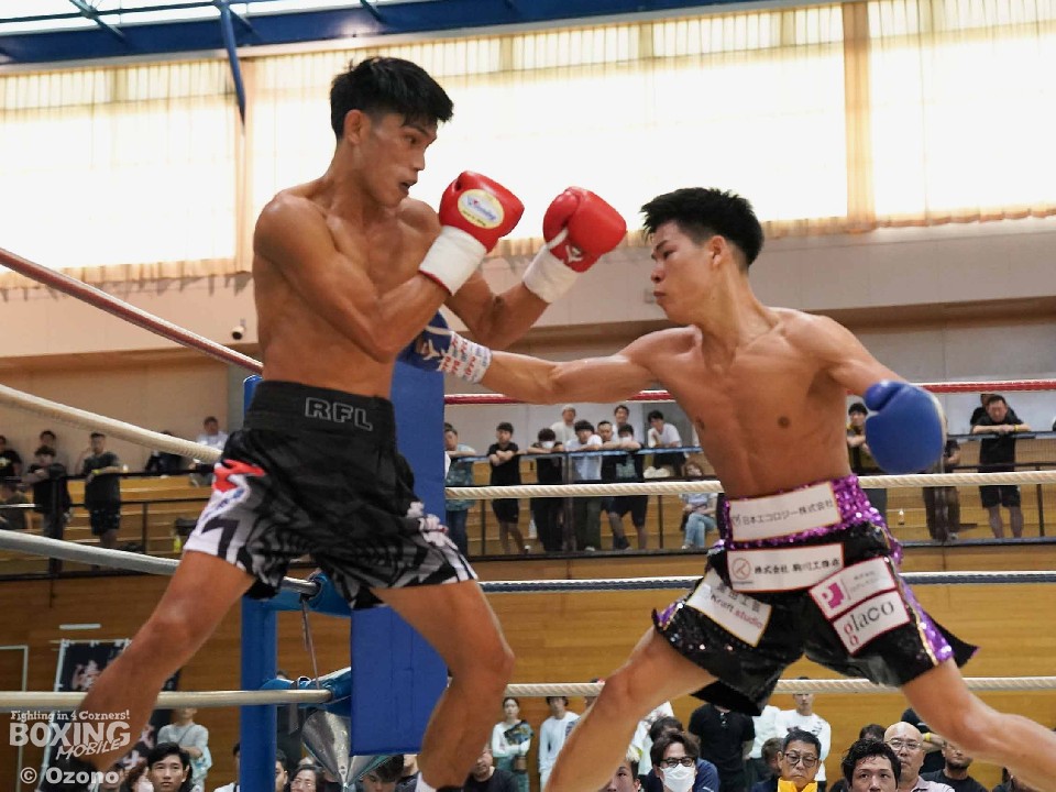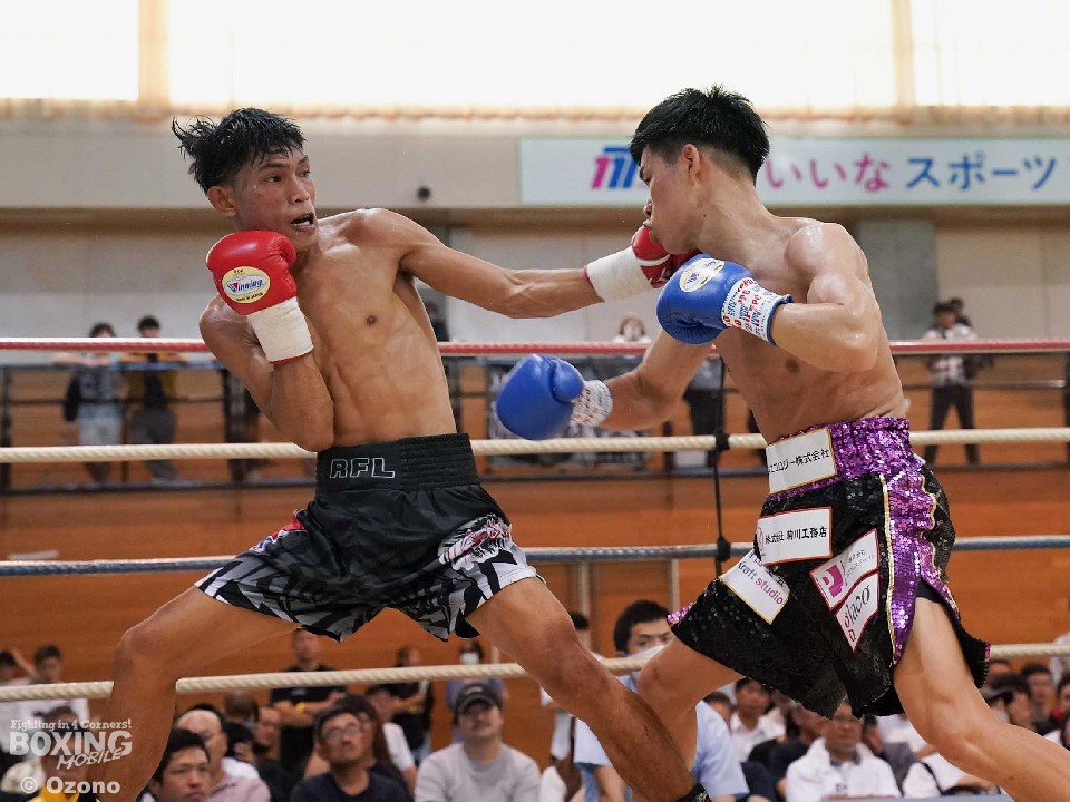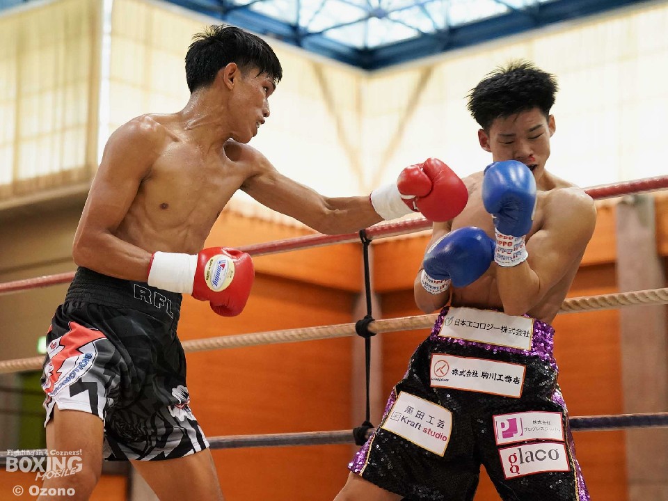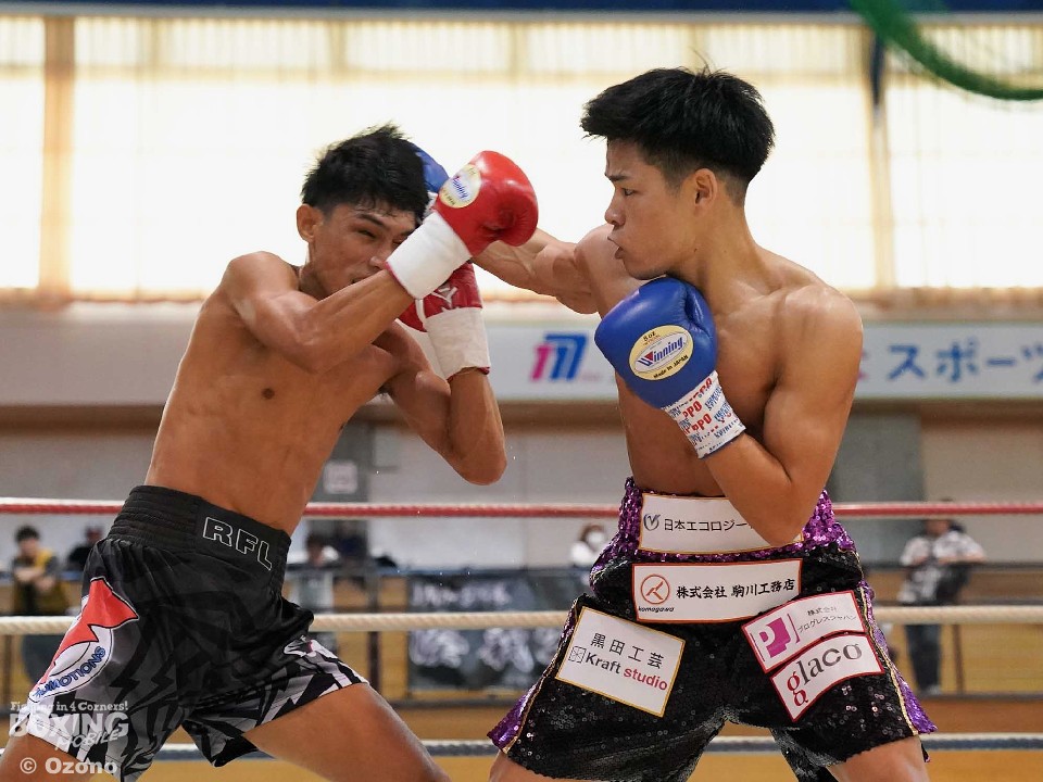 試合:サウスポー小田切がジャブを散らしながら左ストレートを打ち込むが、ラッカーは長いリーチを活かした右ストレートをヒット。2回、距離が遠くやりずらそうな小田切だが、リターンの右フック、鋭い踏み込みからの左ストレートでジワリジワリと攻め立てた。3回、ラッカーはプレスをかけてノーモーションの右ストレートを好打すると、独特のテンポを披露。5回、小田切は左ボディストレートで流れを変えに行くが、ラッカーの右アッパー、ワンツーを浴びて思い通りの展開を作れず。偶然のバッティングで小田切は右目尻をカットした。6回は頭がぶつかる場面が多く決定打を作り出せず。強引に左フックをねじ込む小田切と返しを狙うラッカーの構図が続いた。8回、左フックを振り抜く小田切と打ち終わりに右アッパーを狙うラッカーだが噛み合わなかった。有効打で上回ったラッカーが勝利した。