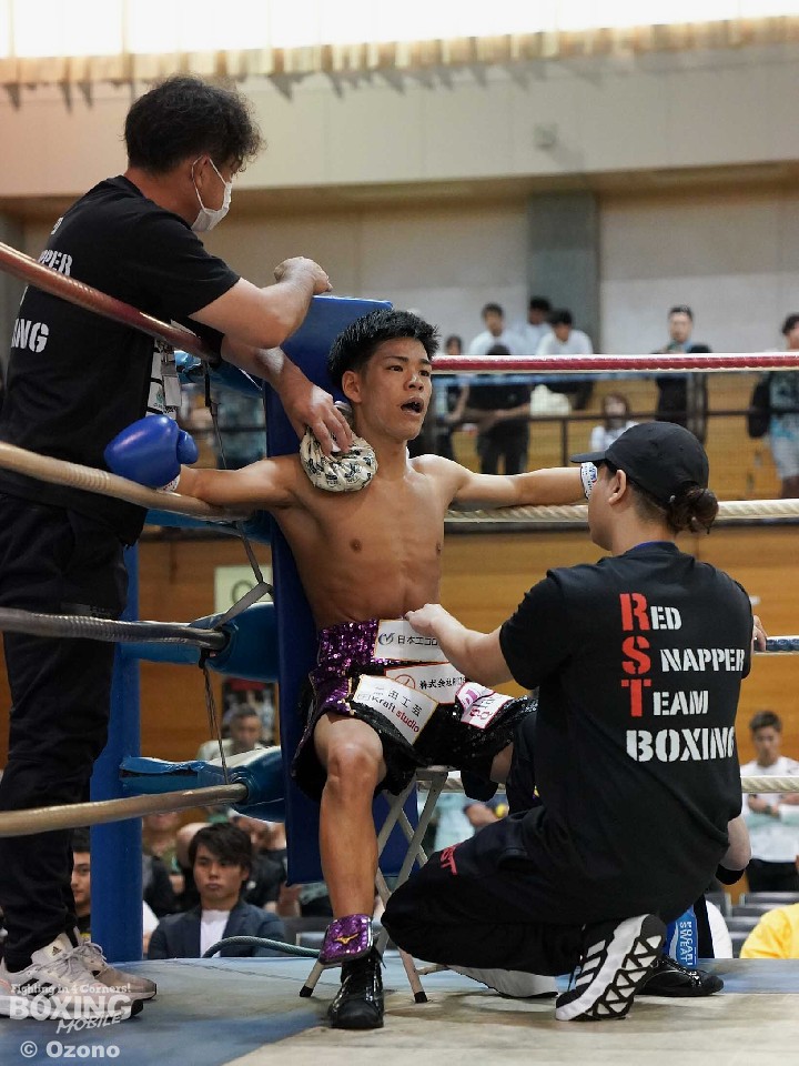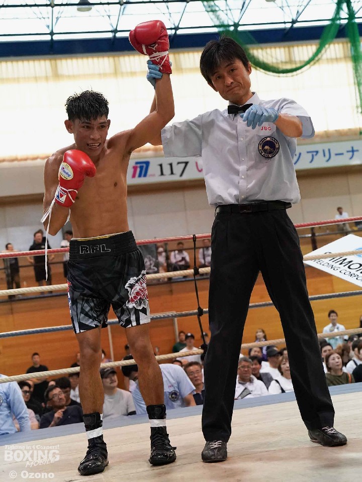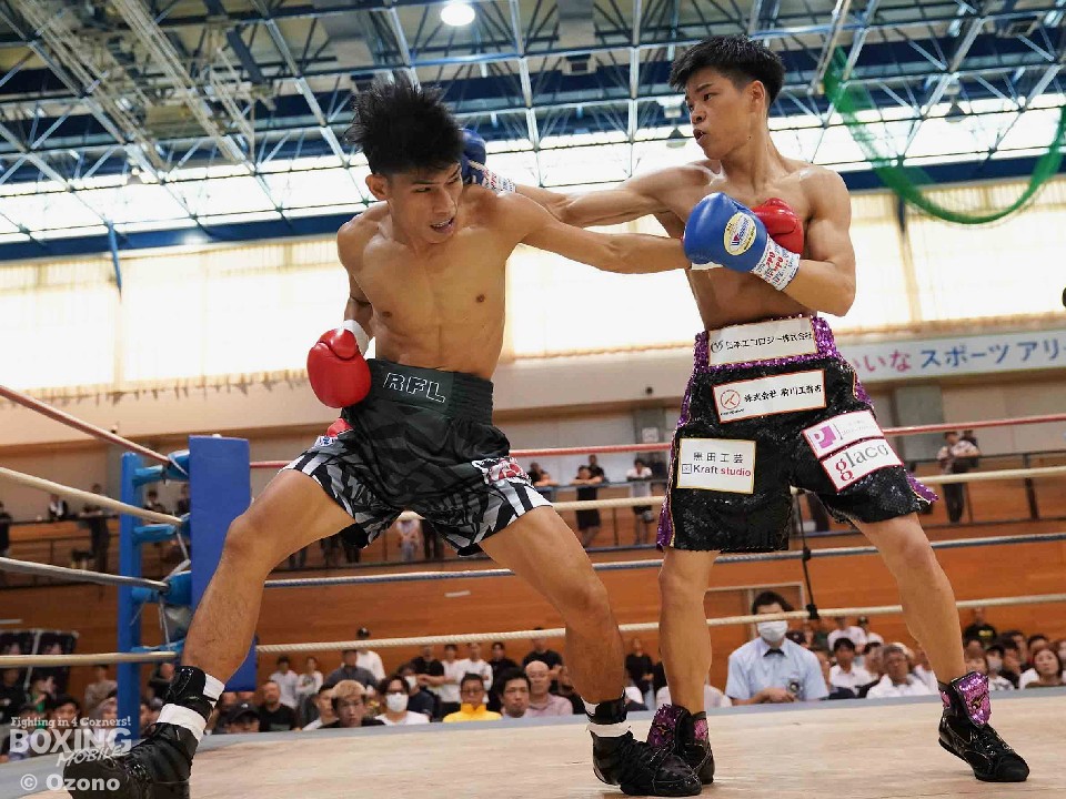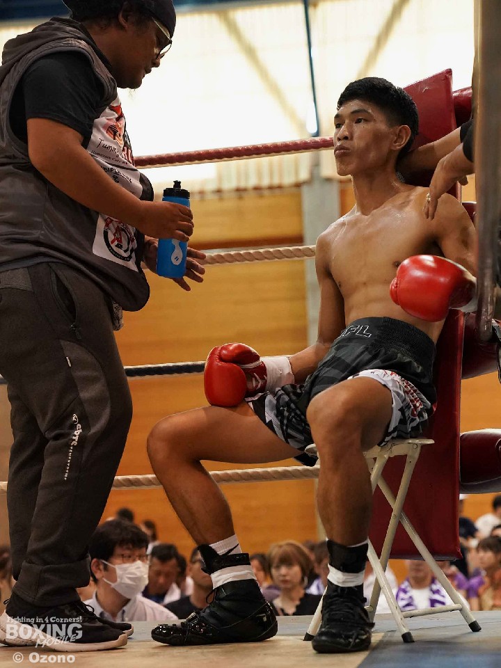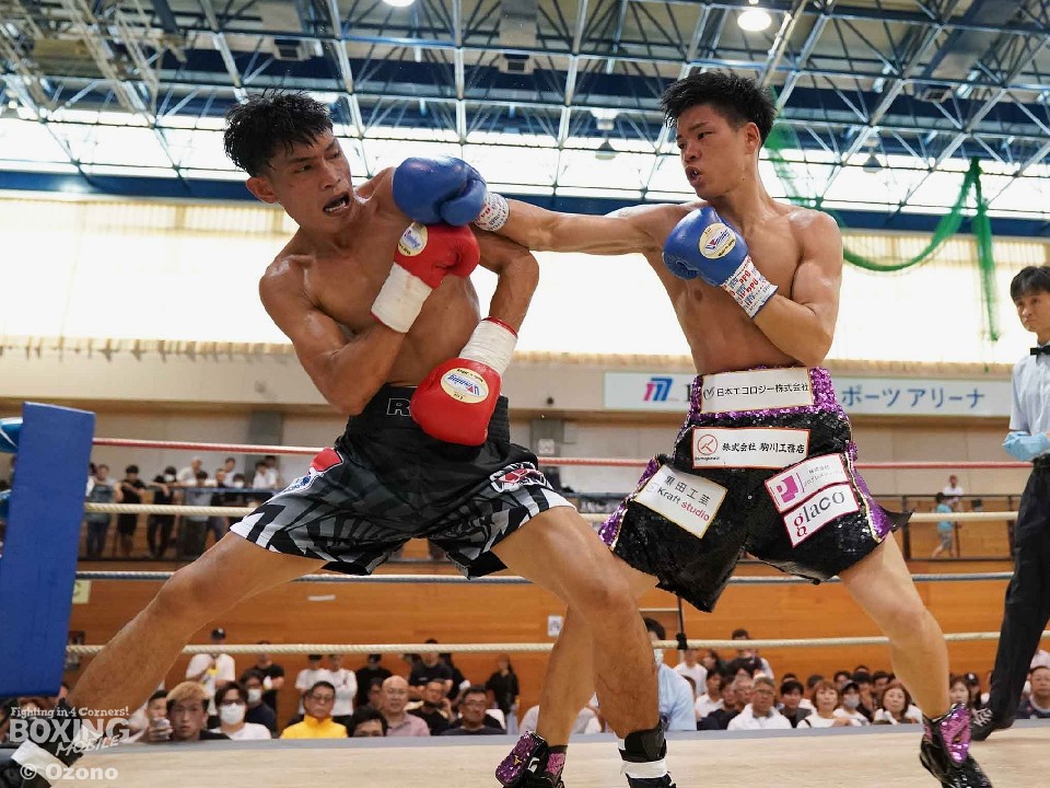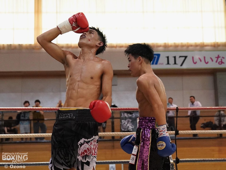 試合:サウスポー小田切がジャブを散らしながら左ストレートを打ち込むが、ラッカーは長いリーチを活かした右ストレートをヒット。2回、距離が遠くやりずらそうな小田切だが、リターンの右フック、鋭い踏み込みからの左ストレートでジワリジワリと攻め立てた。3回、ラッカーはプレスをかけてノーモーションの右ストレートを好打すると、独特のテンポを披露。5回、小田切は左ボディストレートで流れを変えに行くが、ラッカーの右アッパー、ワンツーを浴びて思い通りの展開を作れず。偶然のバッティングで小田切は右目尻をカットした。6回は頭がぶつかる場面が多く決定打を作り出せず。強引に左フックをねじ込む小田切と返しを狙うラッカーの構図が続いた。8回、左フックを振り抜く小田切と打ち終わりに右アッパーを狙うラッカーだが噛み合わなかった。有効打で上回ったラッカーが勝利した。