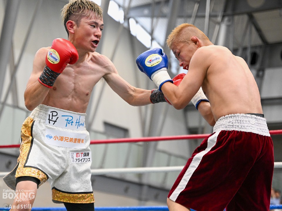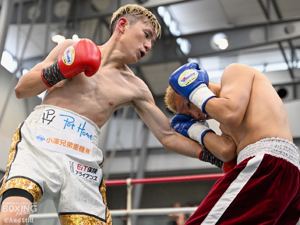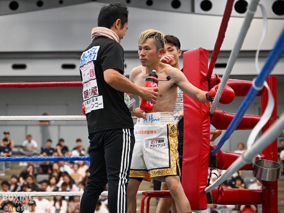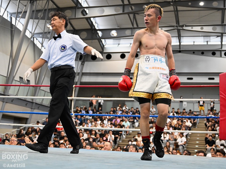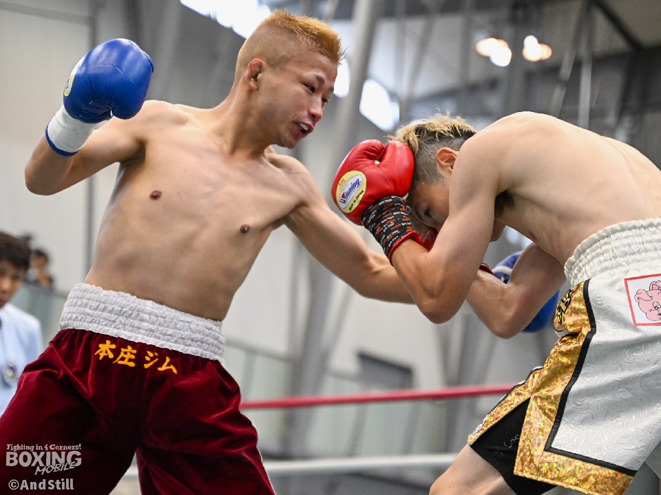 試合:赤塚と根岸のミニマム級の金髪同士の一戦。初回、お互い近い距離で上下にパンチを振る。その中で青コーナー根岸がアッパーをねじ込み、赤コーナー赤塚がシャープなジャブからボクシングを組み立てる。中盤は赤塚が手数を増やし攻勢を強める。根岸も左右フックで応戦。お互い頭をつけ削り合いの消耗戦に突入。最終ラウンドもお互い勝利を掴むため気力を振り絞り打ち合う。盛り上がる歓声の中、終了のゴングが響いた。