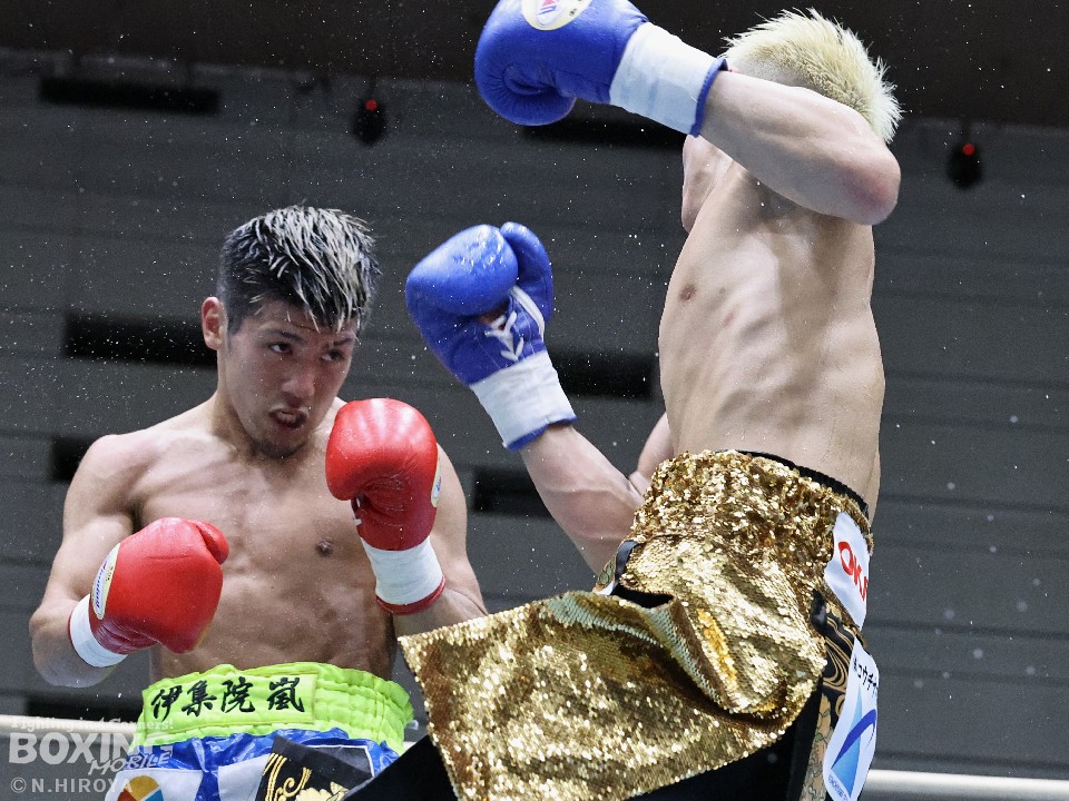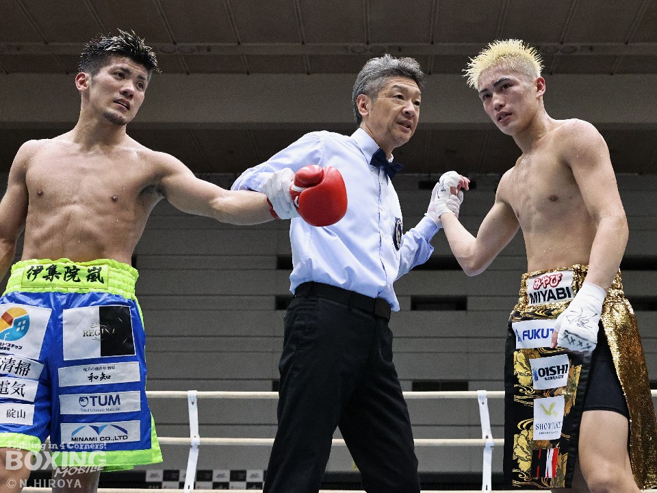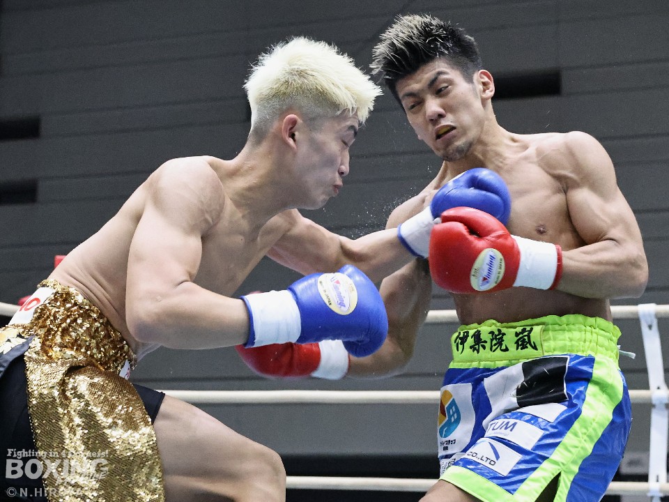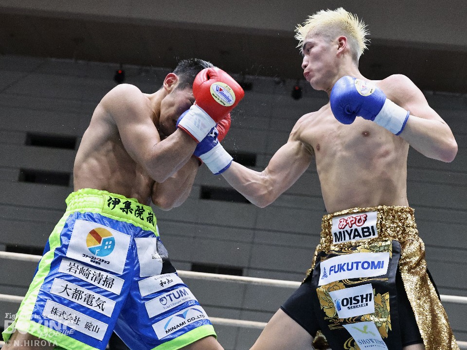 試合:今年2月以来の再戦(伊集院の判定勝ち)は、サウスポー山名が前の手でコントロールしながら左ストレートで先制。しかし、伊集院はリターンの右フックで膝を揺らすと強気に攻め立てた。2回、山名は右をゆらゆらと動かしながら揺さぶりをかけて左ストレートをヒット。3回、山名は出入りを意識しながらワンツーで下がらせて攻勢をアピール。4回、伊集院はステップインから右フックをねじ込み反撃。5回、山名はヒット&アウェーを繰り返し見栄えの良いボクシングを展開。6回、伊集院は右フックで効かせると連打で攻勢。ピンチを迎えた山名だが、ここを踏ん張ると右ボディから連打で押し返した。ジャッジに委ねられた採点は三者三様の引き分けで決着がつかなかった。