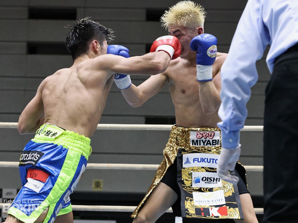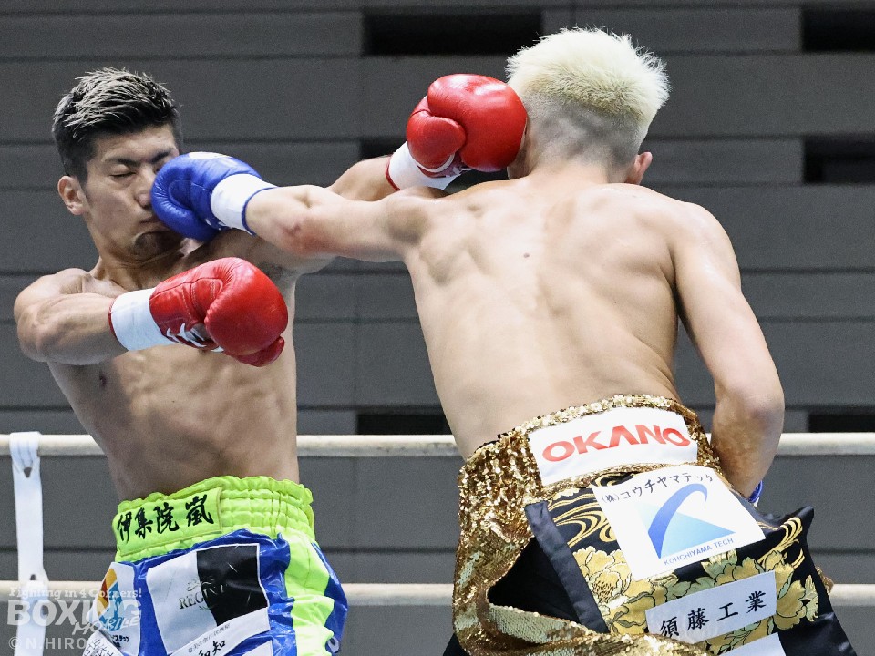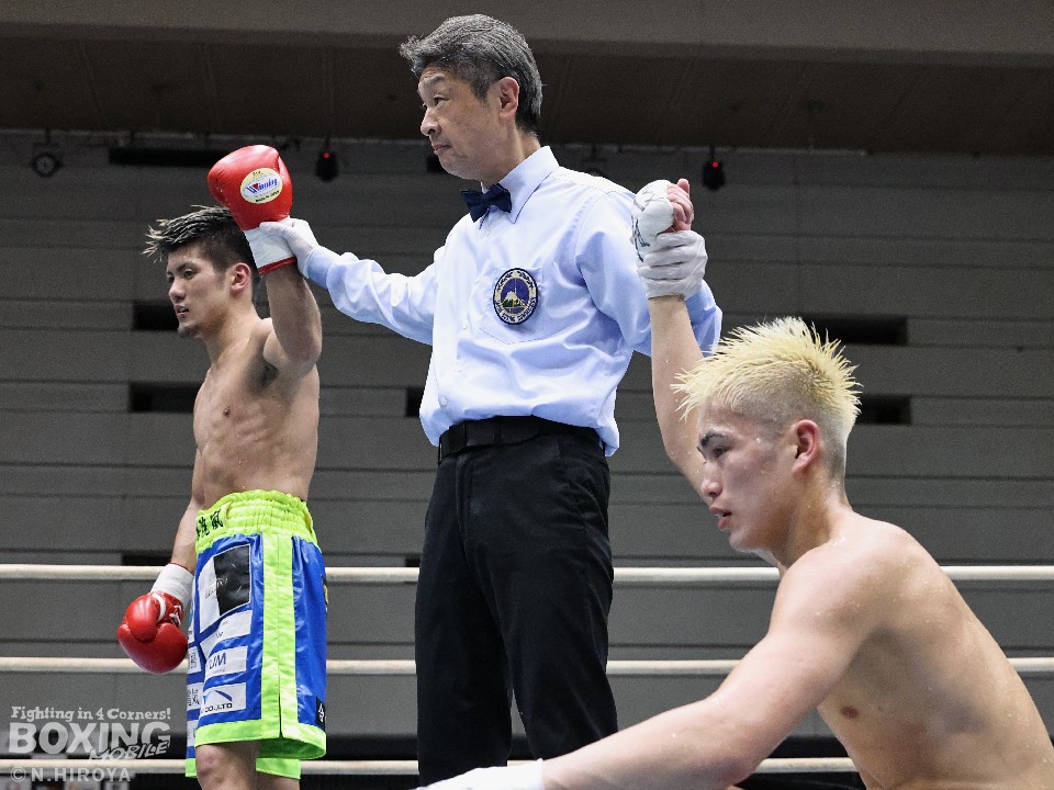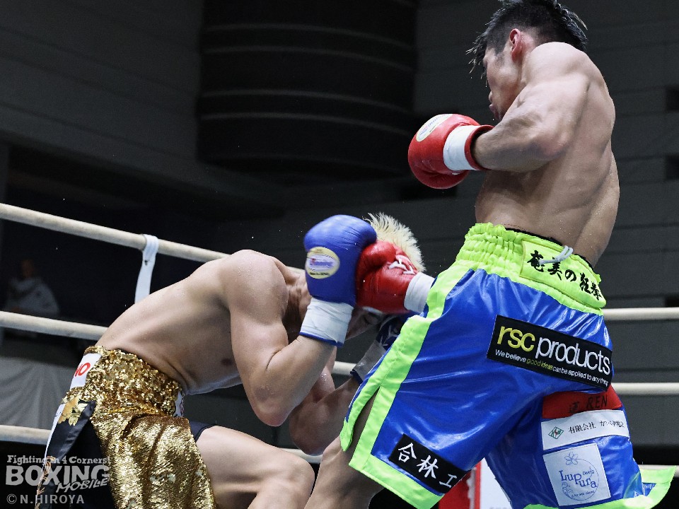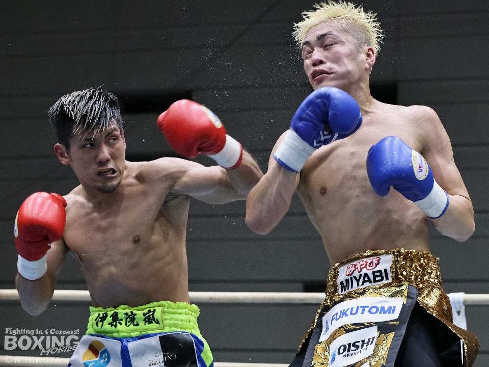 試合:今年2月以来の再戦(伊集院の判定勝ち)は、サウスポー山名が前の手でコントロールしながら左ストレートで先制。しかし、伊集院はリターンの右フックで膝を揺らすと強気に攻め立てた。2回、山名は右をゆらゆらと動かしながら揺さぶりをかけて左ストレートをヒット。3回、山名は出入りを意識しながらワンツーで下がらせて攻勢をアピール。4回、伊集院はステップインから右フックをねじ込み反撃。5回、山名はヒット&アウェーを繰り返し見栄えの良いボクシングを展開。6回、伊集院は右フックで効かせると連打で攻勢。ピンチを迎えた山名だが、ここを踏ん張ると右ボディから連打で押し返した。ジャッジに委ねられた採点は三者三様の引き分けで決着がつかなかった。