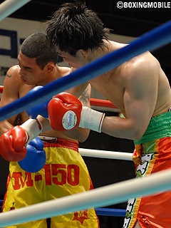 試合:立ち上がり、ゴンゲールが左右ボディアッパー・右アッパーで距離を一気に詰め、接近戦に持ち込む。ゴンゲールはコンパクトな右アッパーと、打ち下ろし気味の右フックを効果的に打ち分け、氏家にクリーンヒット。氏家も打ち合いに応じ、左フック・右ストレートを返すが、接近戦ではゴンゲールにやや分がある。3R、さらにプレスを掛け接近戦に持ち込みたいゴンゲールに対し、氏家はジャブでミドルレンジの間合いを測り始める。そして4R、氏家がジャブで距離を保ち、右ストレート・左フックをヒットさせると下がり出すゴンゲール。さらにここで右アッパーを打ち込むとゴンゲールの膝が落ち、氏家がロープに詰めワンツー・左フックを浴びせたところでレフェリーが試合を止めた。