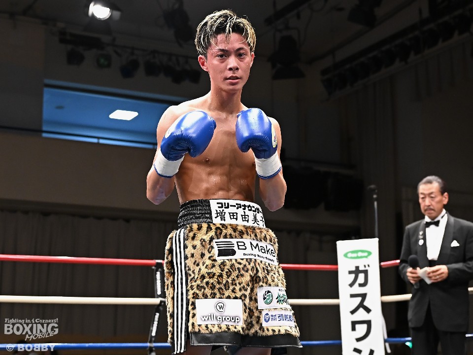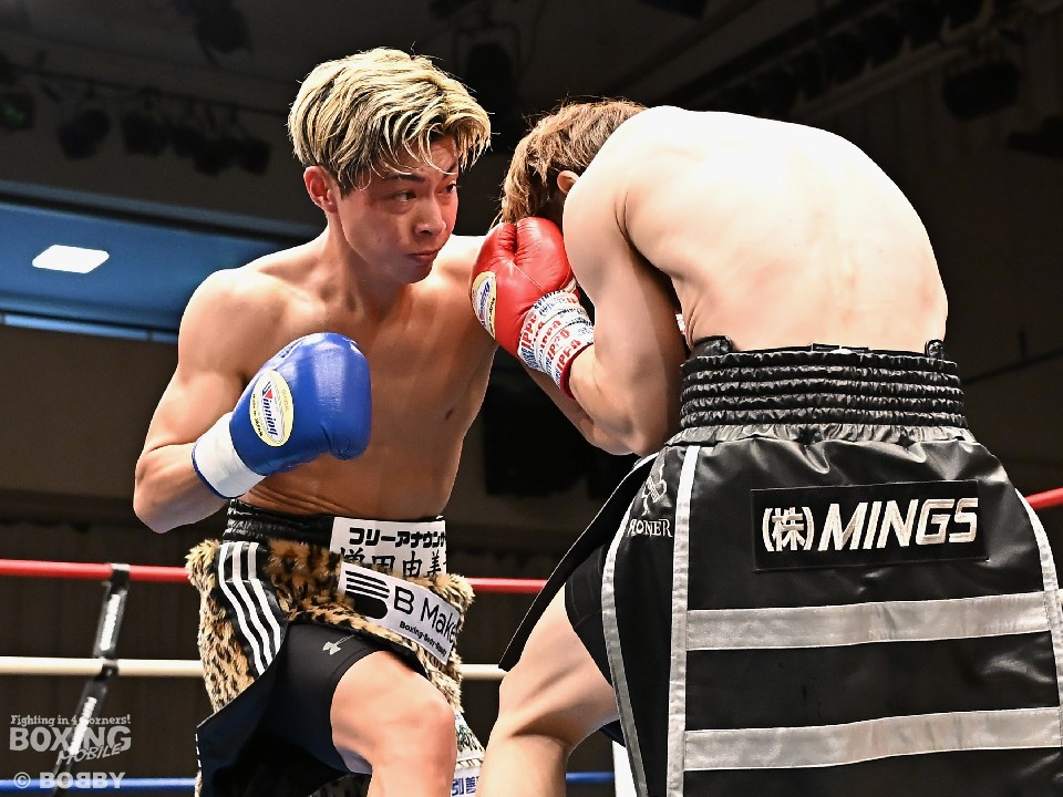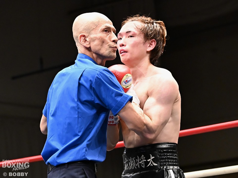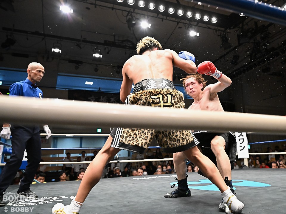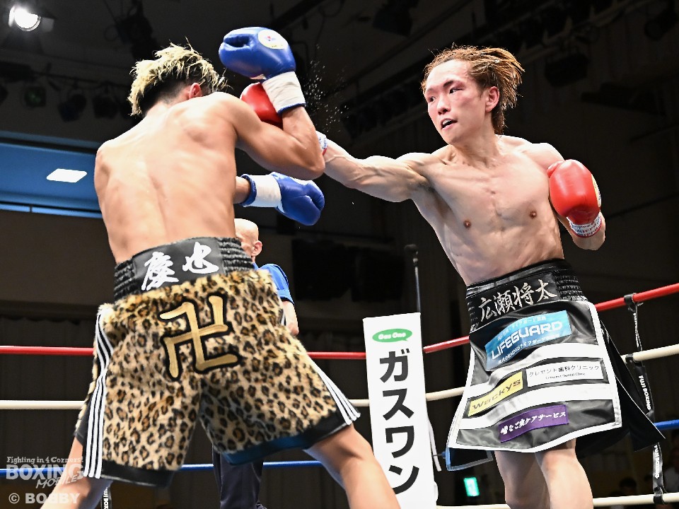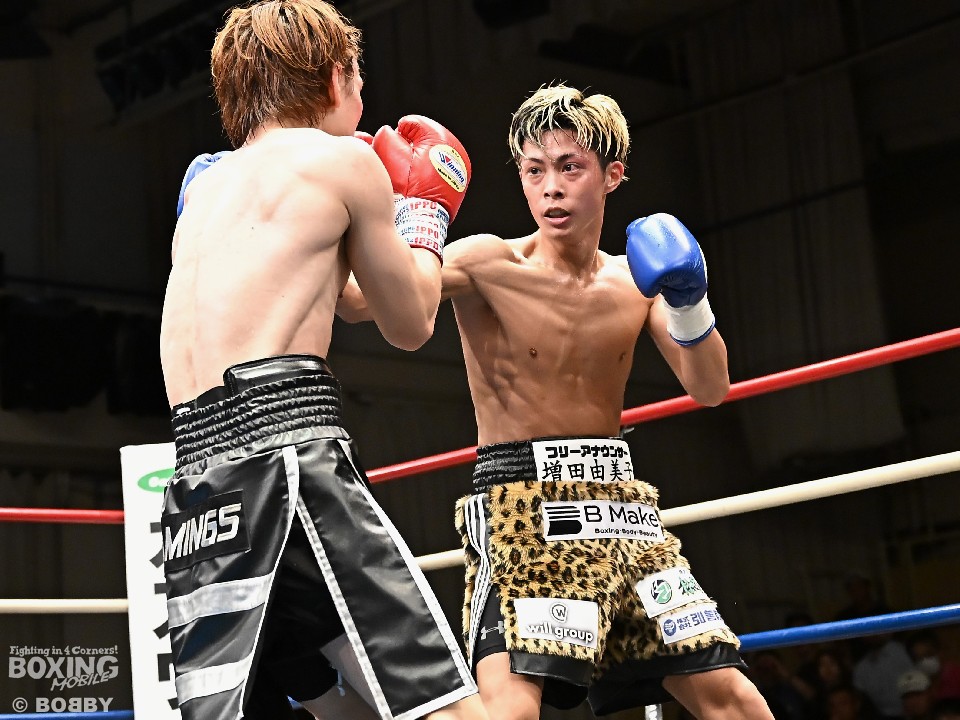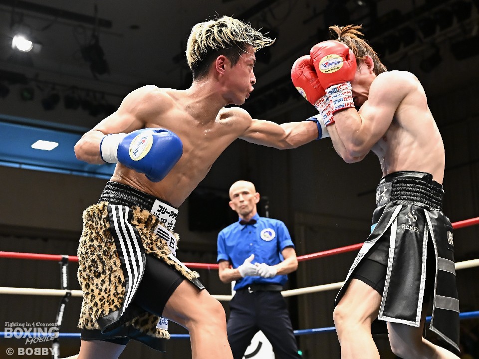 試合:広瀬が距離を潰して左右フックで先制攻撃。先手を取られたサウスポー越田だが、左ストレートで迎え撃った。2回、越田は相手の右フックを警戒しながらジャブからワンツーにつなげてアウトボクシングを展開。3回、広瀬は左フックを強振。グイグイと攻め立てたが、越田の左ショートが火を噴きダウンを演出。4回、越田はワンツーで2度目のダウンをゲット。再開後、足を使いながら決定打を避けた。2年ぶりのリングに上がった越田がB級昇格を決めた。