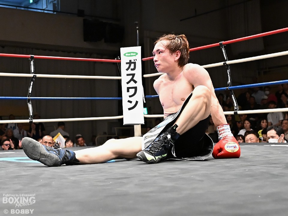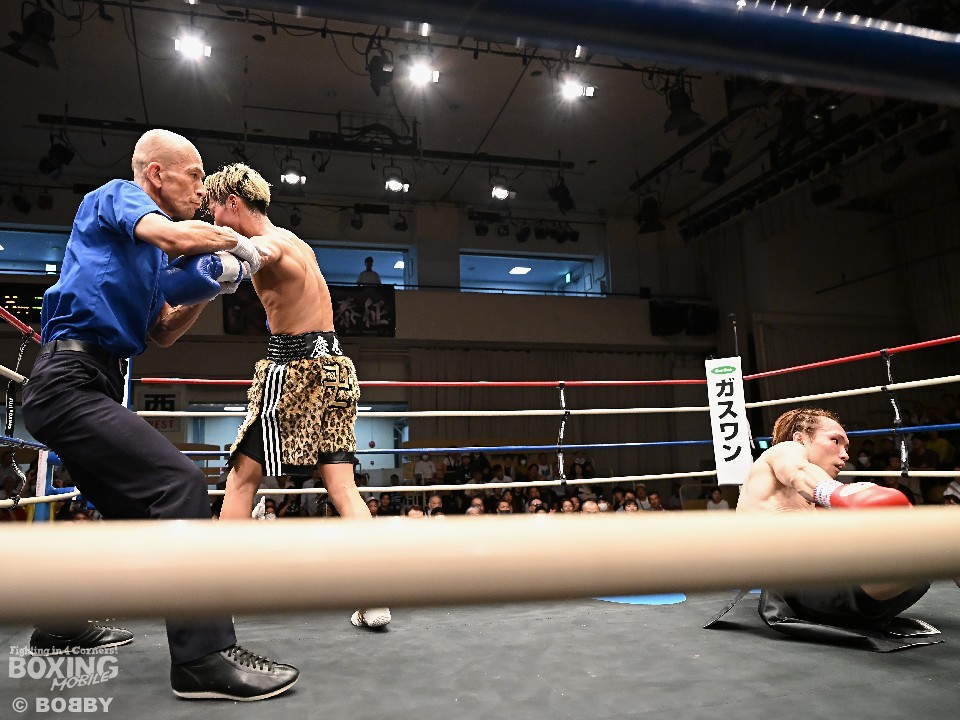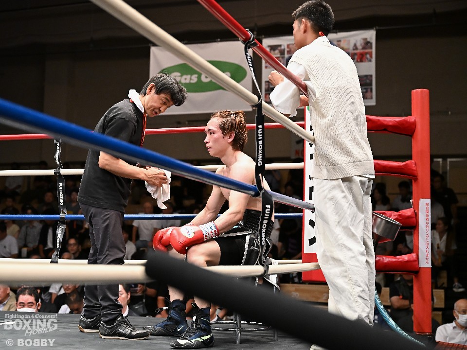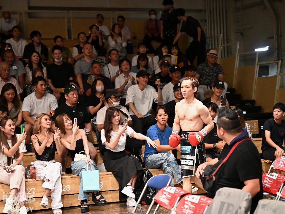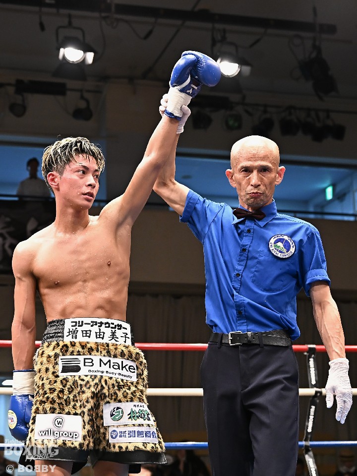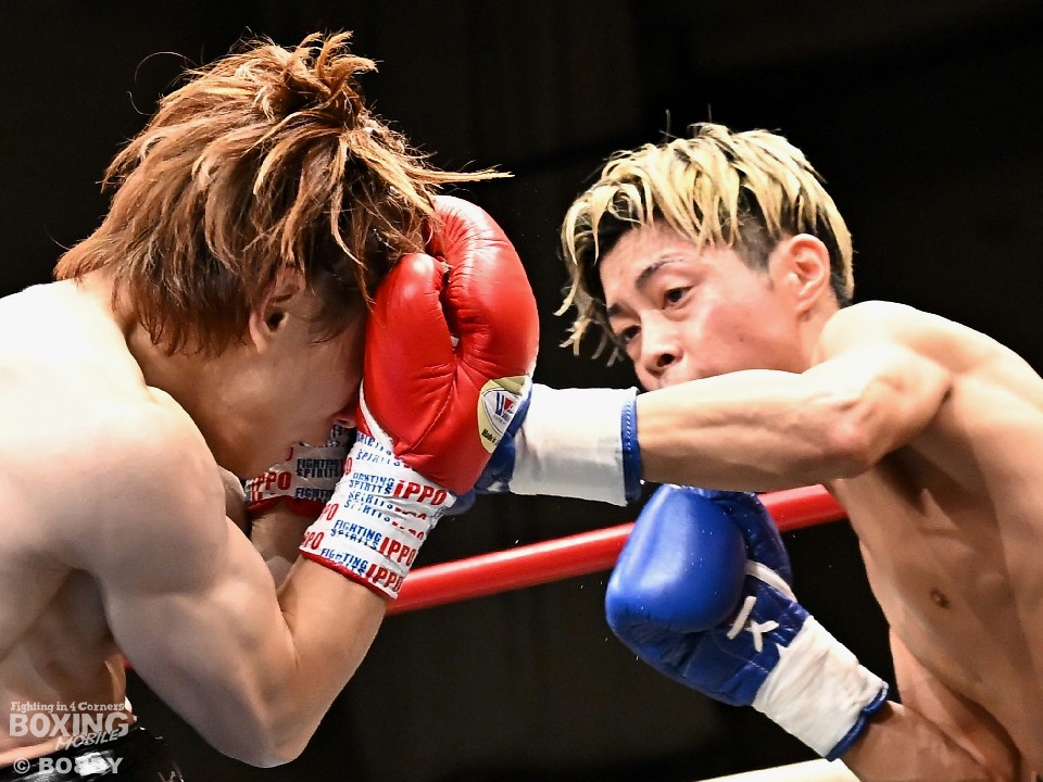試合:広瀬が距離を潰して左右フックで先制攻撃。先手を取られたサウスポー越田だが、左ストレートで迎え撃った。2回、越田は相手の右フックを警戒しながらジャブからワンツーにつなげてアウトボクシングを展開。3回、広瀬は左フックを強振。グイグイと攻め立てたが、越田の左ショートが火を噴きダウンを演出。4回、越田はワンツーで2度目のダウンをゲット。再開後、足を使いながら決定打を避けた。2年ぶりのリングに上がった越田がB級昇格を決めた。