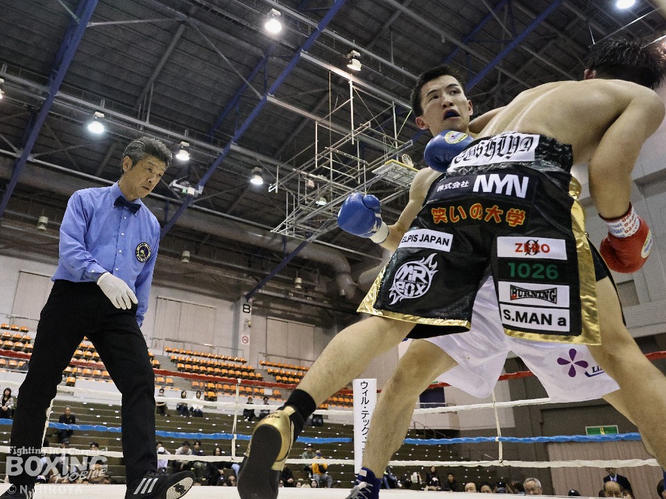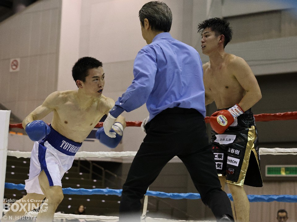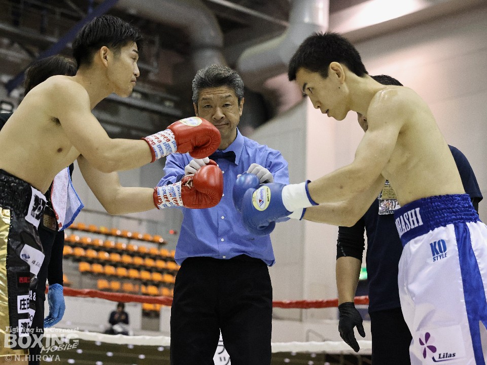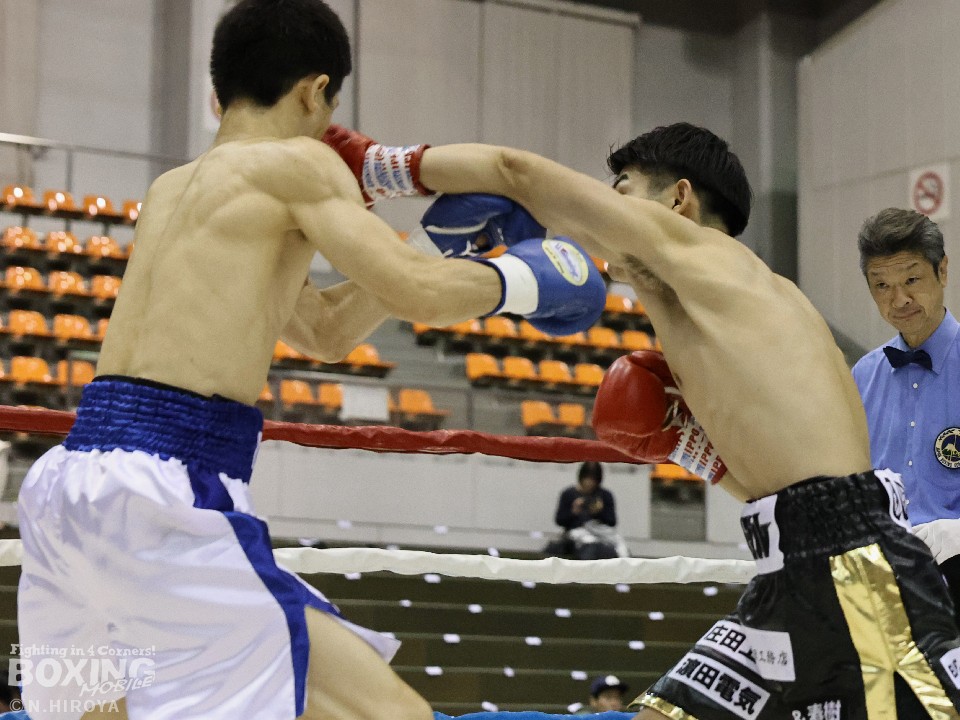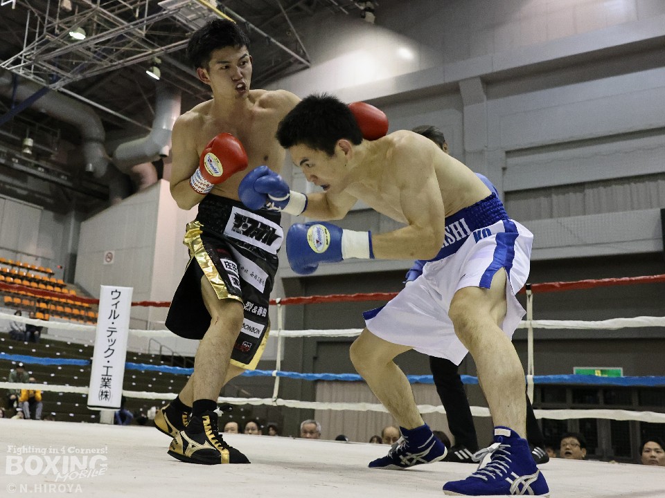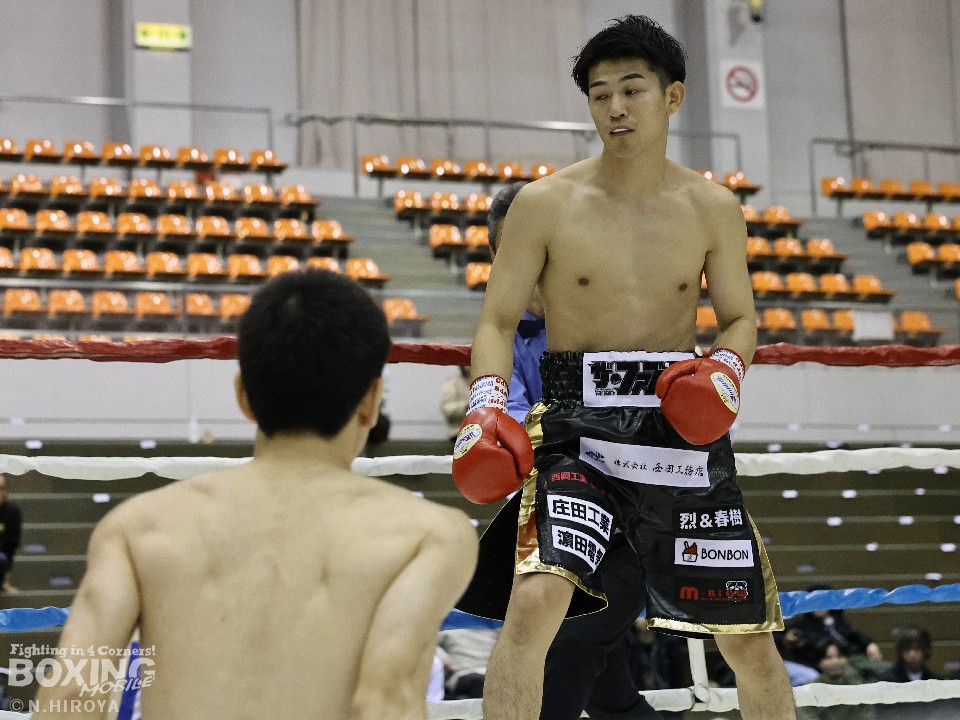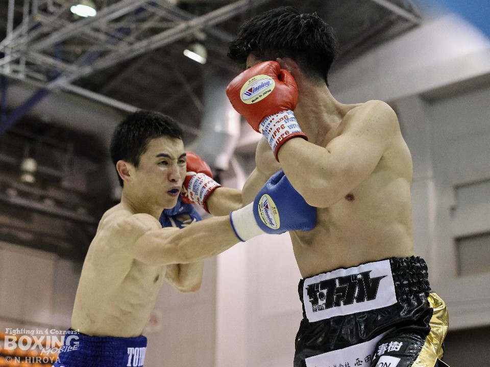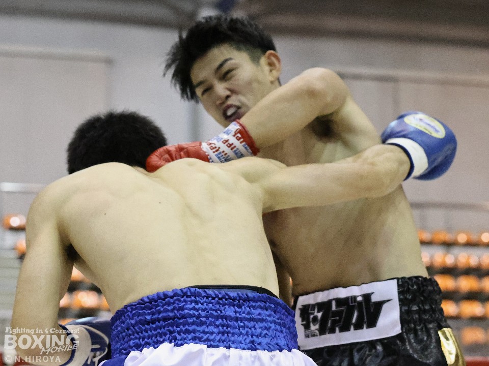 試合:サウスポー同士による一戦、布元が左オーバーハンドでいきなりダウンをゲット。再開後、果敢に前に出る鈴木に対し、左ストレートで迎え打った。2回、鈴木はプッシュしながら右ボディでしつこさを発揮。プレスをかけてワンツーで反撃した。3回、布元は左カウンターで顔をのけぞらせるが、鈴木はすぐに打ち返し食い下がった。4回、鈴木は回転力を活かした連打で猛追。布元も必死に打ち返した。ダウンを奪った布元が勝利した。