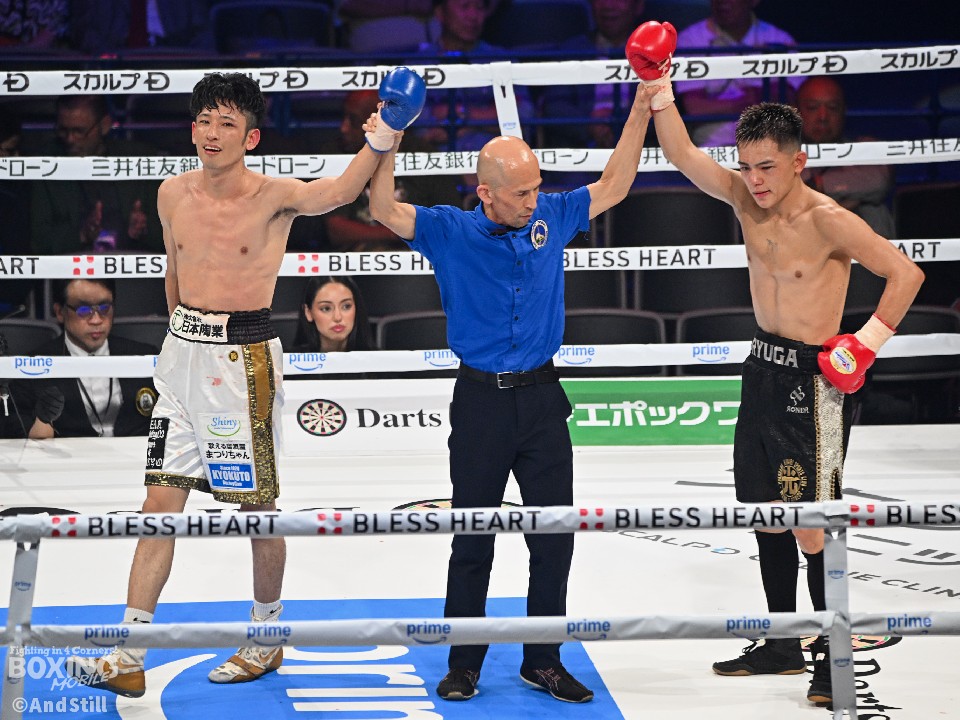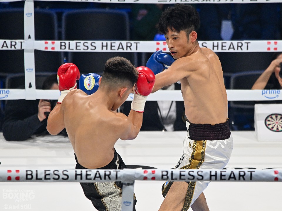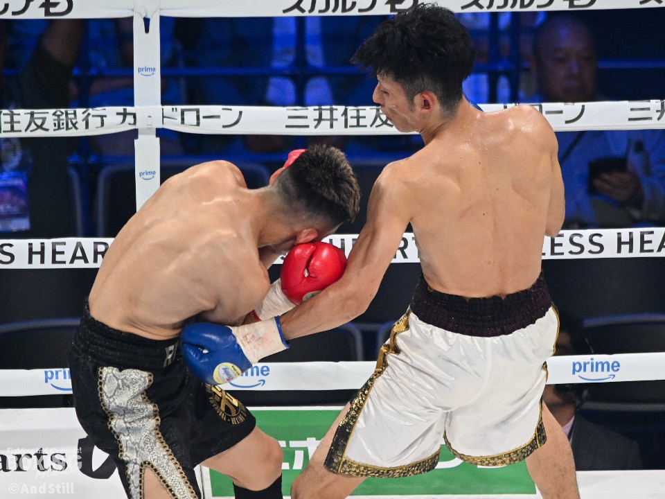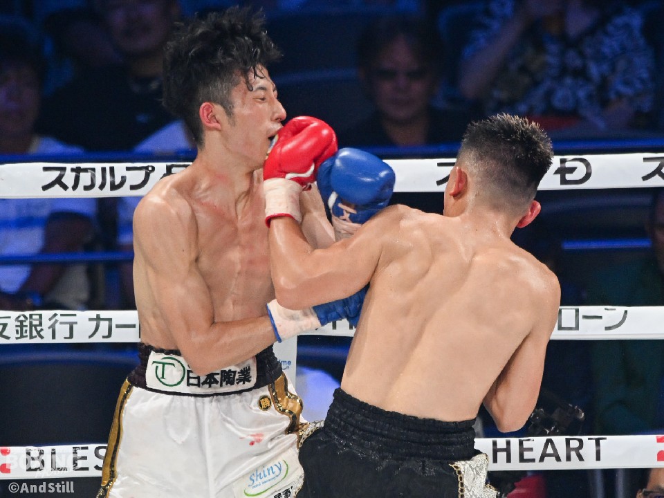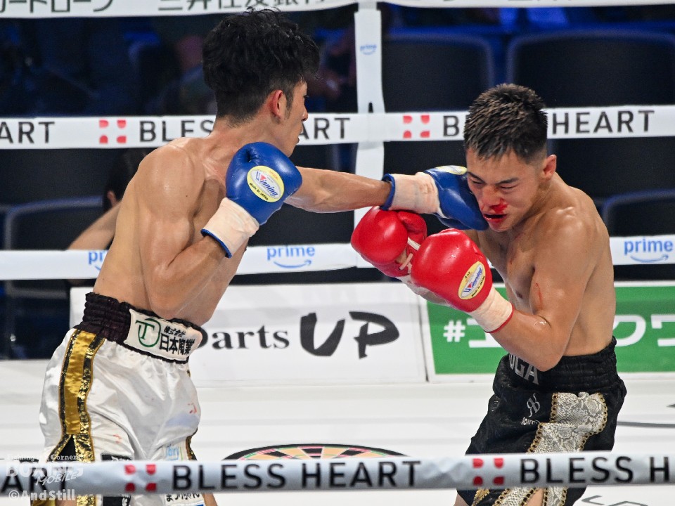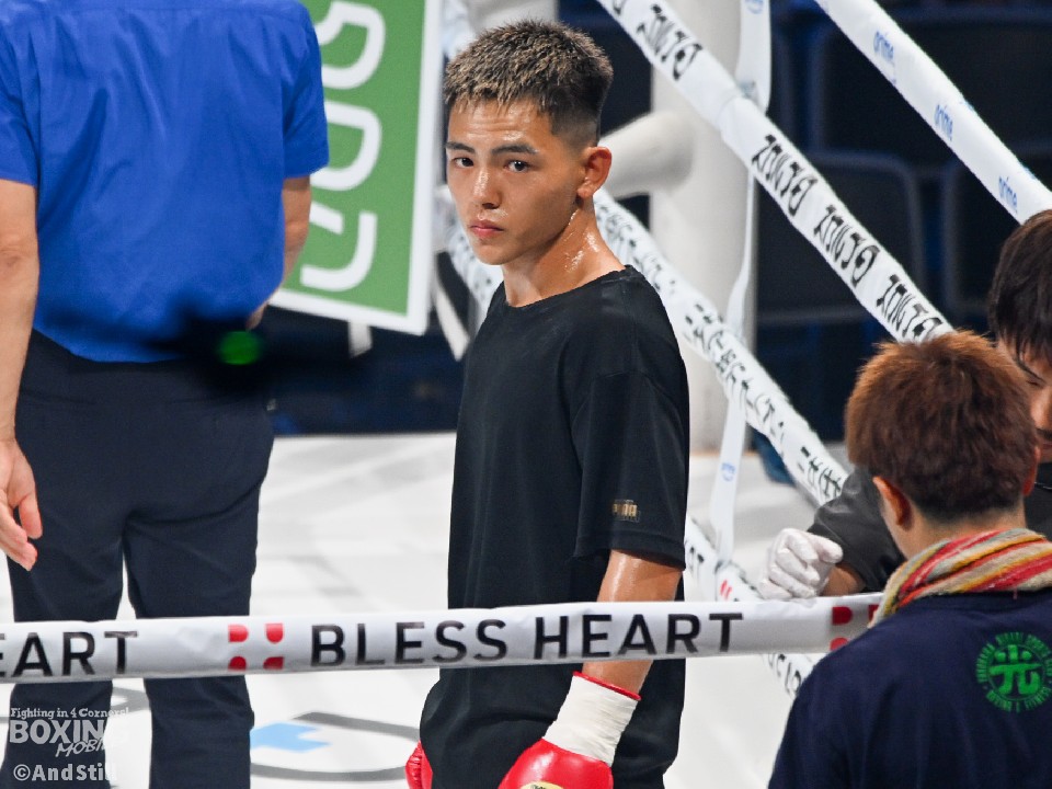 試合:176cmの佐藤(麻人)がジャブを飛ばしながら左ボディに繋げて距離をキープ。前に出る佐藤(竜牙)だが、右ストレートを決めるまでには至らず。2回、竜牙がプレスを強めて右フックをねじ込み反撃。3回、麻人はジャブを軸にアウトボクシングを展開。相手に鼻血を流させた。4回、打ち合いに持ち込めない竜牙だが、ラウンド終盤に左フックを好打するとパンチをまとめてジャッジに攻勢をアピールした。採点は2者が引き分けとし、勝敗がつかなかった。