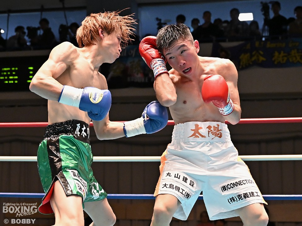 試合:今年4月以来の再戦は、谷津がワンツーを好打し先制攻撃。後手に回ったサウスポー野中は左ストレートを返すが、初回は谷津の有効打が上回った。2回、野中がステップインから左ストレートをヒット。中間距離でし烈なペース争いが続いた。3回、谷津が強気の姿勢を崩さず、ワンツーを軸に攻め立てた。4回、谷津がワンツー連打でスパート。野中も真っ向から応じると手数を増やして意地を見せた。激しい打撃戦を繰り広げた2人に盛大な拍手が送られた。ジャッジ3者とも2ポイント差をつけた谷津が返り討ちを果たした。