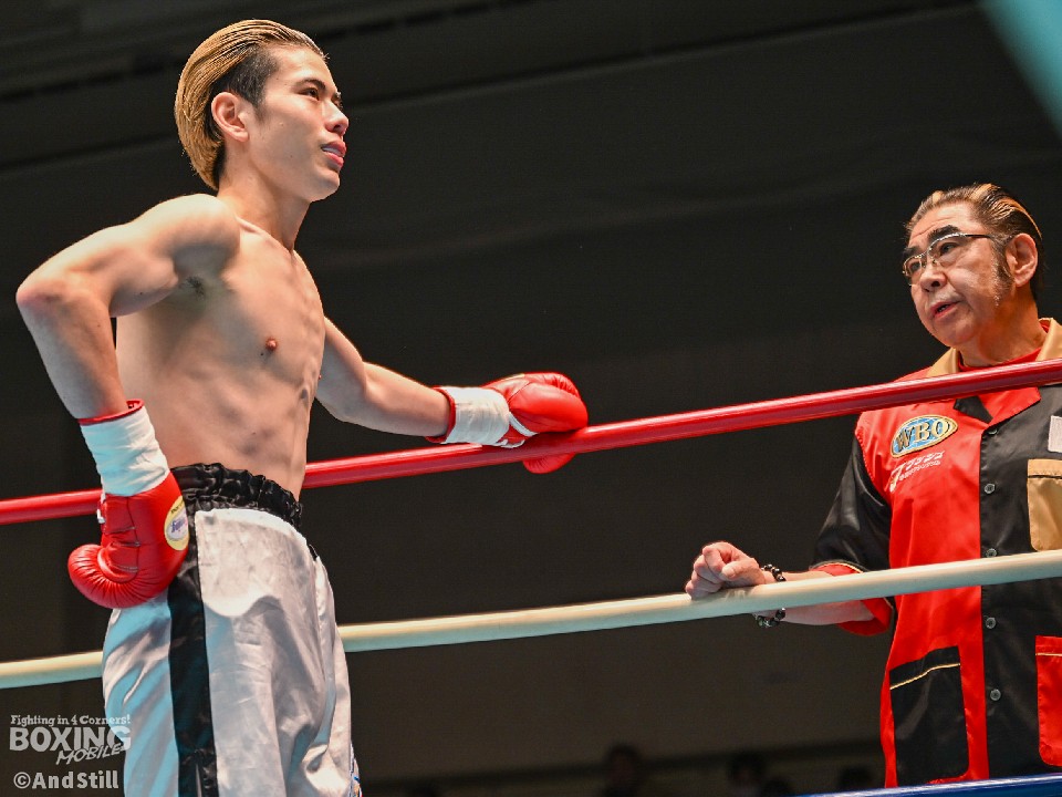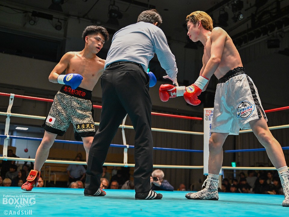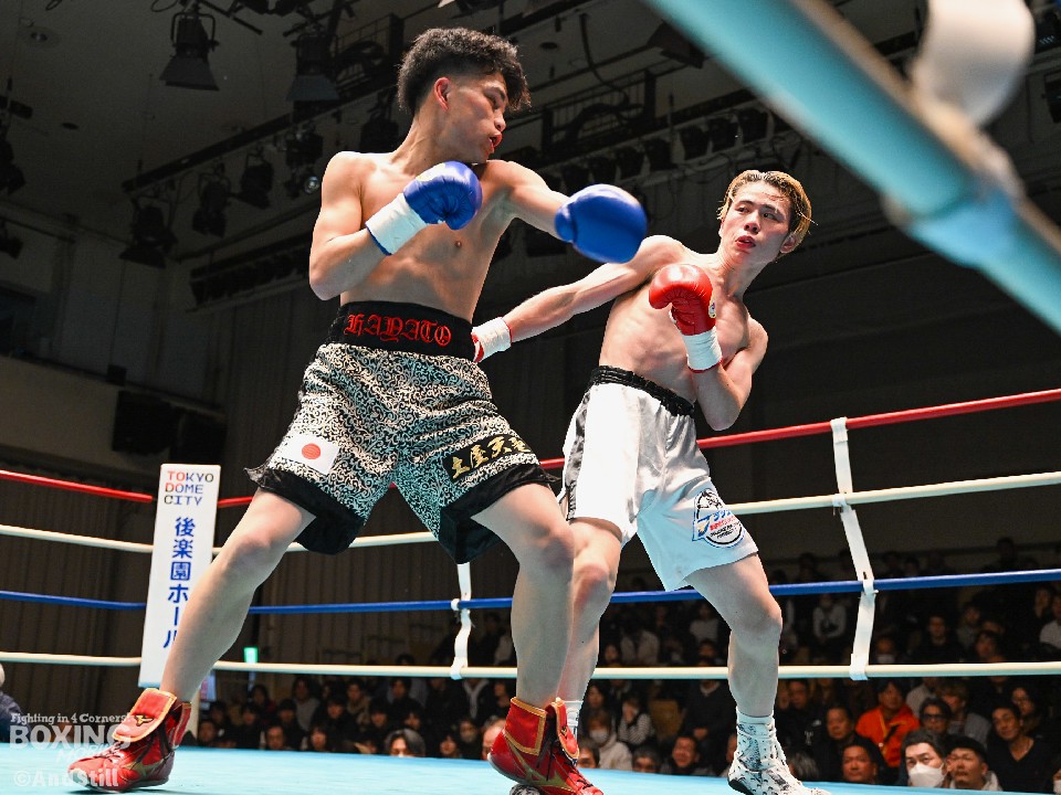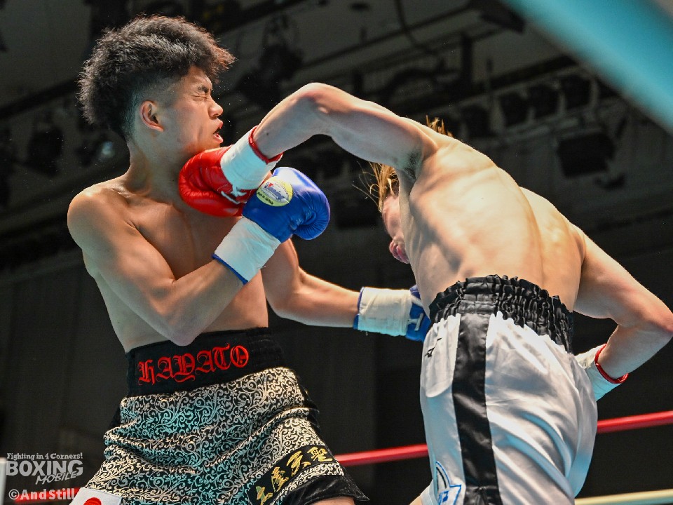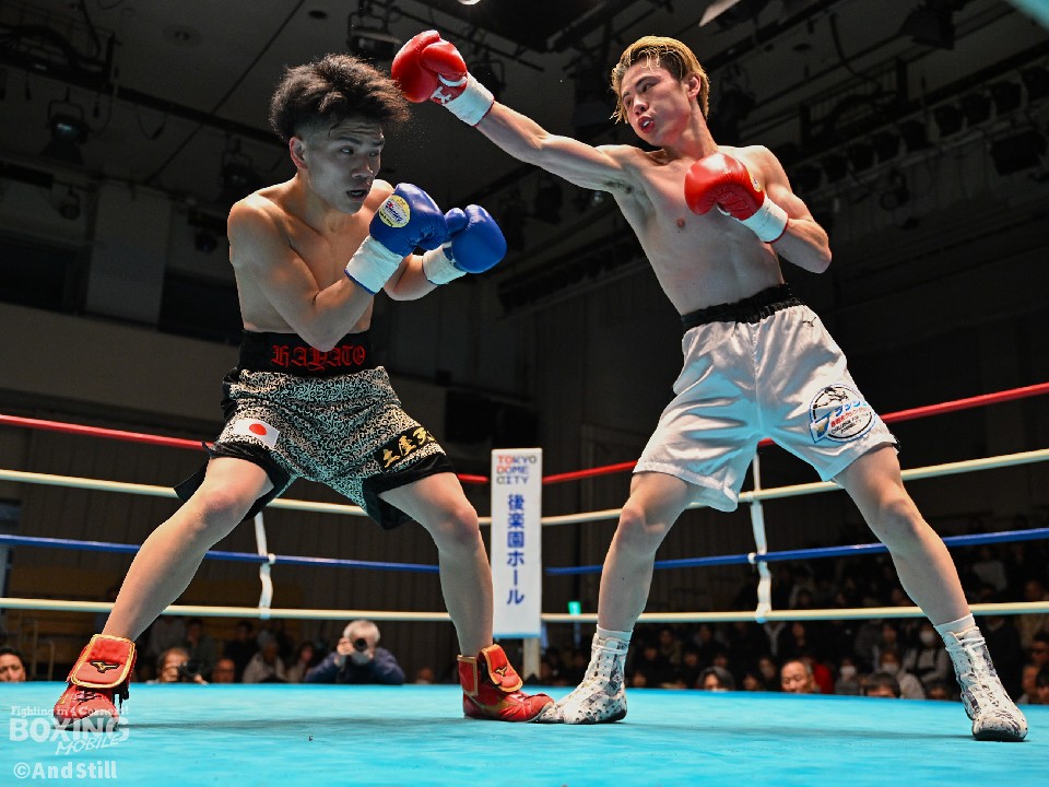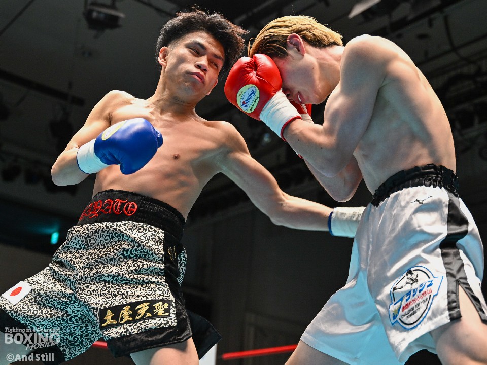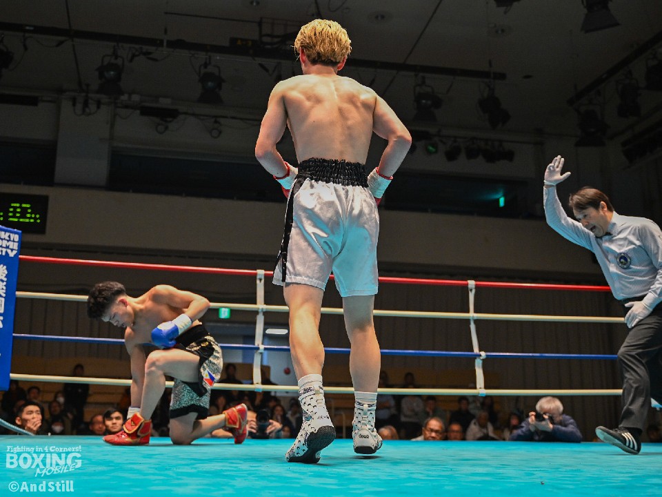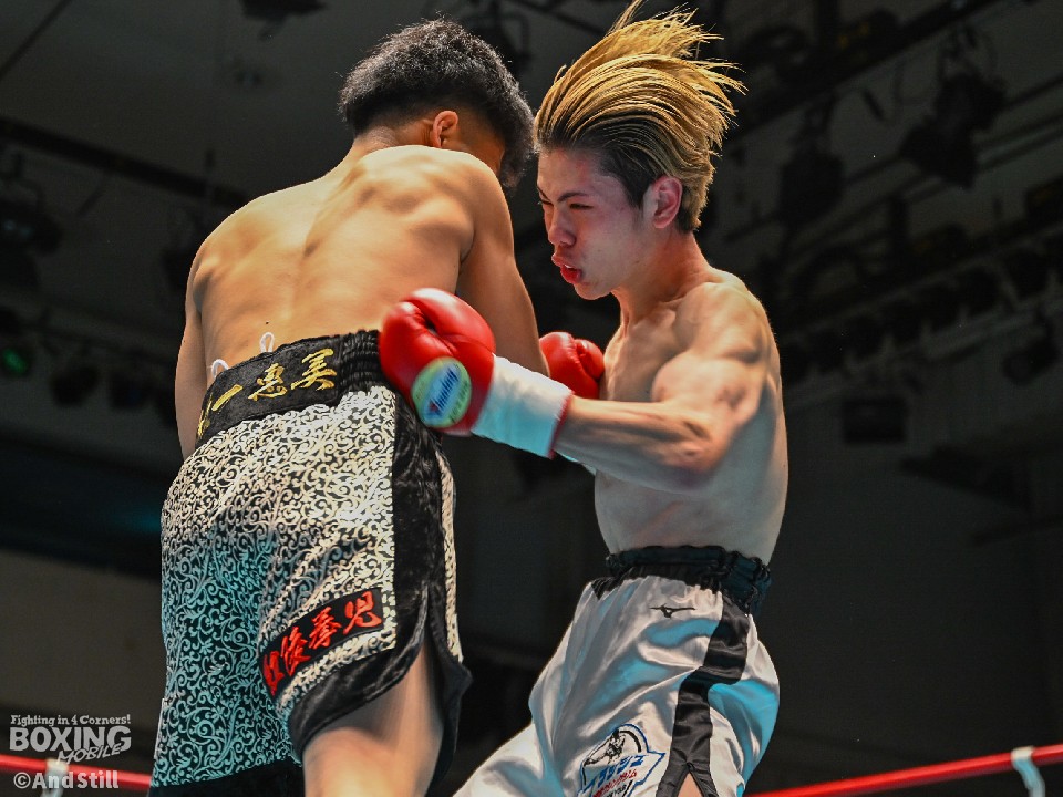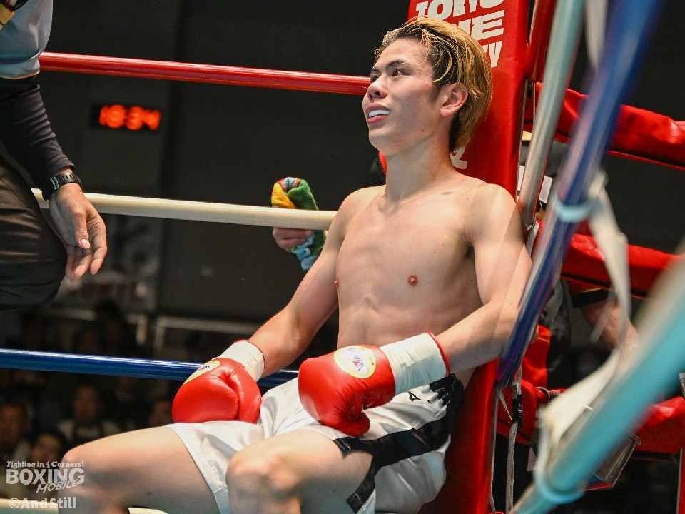 試合:菊地がステップを刻みながらワンツーで先制。サウスポー川島は左カウンターで腰を沈めさせて対抗。2回、菊地はプレスをかけながらワンツー左ボディで積極的な攻撃を展開。左ストレートを返した川島だが後手に回った。3回、川島は右ボディから右フックを好打すると右フックを引っかけてダウンを先取。勝負が決まったのは4回。川島は右ボディを突き刺しコーナーに追い込むとパンチをまとめてレフェリーストップに持ち込んだ。