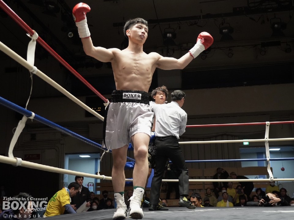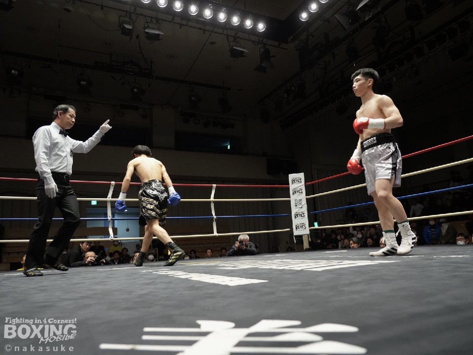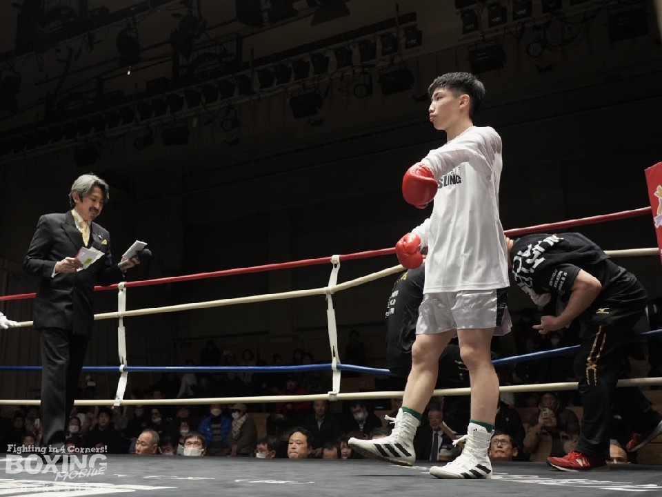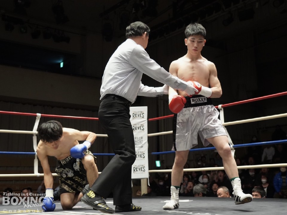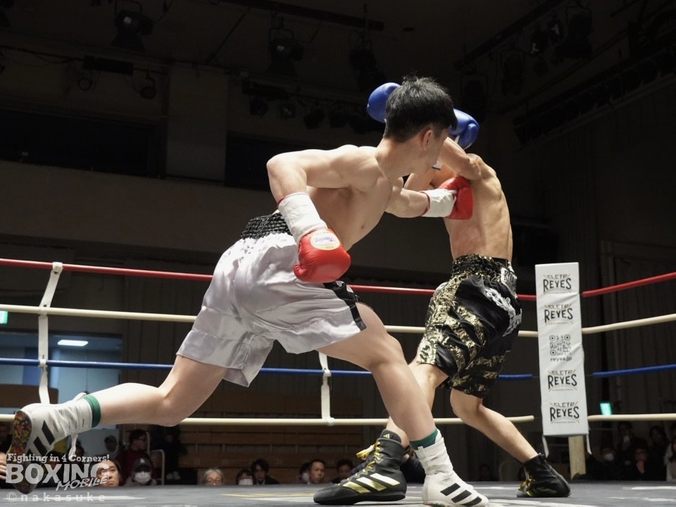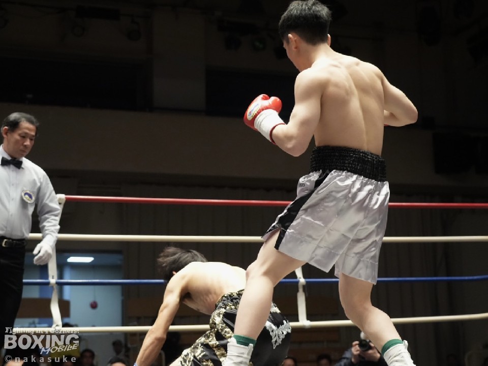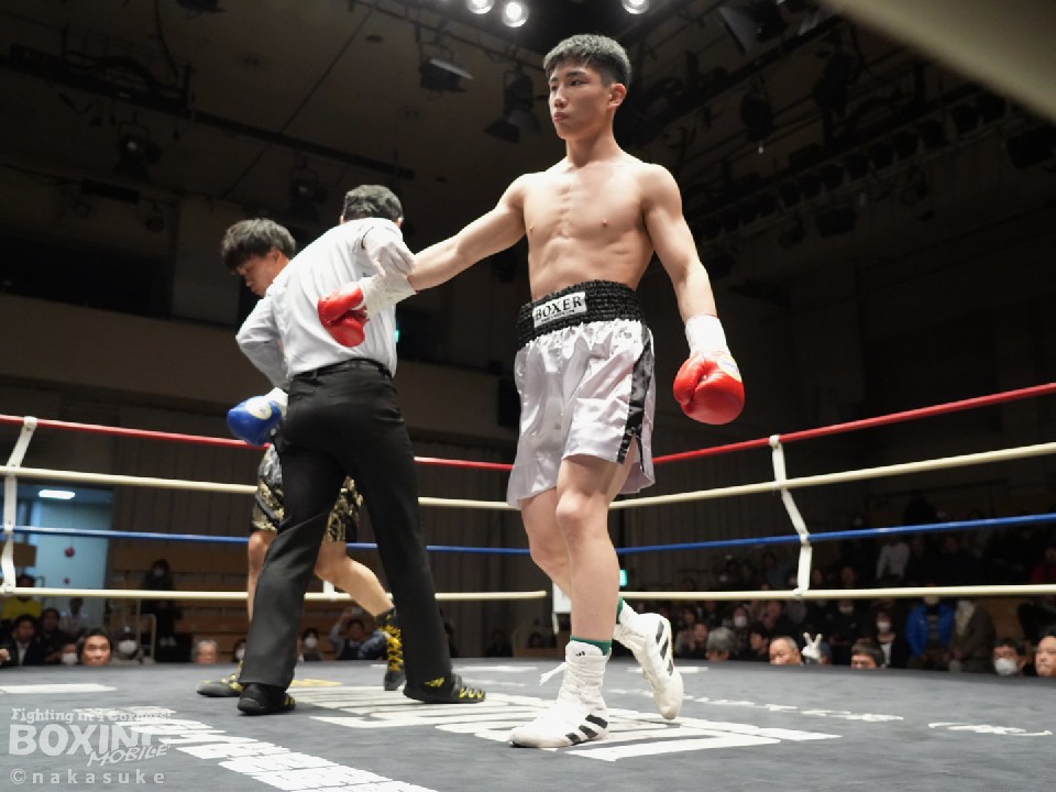 試合:開始30秒、サウスポー鈴木が左ストレートを合わせてダウンを奪うと距離を意識しながら右フックでダウンを追加。再開後、左オーバーハンドで顔を弾くとパンチをまとめてレフェリーストップに持ち込んだ。