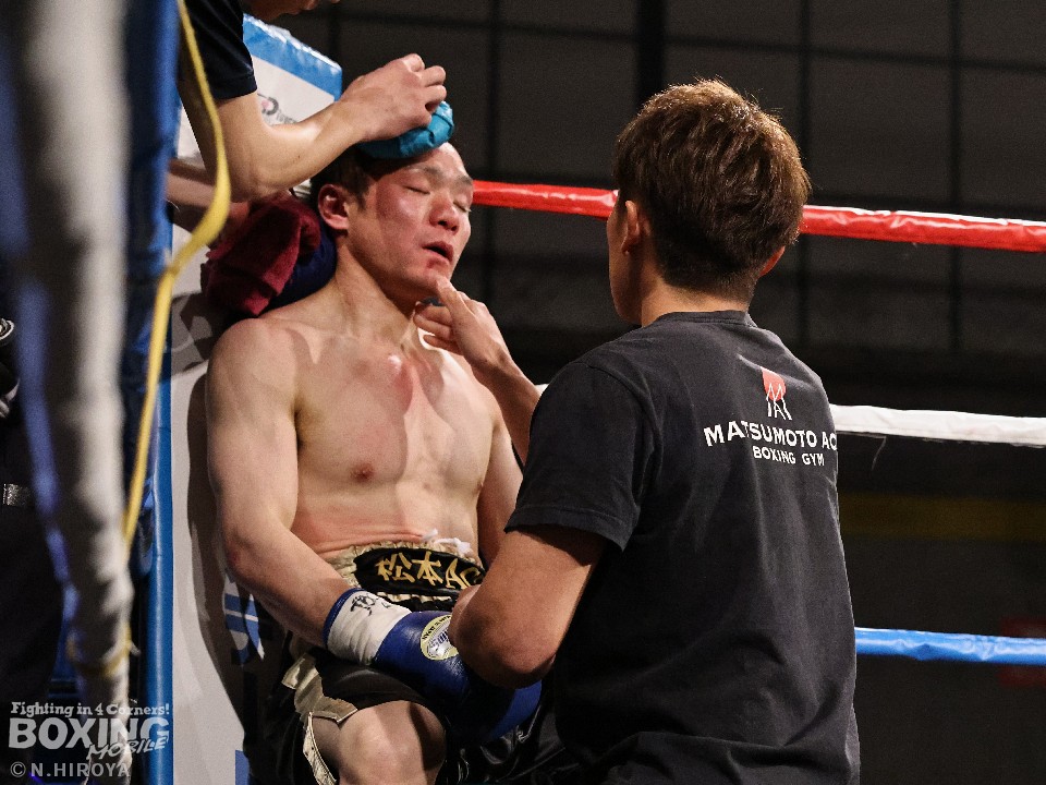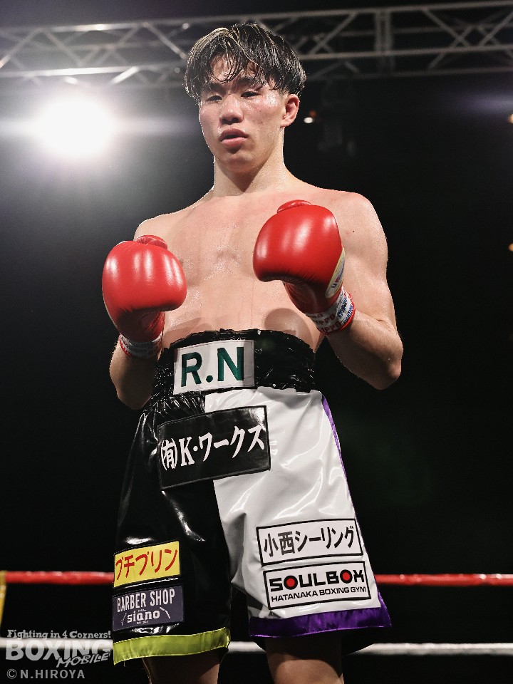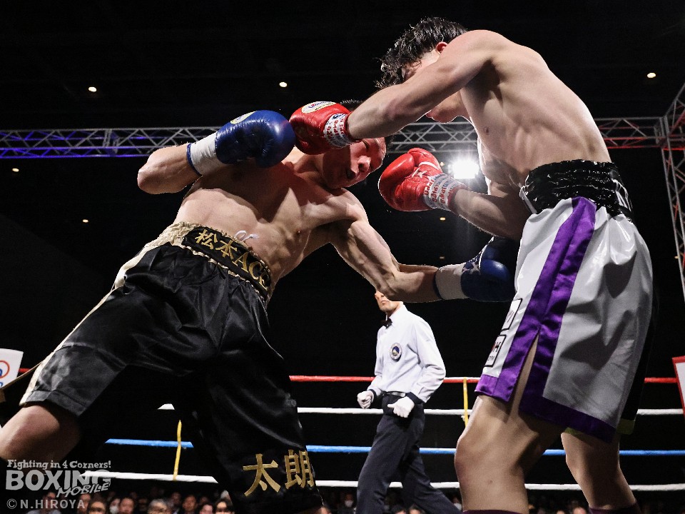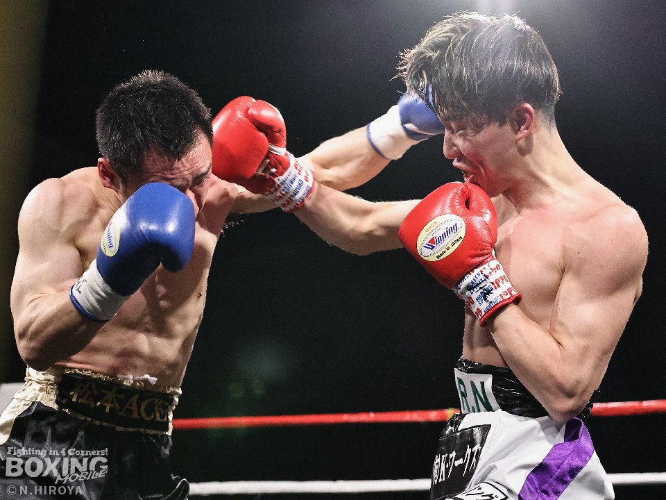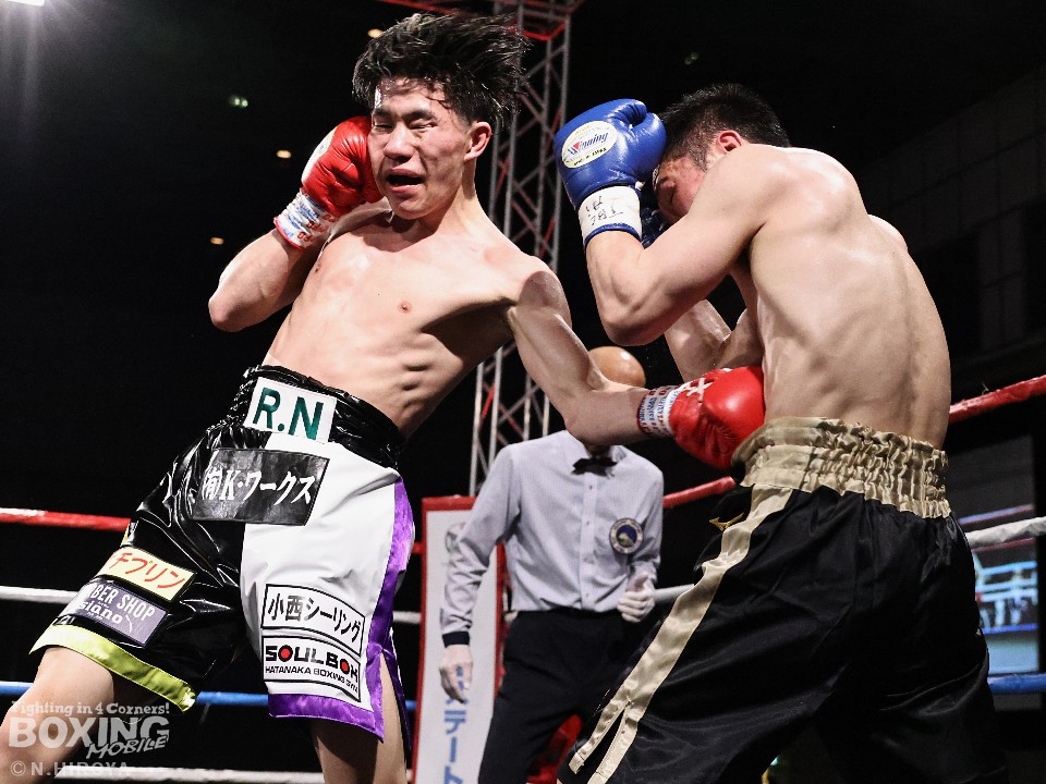 試合:中村がジャブから丁寧に組み立てて先制。なかなか懐に飛び込めない望月だが、ラウンド終盤に右フックから連打につなげた。2回、ジリジリと距離を詰める望月だが、中村は冷静に対応。3回、中村はワンツージャブで顔を弾くと距離をキープ。左ボディにつなげたい望月だが、あと一歩が踏み込めず。5回、しつこく前進しながらショートパンチで攻め立てる望月と足を使いながらジャブを軸にアウトボクシングを展開する中村の構図。6回、望月はプレスをかけてボディ攻撃から回転力を活かした連打で積極性をアピールした。中村が昨年11月の新人王西軍代表決定戦以来の再起戦を飾った。