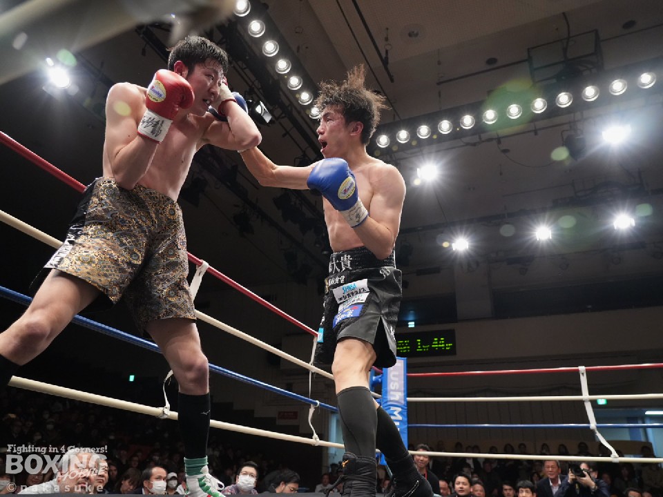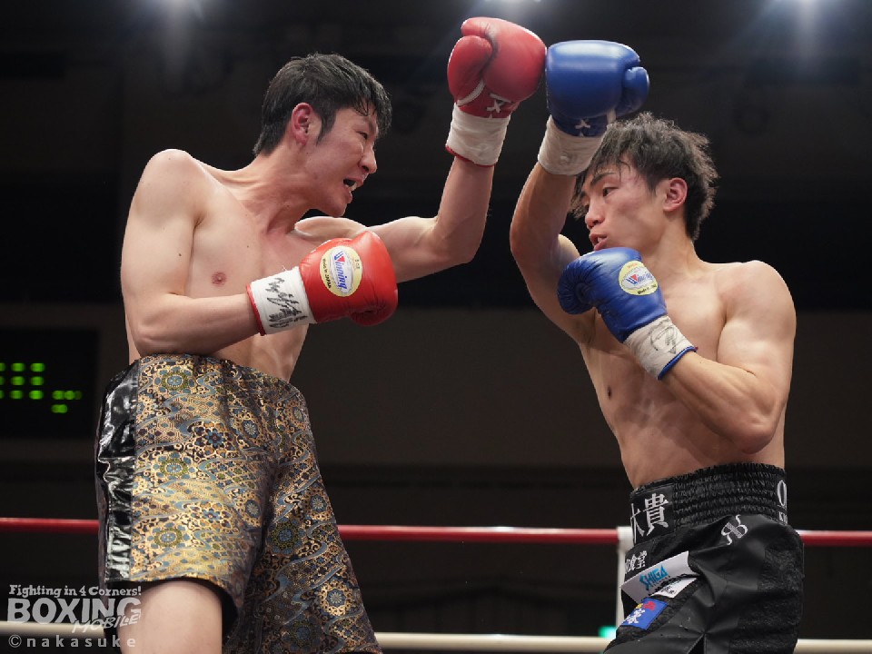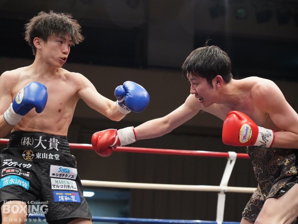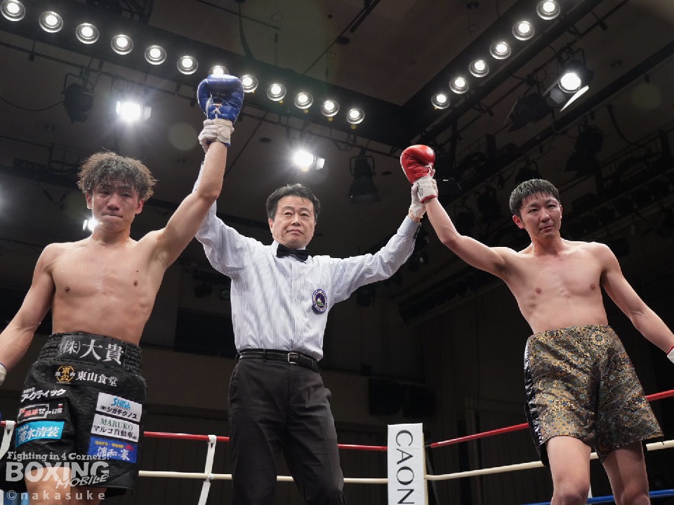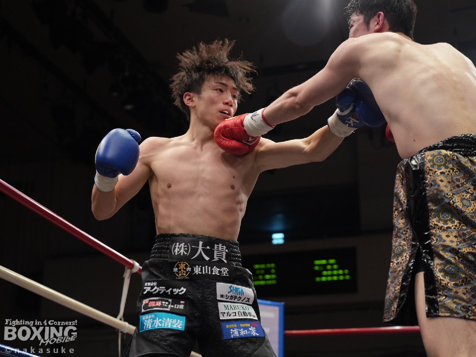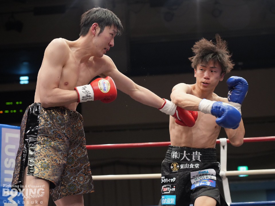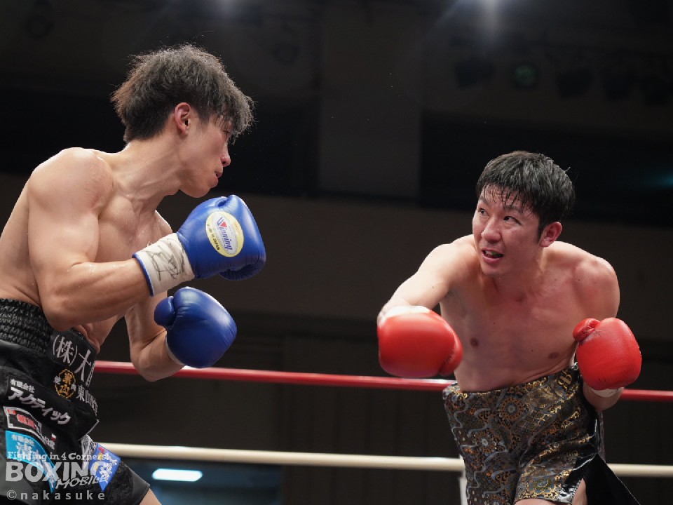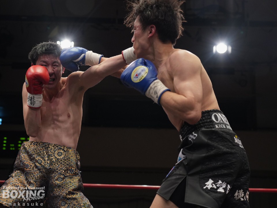 試合:初回、横内が上下のコンビネーションで積極的な攻撃。泉山が強振の打ち下ろしの右で反撃。2回、泉山のパンチが上下を捉え始めこの回の優勢をアピール。3回、両者激しい打ち合いを展開。横内が回転力を活かし攻めるが、泉山も明確なヒットでポイントを重ねる。最終4回、足を止めての打ち合いに。泉山の強打が顔面を捉え、横内は手数を緩めず攻め続ける。大歓声に包まれた試合の決着は判定の結果ドロー。両者に会場から大声援が送られた。