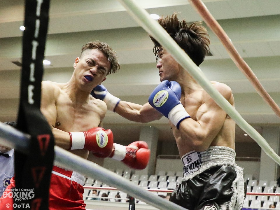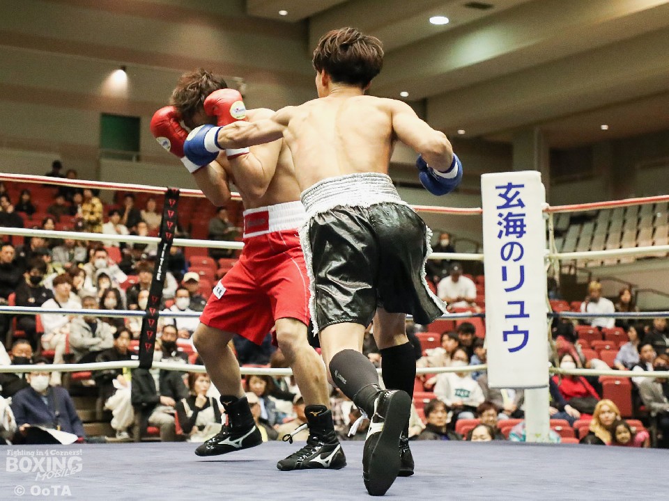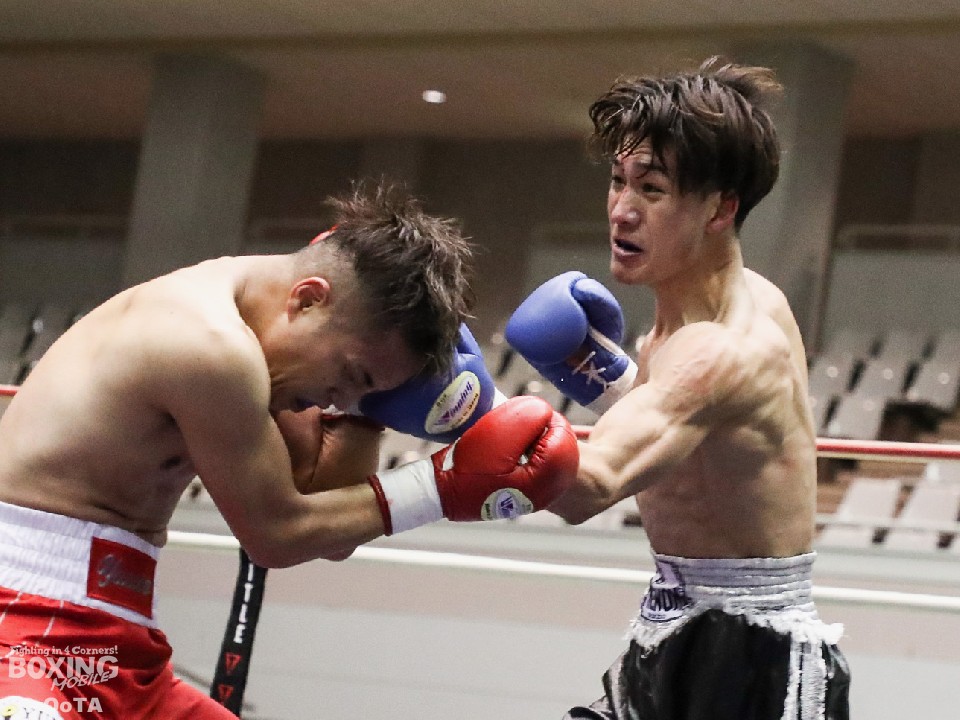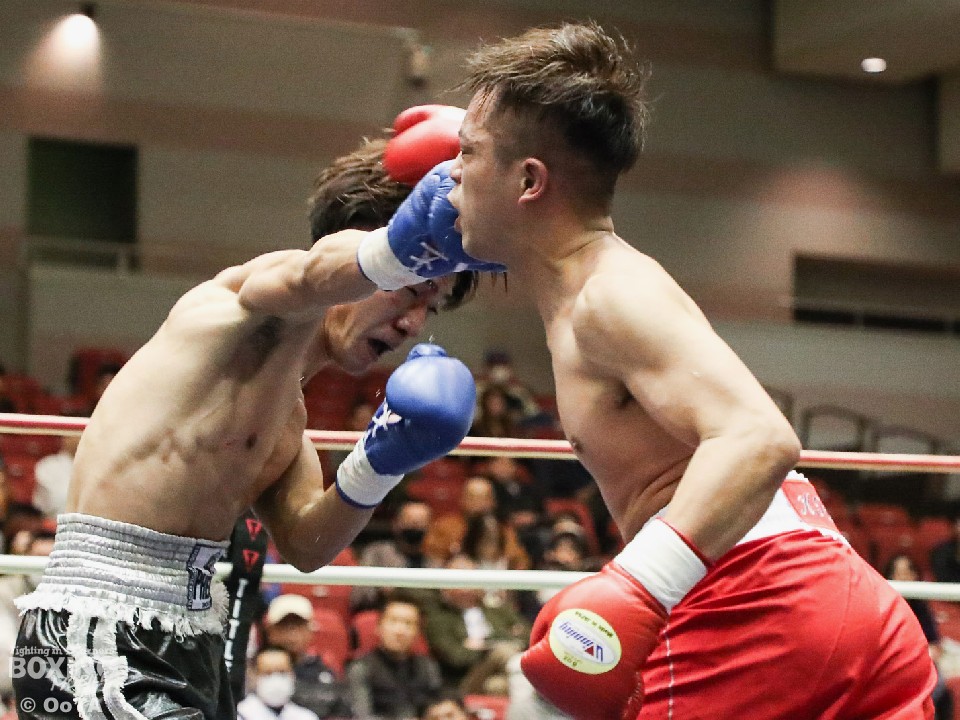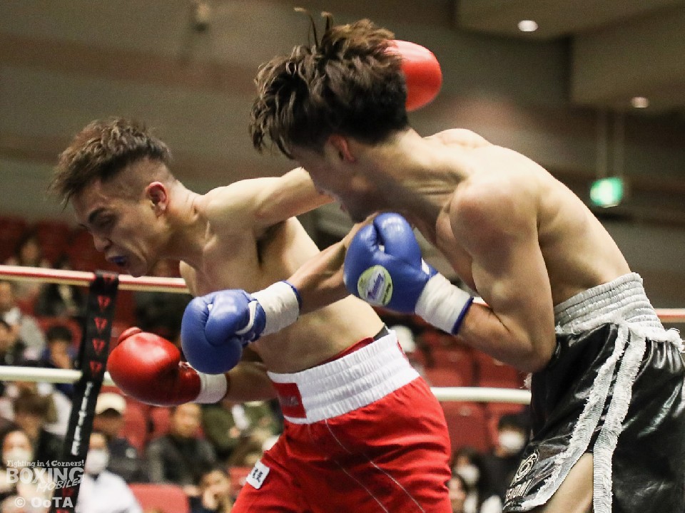 試合:サウスポーの鶴丸がジャブで距離を取りコツコツとパンチを集めると、対する古我知はじりじりとプレスをかけて距離を潰した。3回、鶴丸のアウトボクシングが機能、サイドの動きでテンポ良くポイントを奪った。最終回、豪快にパンチを振るう古我知だったが、鶴丸は丁寧なアウトボクシングを崩さず。フルマークの判定で鶴丸が勝利した。