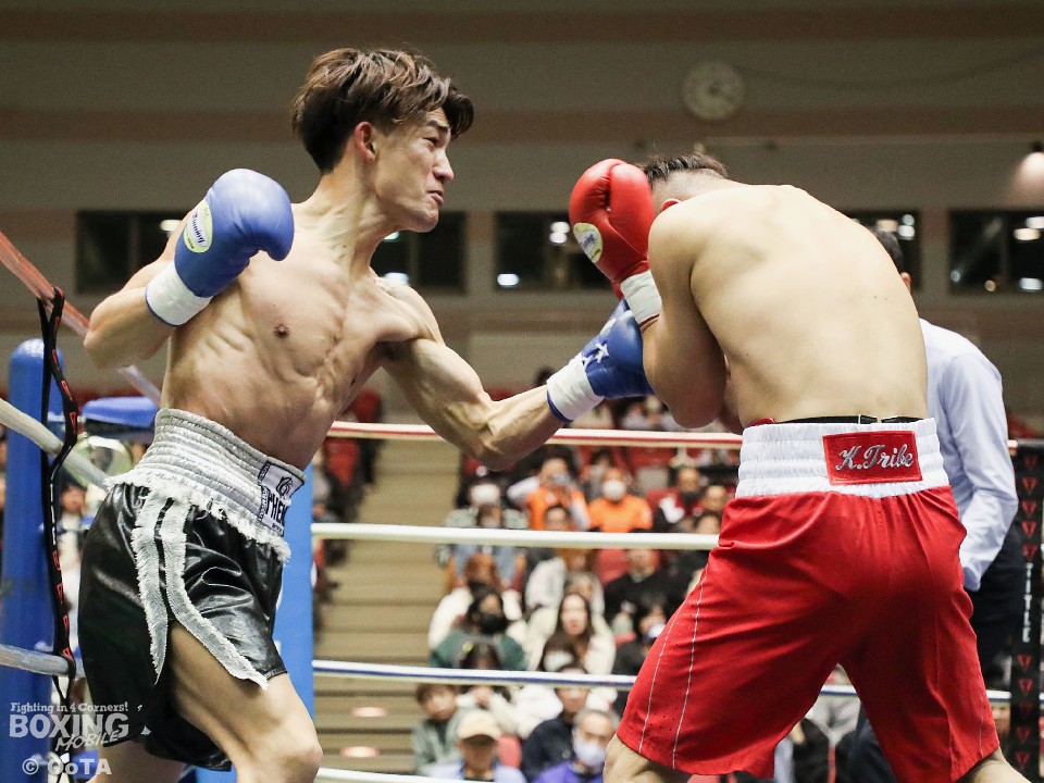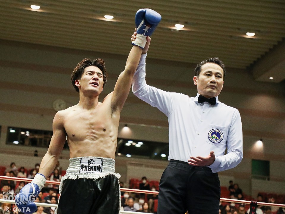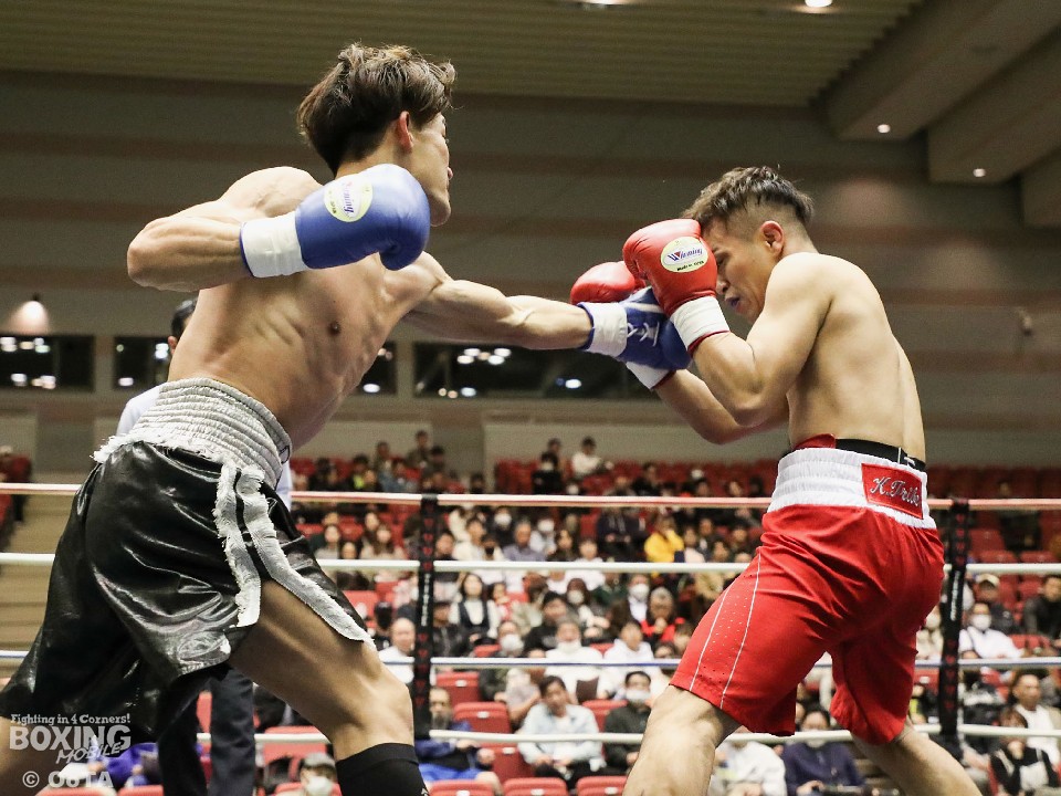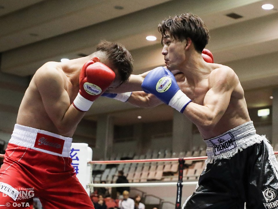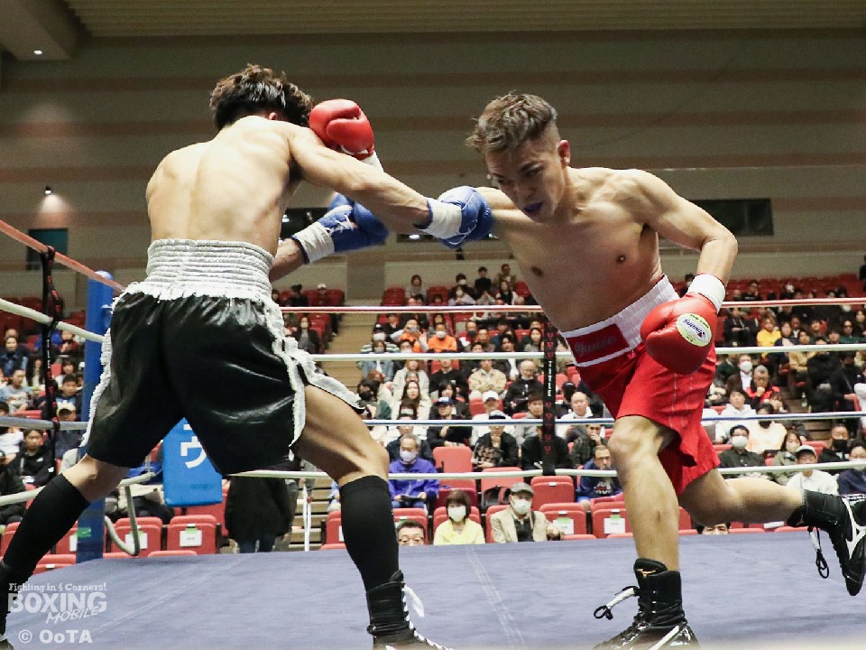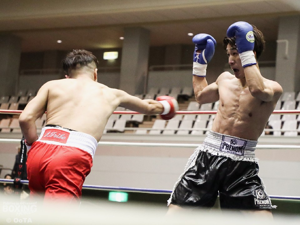 試合:サウスポーの鶴丸がジャブで距離を取りコツコツとパンチを集めると、対する古我知はじりじりとプレスをかけて距離を潰した。3回、鶴丸のアウトボクシングが機能、サイドの動きでテンポ良くポイントを奪った。最終回、豪快にパンチを振るう古我知だったが、鶴丸は丁寧なアウトボクシングを崩さず。フルマークの判定で鶴丸が勝利した。