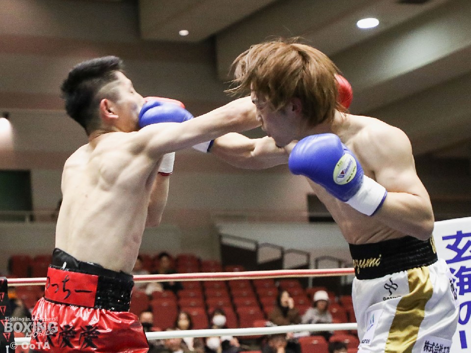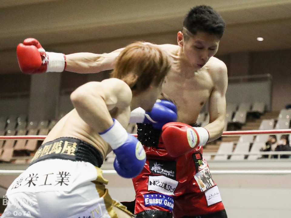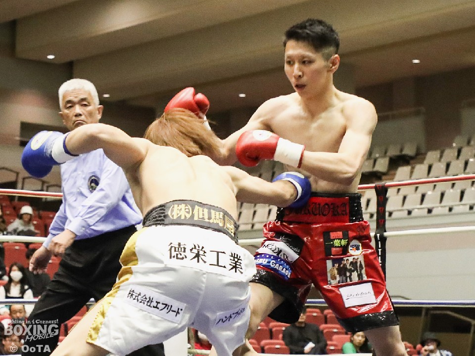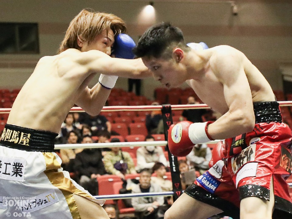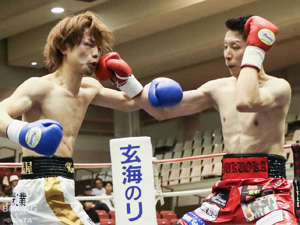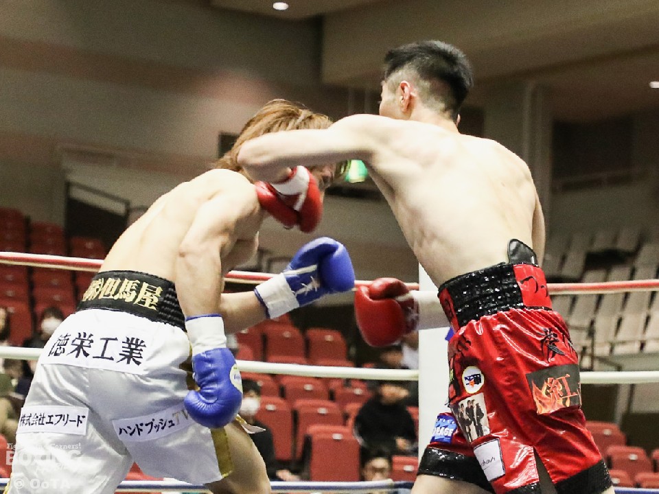 試合:サウスポーの両者はテンポ良くコーナーから飛び出すと、右ジャブで激しく牽制。堤が右を上下に打ち分ければ両角も左ストレートを打ち込みペース争いは激化。2回、距離が詰まった打ち合いの最中に、両角の左フックがカウンターでクリーンヒット。痛烈に倒れた堤を見たレフェリーが即座に試合を止めた。鮮烈なTKO勝利で両角がB級昇格を決めた。