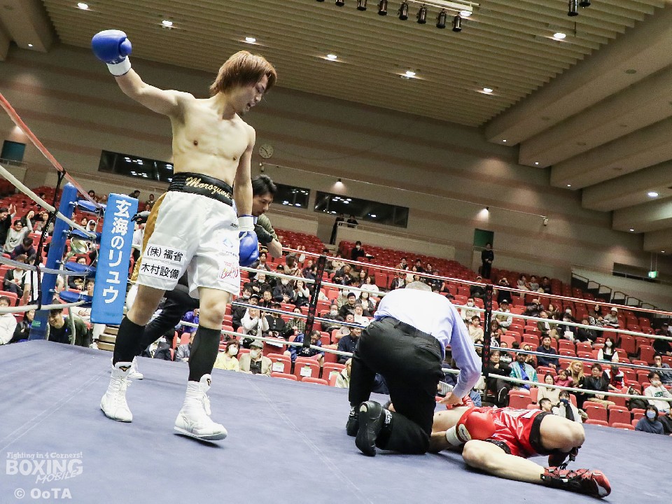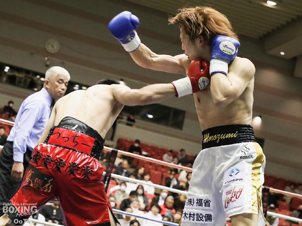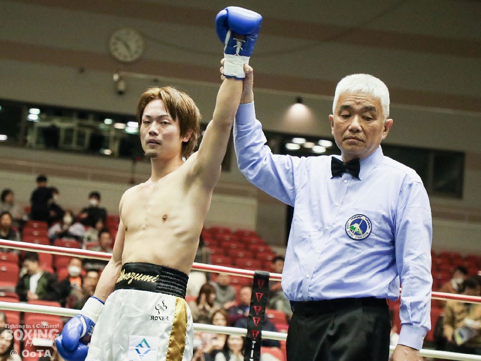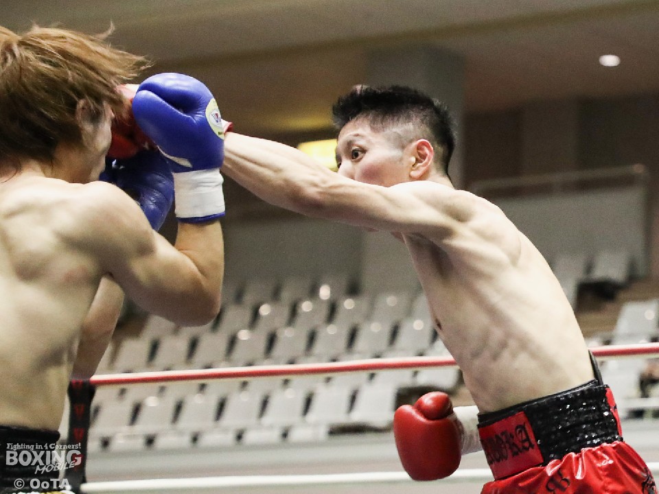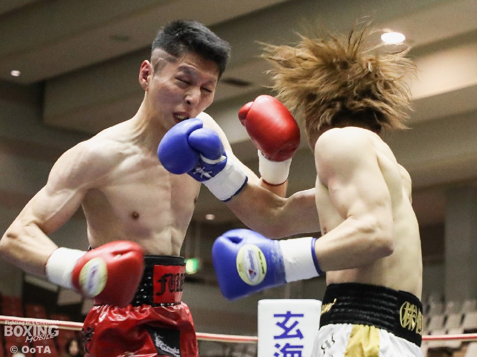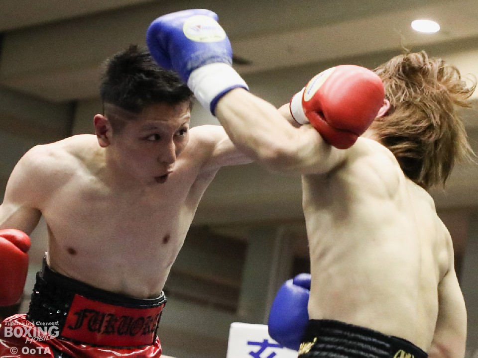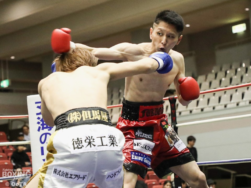 試合:サウスポーの両者はテンポ良くコーナーから飛び出すと、右ジャブで激しく牽制。堤が右を上下に打ち分ければ両角も左ストレートを打ち込みペース争いは激化。2回、距離が詰まった打ち合いの最中に、両角の左フックがカウンターでクリーンヒット。痛烈に倒れた堤を見たレフェリーが即座に試合を止めた。鮮烈なTKO勝利で両角がB級昇格を決めた。