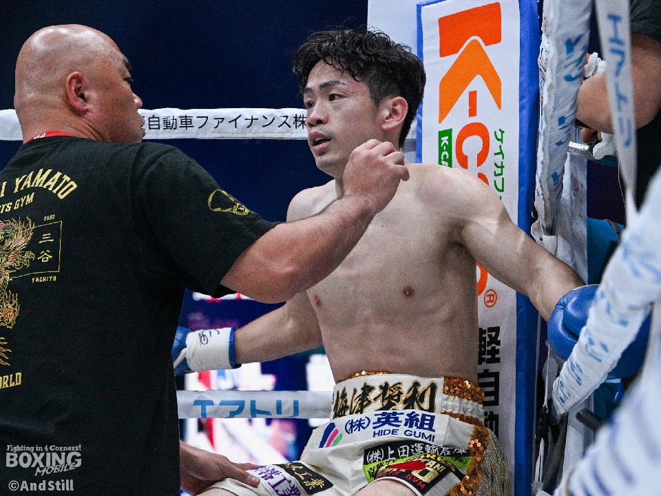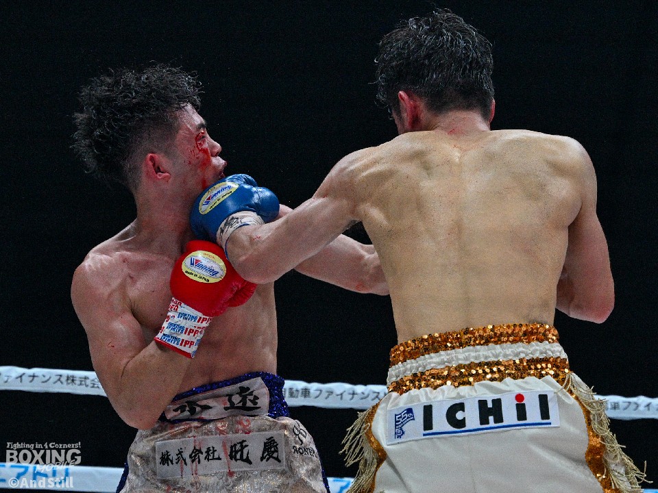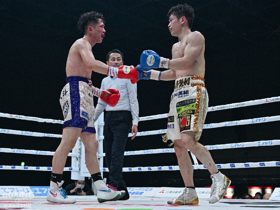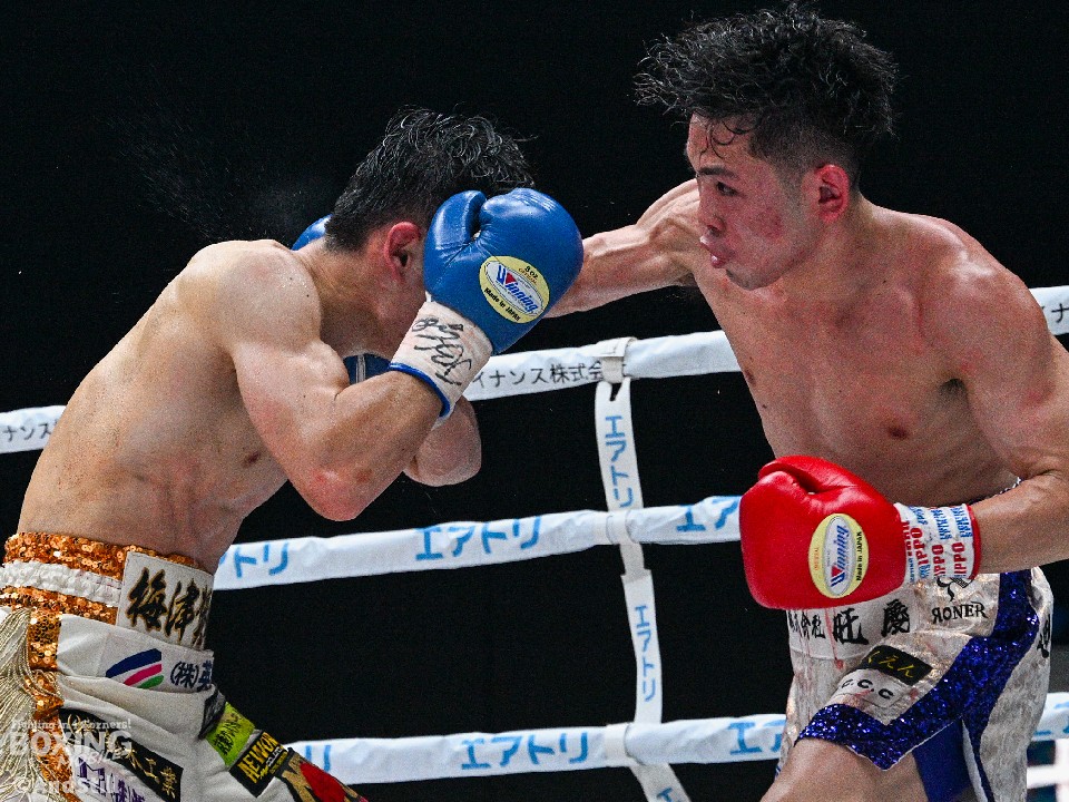 試合:ジャブの差し合いからスタートした試合は、辻が右フックで顔を弾くと左フックを合わせて先制。2回、辻は緩急をつけながら左フック、右フックをヒット。3回、梅津は距離を詰めて回転力を活かした連打で攻勢。偶然のバッティングで梅津は右目上をカット。お互いに一歩も引かずリング中央で激しいパンチの応酬。5回、頭がぶつかり今度は辻は右目上を負傷。甲乙つけがたいラウンドだが、梅津の有効打がやや上回った印象。6回、梅津は右フックで押し込むとギアを上げて優勢を印象付けた。7回、辻は左フックで迎え撃つとしつこい梅津に有効打でポイントをアピール。8回、梅津は距離を詰めてアグレッシブな姿勢を見せたが、辻も要所で左フックを得仕込み譲らなかった。ジャッジ1者は梅津につけたが残り2者はドロー。日本ランカー対決は決着がつかなかった。