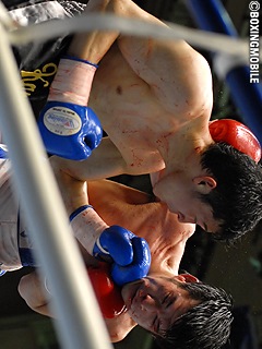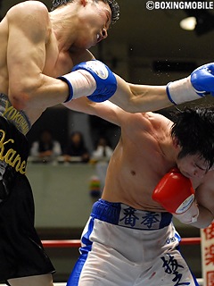 試合:序盤、プレスをかける小池に金子は足を使い左右フック、左ボディ、右ショートアッパーをヒットさせリズムを掴む。怯むことのない小池はさらにプレスをかけ、強引に左右フックを打ち込む。しかし、金子は圧されても下がりながらのショートアッパーで小池にリズムを掴ませない。中盤、ようやく小池のパンチがヒットしだすが、金子は今度はジャブで突き放し、クリーンヒットを許さない。7R、手数を出し続け、気持ちで負けていない小池に金子も足を止め激しい打ち合いに。ここでも金子がヒットで上回り、危険と見たレフェリーが試合を止めた。