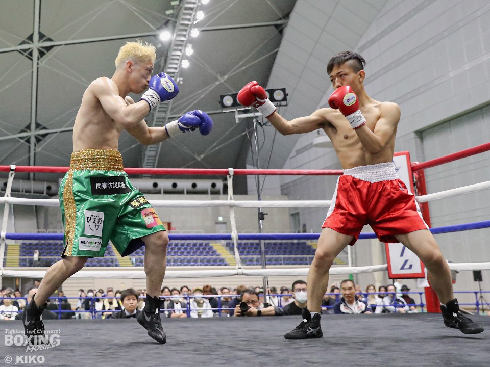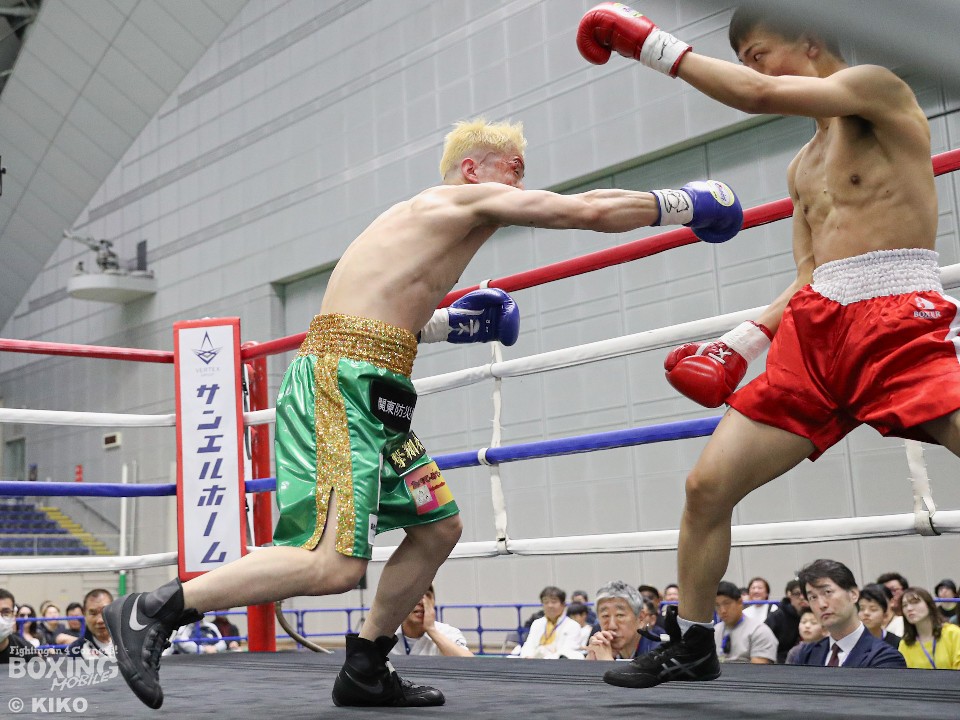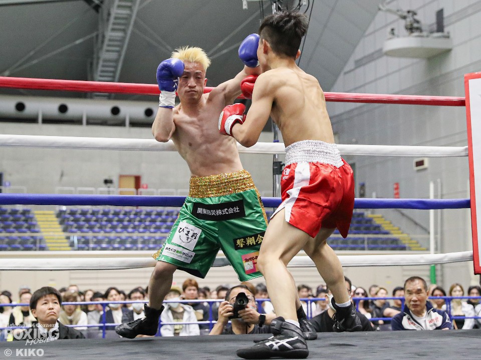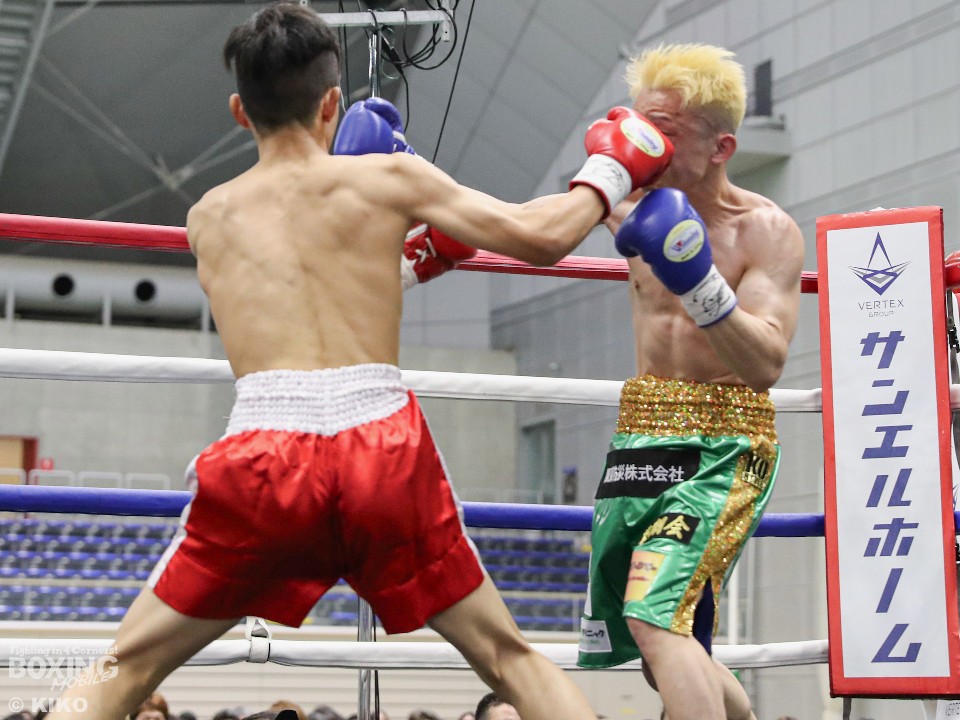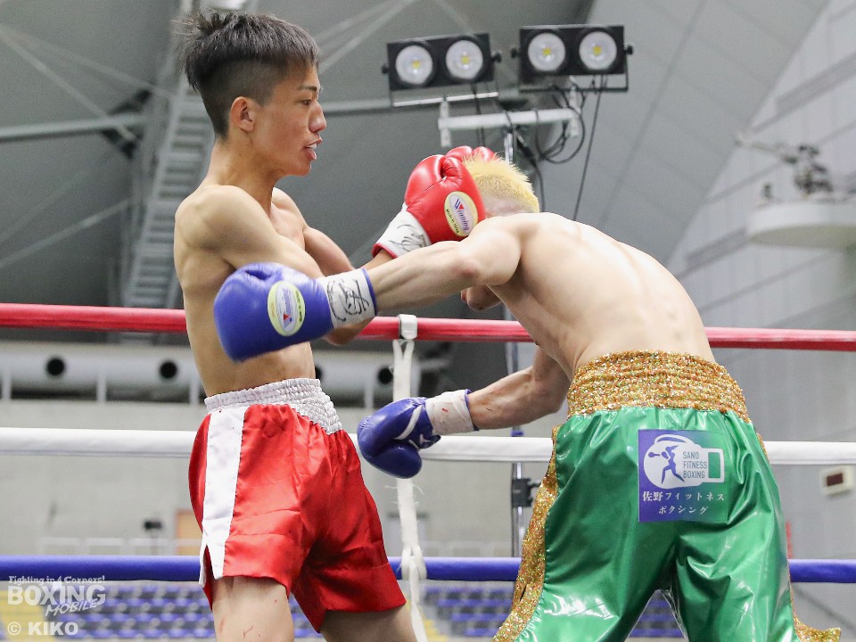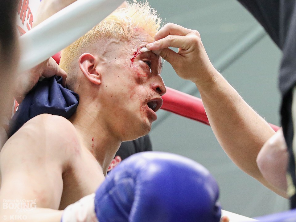 試合:サウスポー井上がゴング開始直後弾けたように打ち合いに行く。鈴木も応じるがバッティングで右目をカットしドクターチェックが入る。リスタート後も井上は左右フックをぶん回し攻める。鈴木は後手に回る。2回、開始直後鈴木にドクターチェックが入る。傷が深く試合続行は危険と判断し負傷引き分けとなった。