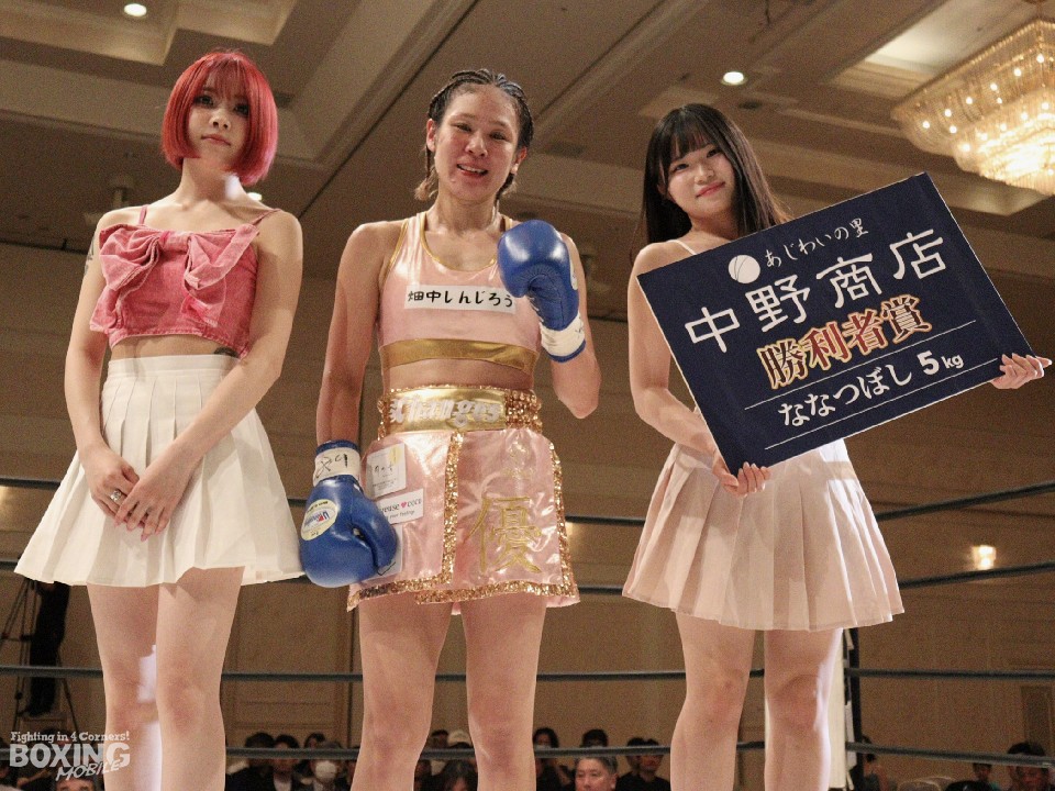 試合:高山がワンツー連打で仕掛ければ遠藤も左フックで顔を弾き応戦。初回から火が出るような打ち合いで会場を盛り上げた。2回、高山が打ち終わりに右ストレートを合わせて見栄えの良さをアピール。3回、もう一度ギアを上げた遠藤が左右フックで押し込み挽回。4回、苦労困憊の中、必死にパンチを繰り出す中、高山がジャブからワンツーにつなげて突き放した。有効打で上回った高山が勝利した。