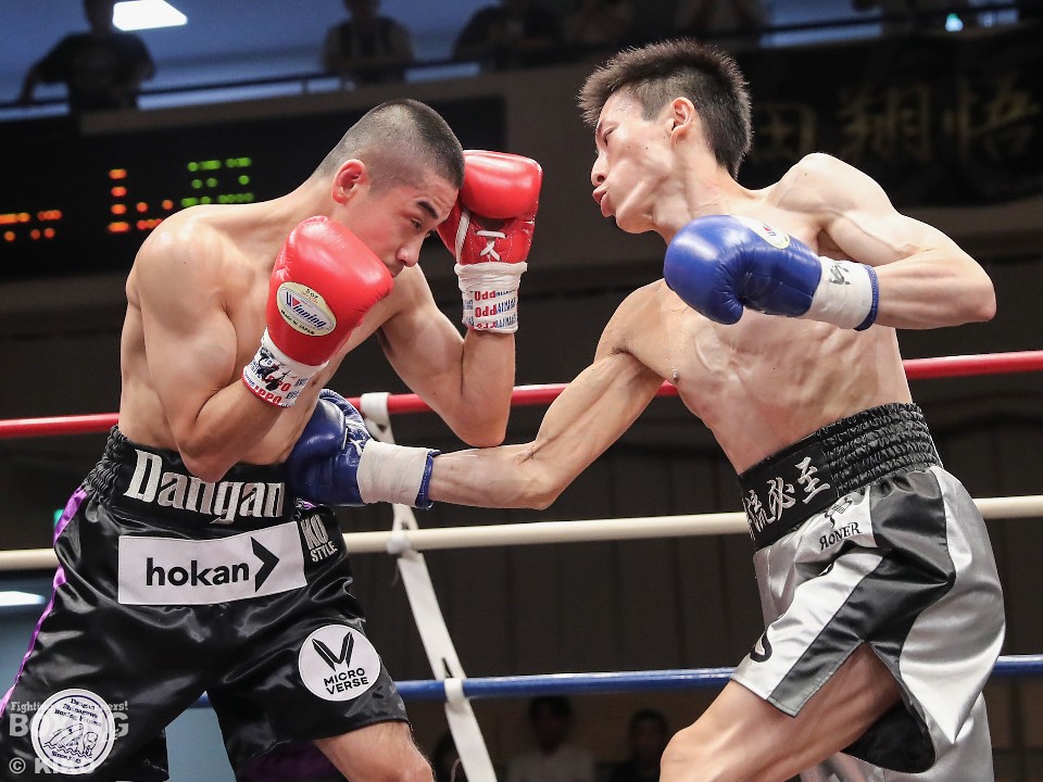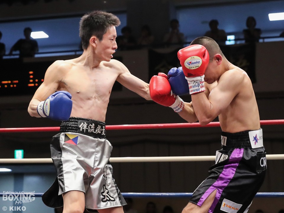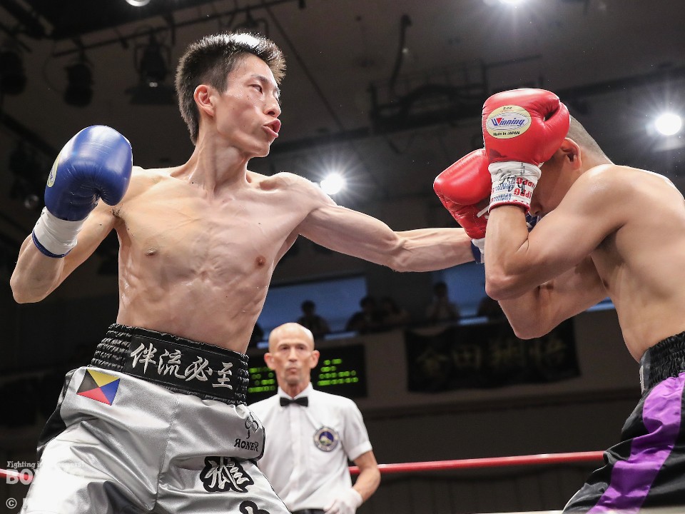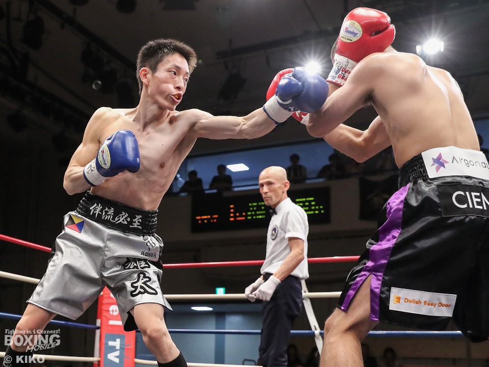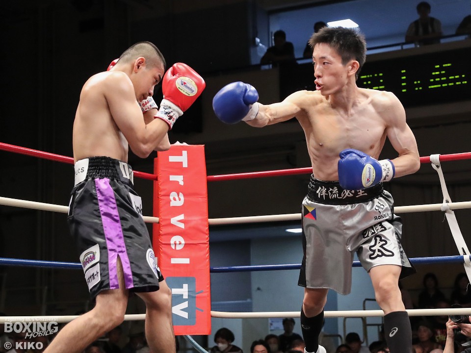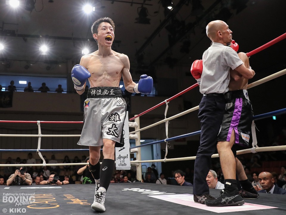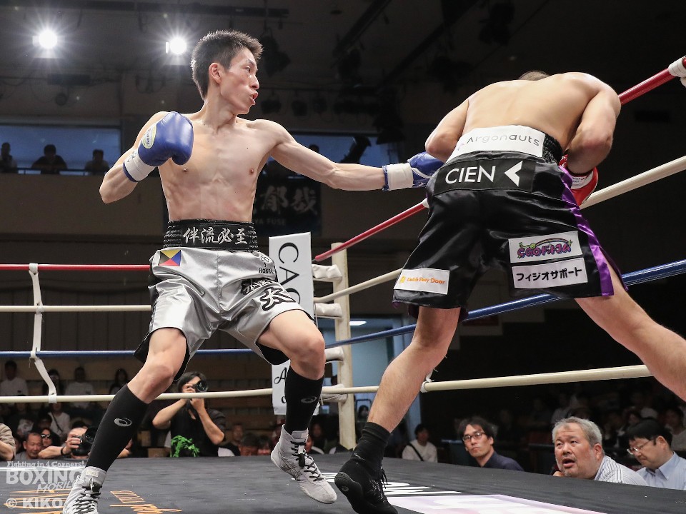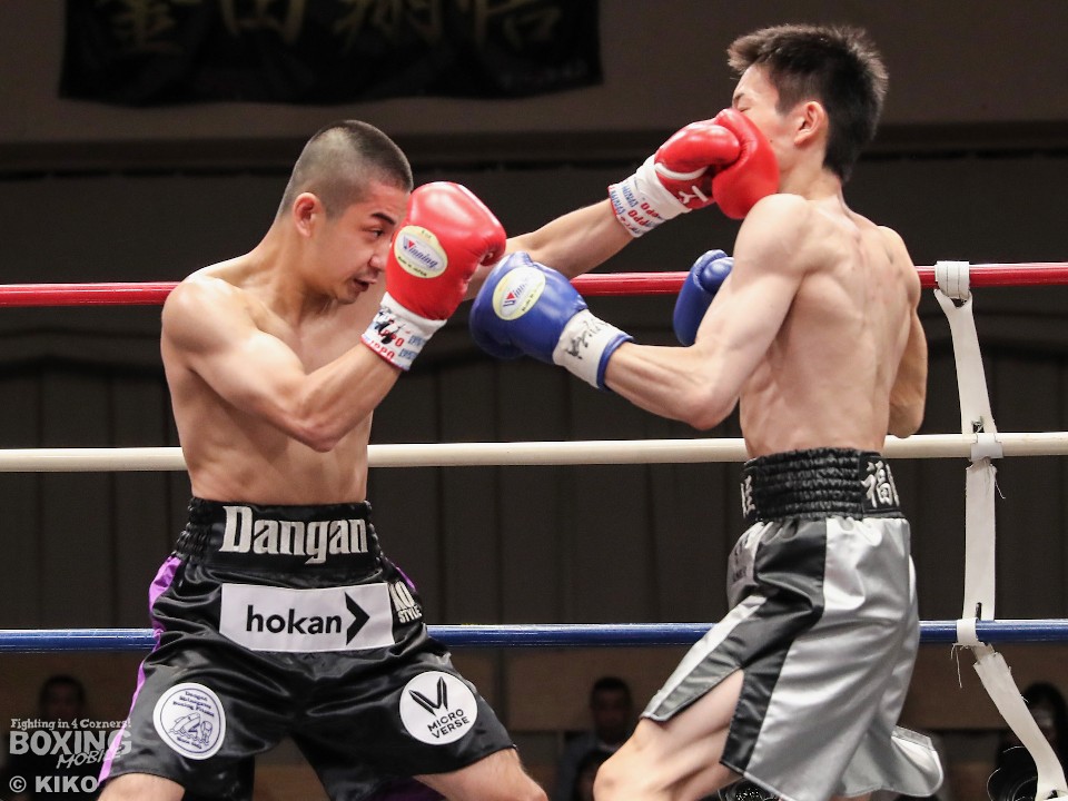 試合:木下が丁寧にジャブを突きながらワンツー、右アッパーをヒット。前に出てくる横浜を左で突き放すと右アッパーでグラつかせて攻勢。チャンスとみるや連打から左フックでダウンを演出。ダメージが残る相手に迫るとワンツーを叩き込んだところでレフェリーが割って入った。木下が4戦目でうれしい初勝利を挙げた。