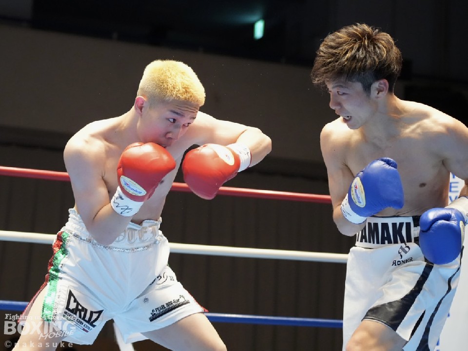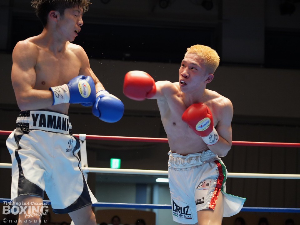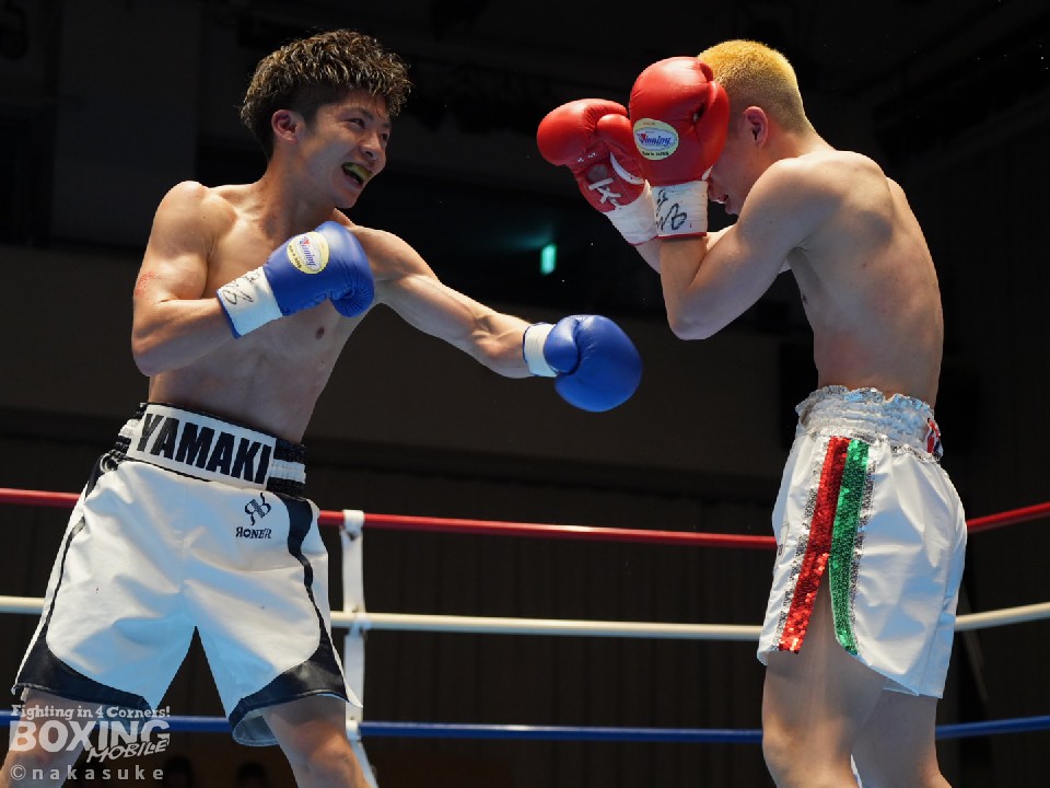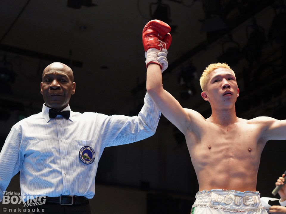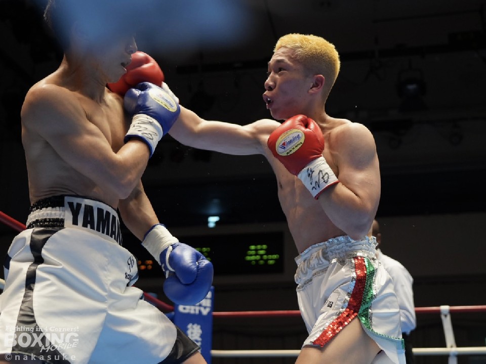 試合:布袋がプレスをかけながら右ボディアッパー、右フックで積極的な攻撃を展開。2回、内野は距離を意識しながらコンパクトな右フックで見栄えの良さをアピール。3回、布袋は右ショートでガクッと腰を沈めさせるとボディにパンチを集めて攻勢。しかし、ここを耐えた内野は右オーバーハンドを叩きつけて意地を見せた。明確なポイントが欲しい内野は右フックを強振。布袋も負けじと左右フックを繰り出しペースを渡さなかった。布袋が昨年9月以来の再起戦を飾った。