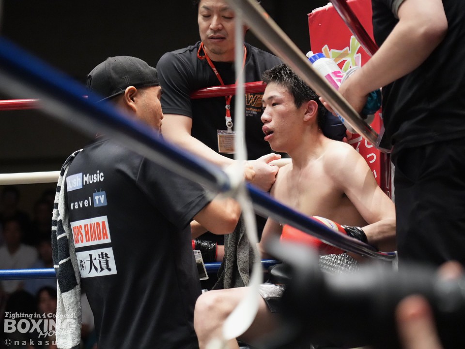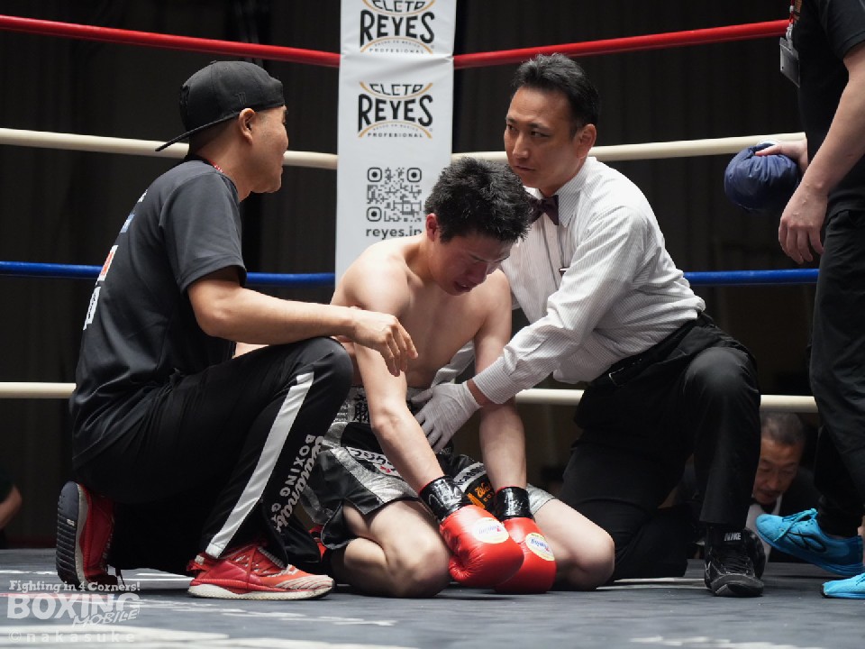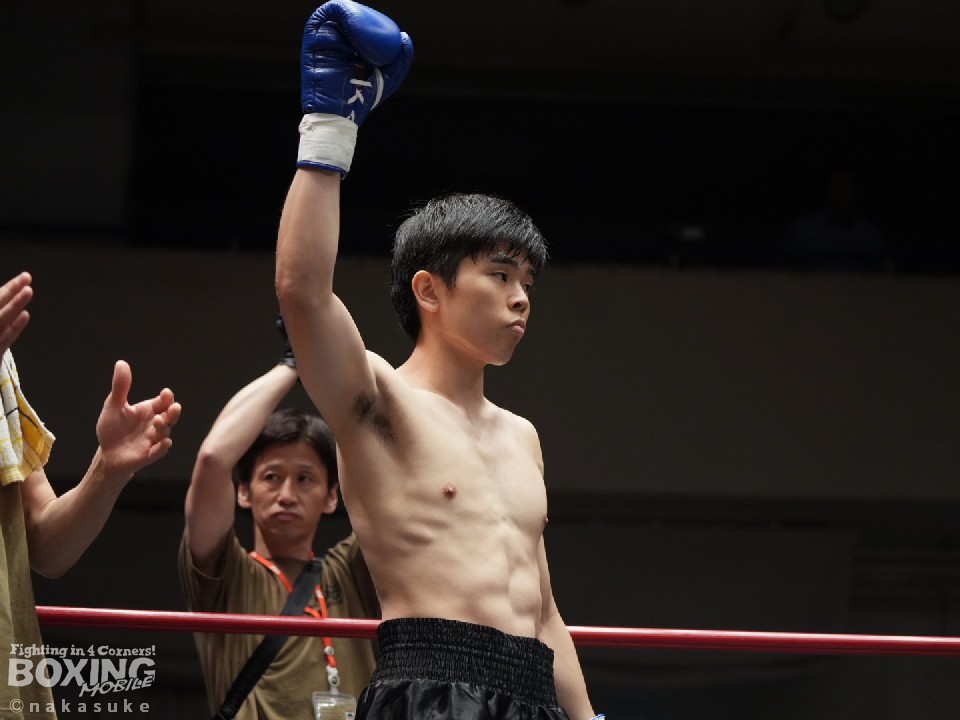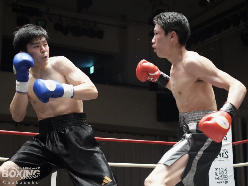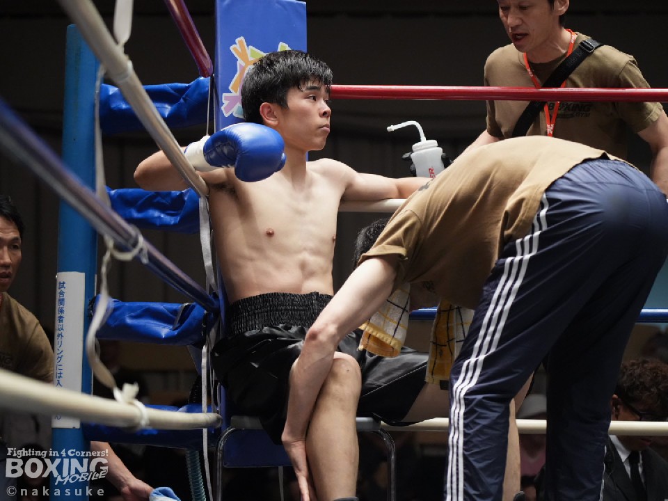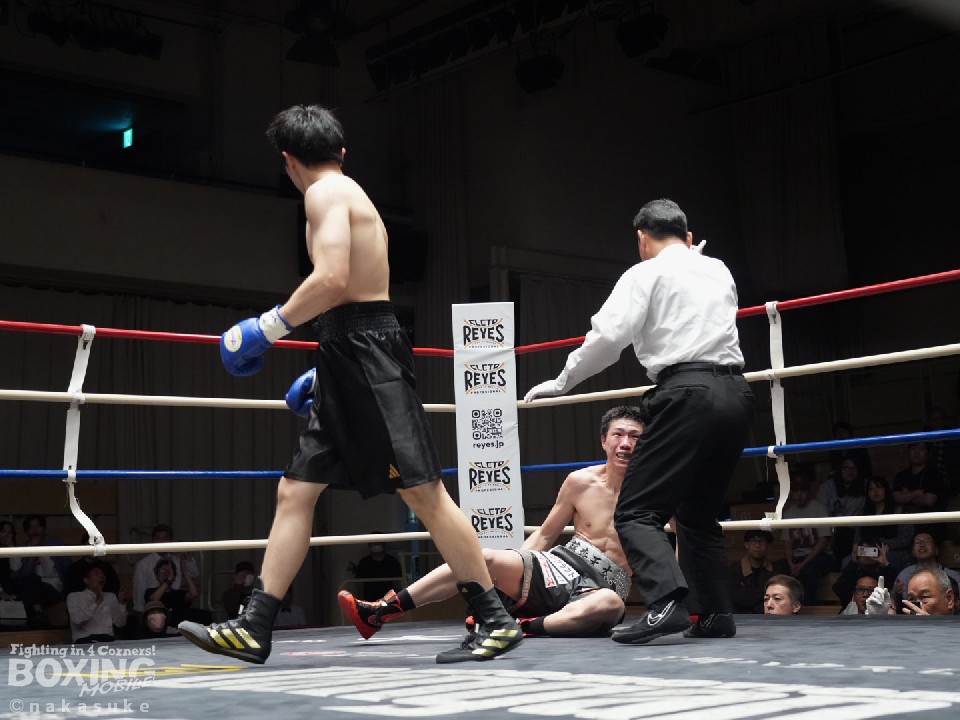 試合:藤森がジャブを突いて距離を作るが、出畑はガードを固めながらジリジリと距離を詰めると右クロスでダウンを演出。再開後、藤森は強気に打って出た。2回、藤森は左右フックを叩きつけて顔を弾くが、冷静な試合運びを見せた出畑は左ボディ、右ストレートで2度目のダウンを奪うとレフェリーはノーカウントで試合をストップした。17歳の出畑が3戦全勝(3KO)とした。
