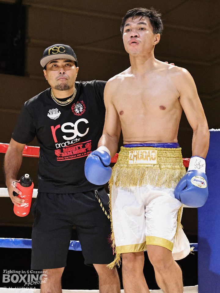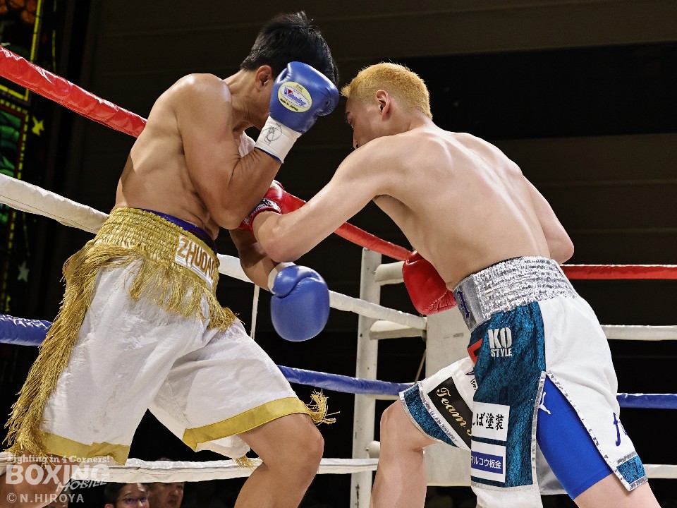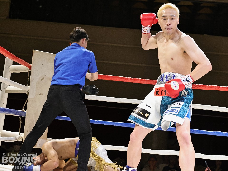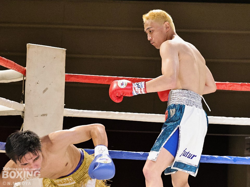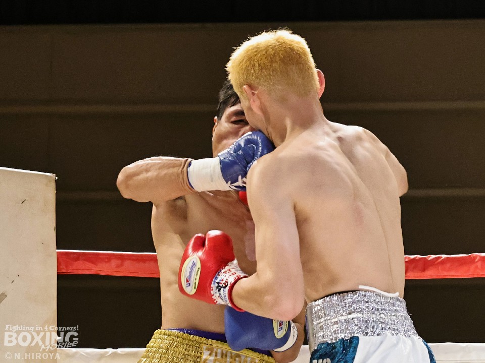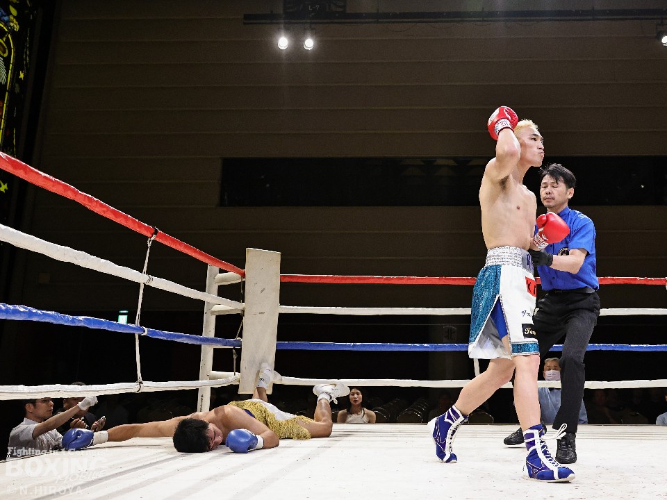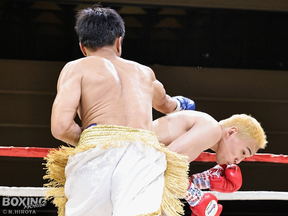 試合:日本ランカーの仲野が相手の出方を伺いながら落ち着いた立ち上がり。左ストレートを当てるとラウンド中盤ロープ際で右フックで1度目のダウンを奪う。なんとか立ち上がるナタワットに次は右アッパーを効かして2度目のダウンを奪う。ここでもしぶとく立ち上がったナタワットに仲野が右フックを打ち込み3度目のダウンを奪いレフェリーが試合を止めた。