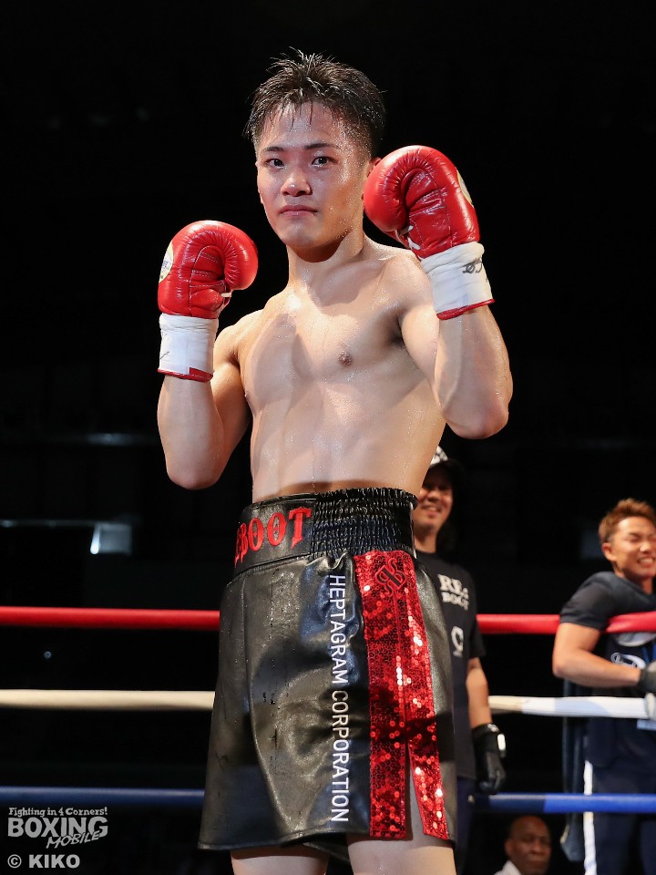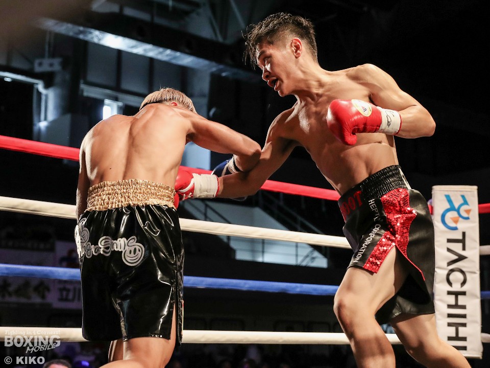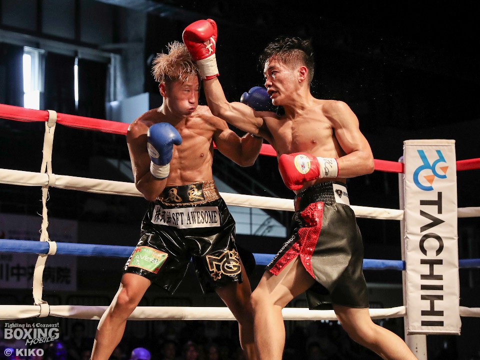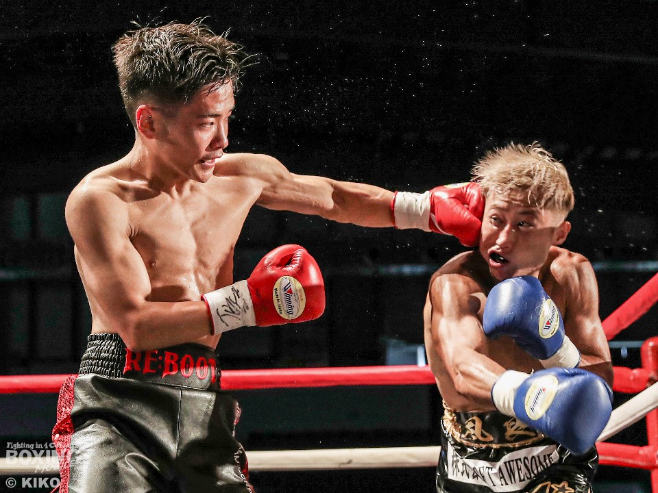 試合:赤城と小橋の対決。赤城はプロデビュー戦。初回はジャブを突きながら中間距離から中に入るタイミングを探った両者。テンポよくリング中央をキープした。2回は右クロスを繰り返したが、どちらも深く入らず。3回、右ストレートの後に左フックを返した両者だが、先に左フックを当てたのは赤城。小橋はバランスを崩して後ろに下がったが追撃は許さず。最終回、赤城がテンポを変えて飛び込んで中に入って左を打ったが、小橋も下がらずワンツーと左フックで顔面を弾いた。ジャッジは赤城の有効打を支持した。