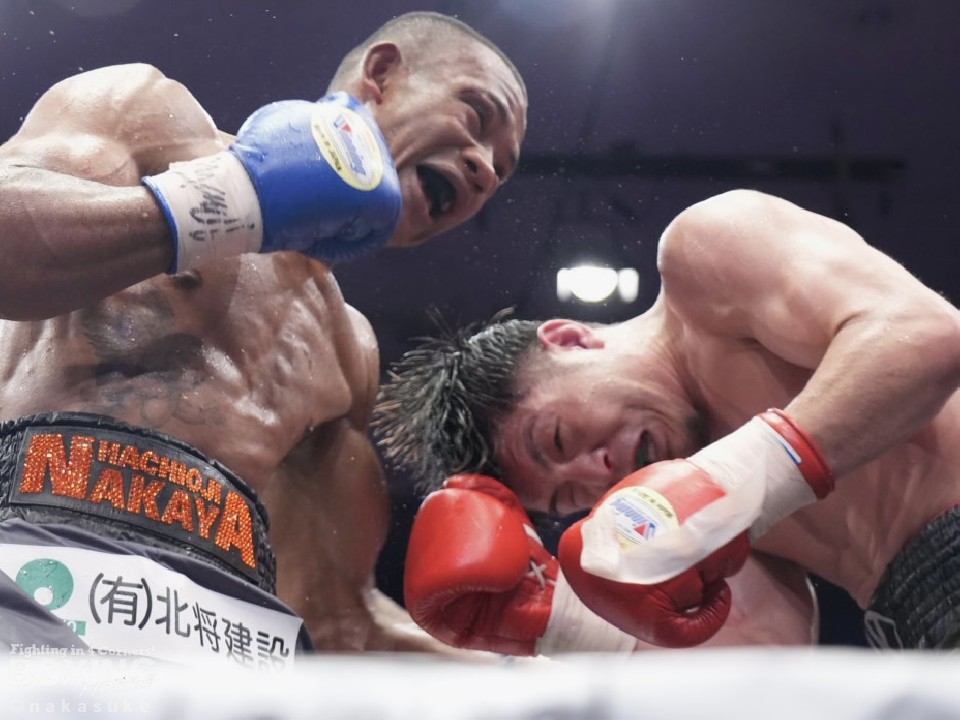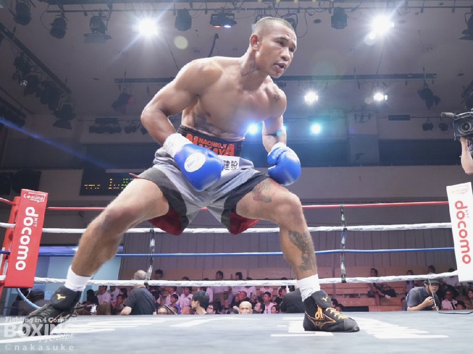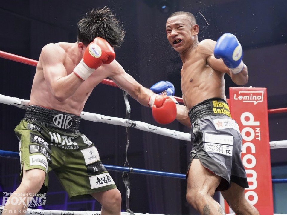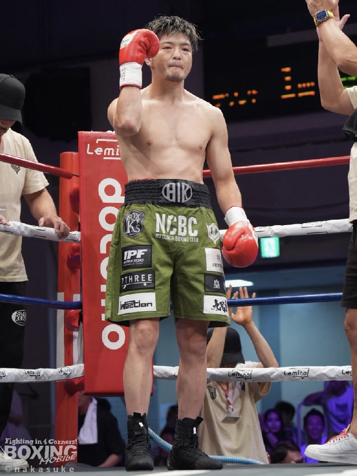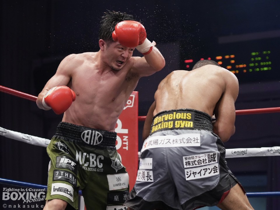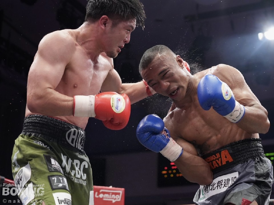 試合:空位のOPBFスーパーウェルター級王座を左右田とナァツが争った。ナァツが小刻みに頭を振りながら左ボディから仕掛けるのに対し、左右田はジャブで突き放しにいく構図。2回、左右田は右ストレートで迎え撃つとスッと横にズレて試合巧者ぶりを発揮。3回、ナァツは右ボディを叩きつけると相手のクリンチの隙間を上手く作り右フックをコツコツと叩いた。4回、クリンチが続く中、有効打を集めたのはナァツ。4回終了時の公開採点は39-37×3でナァツがリード。6回、流れを変えたい左右田は左フックをねじ込み仕掛けに行くとナァツも強気に応戦。ナァツはコンパクトな左アッパーから左フックをヒット。7回、ナァツは上下に打ち分けると回転力を上げて攻勢。8回終了時の公開採点は、78-74×2、79-73×1でナァツがポイント差を広げた。9回もナァツのラウンド。左ボディを突き刺すとサイドに回り込み見栄えの良さをアピール。10回、左右田は右カウンターを好打。ナァツもここは引くまいと真っ向から打ち合った。ナァツは偶然のバッティングで右目上をカット。11回、左右田は左フックで顔を弾くとナァツは倍返し。このラウンドは左右田が盛り返した印象。12回、ナァツは残っているスタミナを使い果たすべく、手数を増やして攻勢。左右田も歯を食いしばりながら懸命に打ち返した。終始、有効打で上回ったナァツが15戦目で新チャンピオンに輝いた。