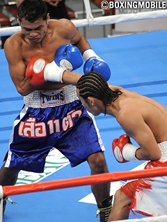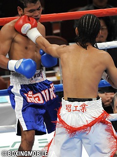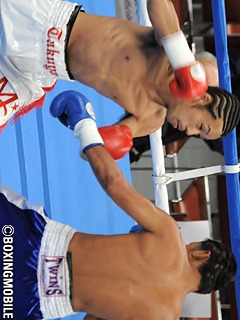 試合:1R、粉川がフェイントをかけながらワンツーがクリーンヒットし、早くもワンパデスックがダウン。2~3Rはダウンを取られたワンパデスックが左ストレート・右フックで攻め込むが、粉川もワンツー・左フックで迎え打つ。4R、打ち合いに出たワンパデスックに対し粉川が右ストレート・左フックがクリーンヒットさせ再びダウン。レフリーがここで試合を止めた。