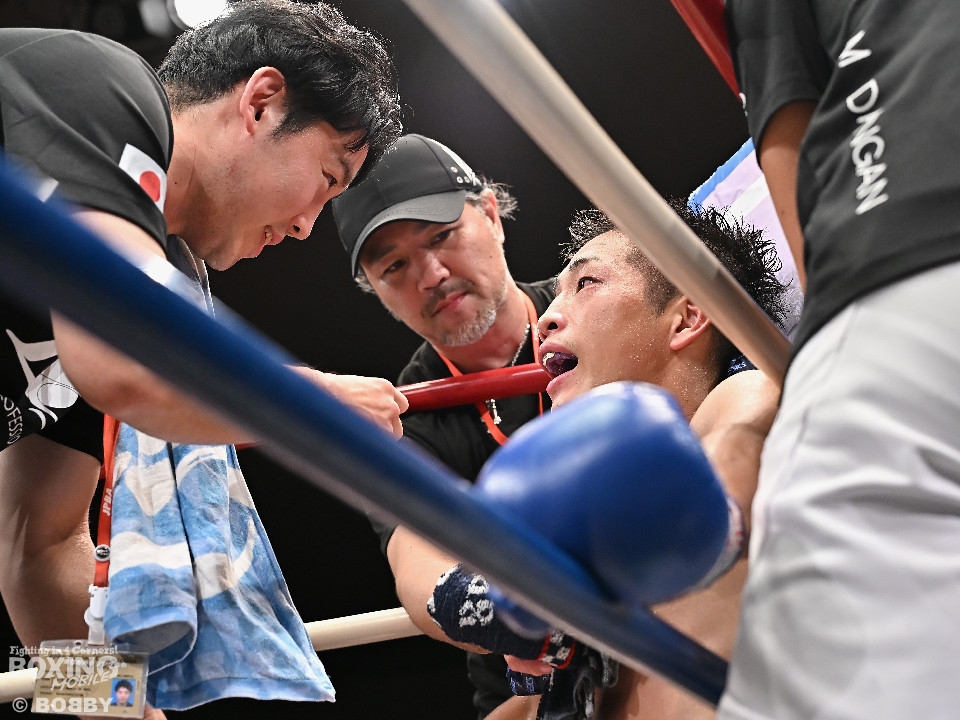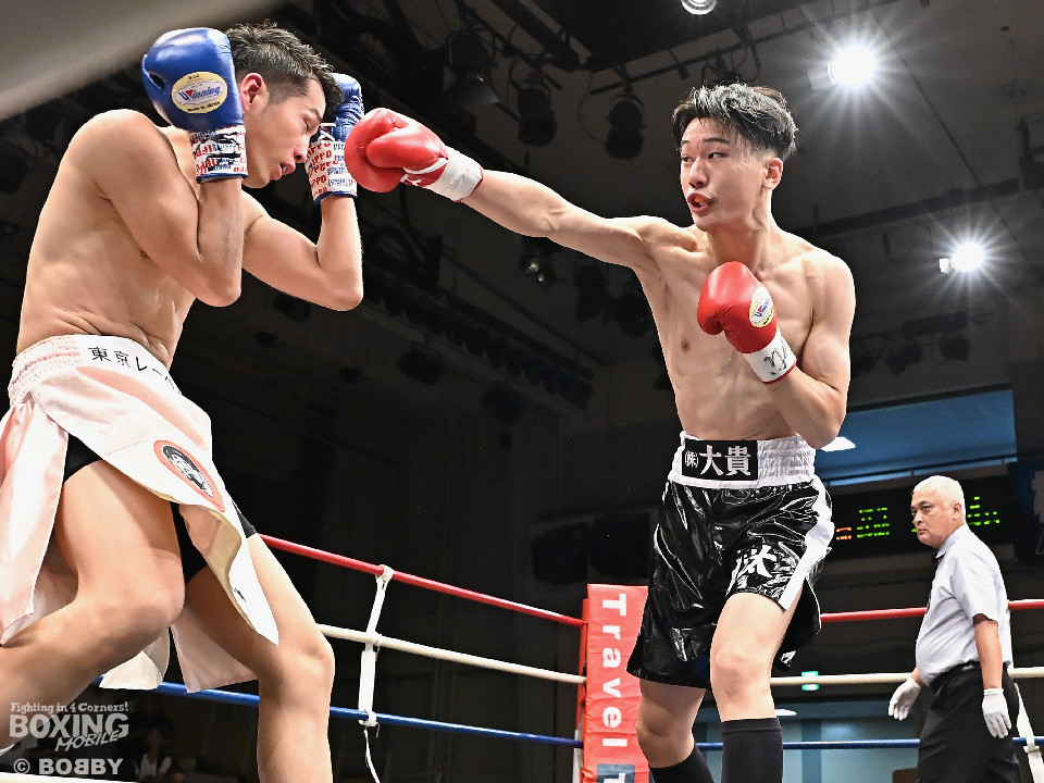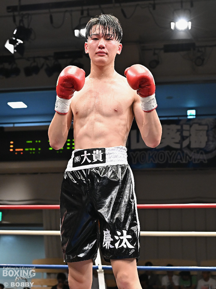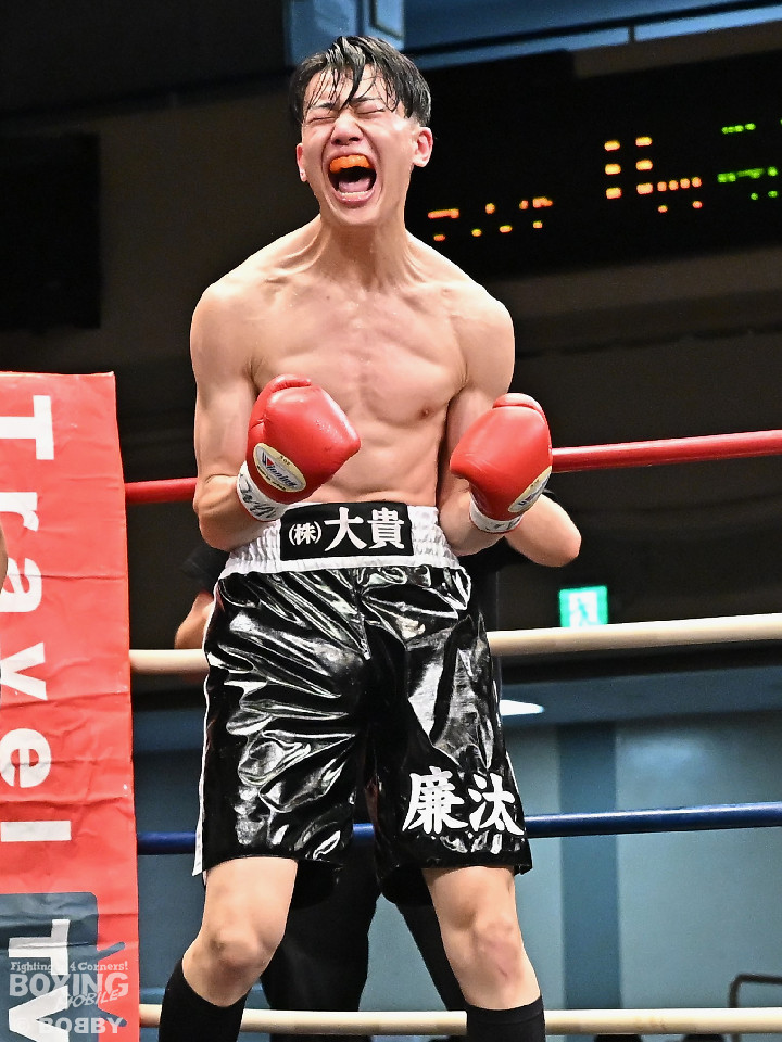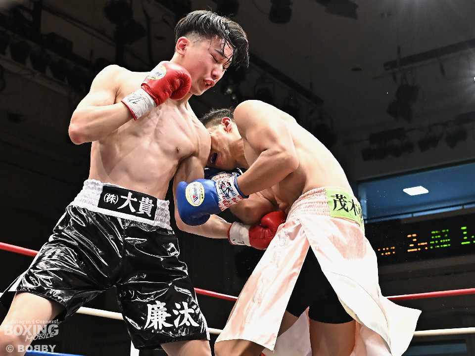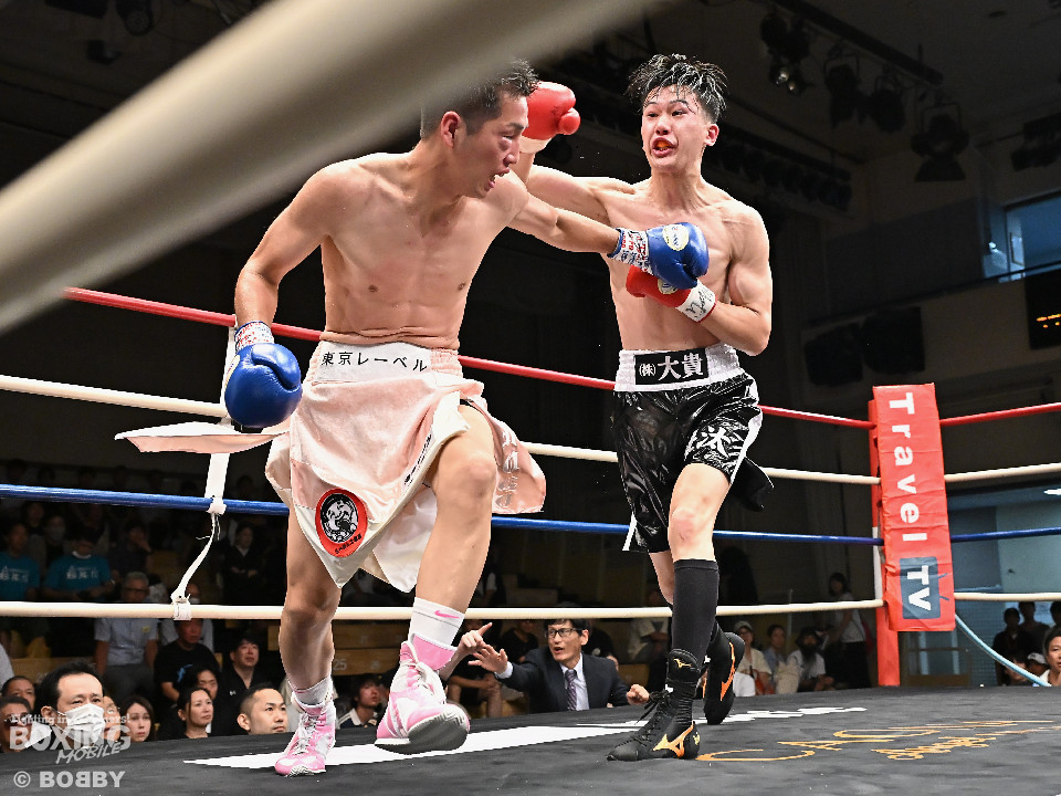試合:倉持がジャブから左ボディにつなげて丁寧な組み立て。6年3ヶ月ぶりにカムバックした山本は、左フックを合わせるが後手に回った印象。2回、激しいパンチの応酬を繰り広げる中、山本はヒッティングで右目下を負傷。3回、倉本はワンツーで腰を沈めさせるとパンチをまとめたところで山本陣営が棄権を申し出た。倉持が初のKO勝ちでB級昇格を決めた。