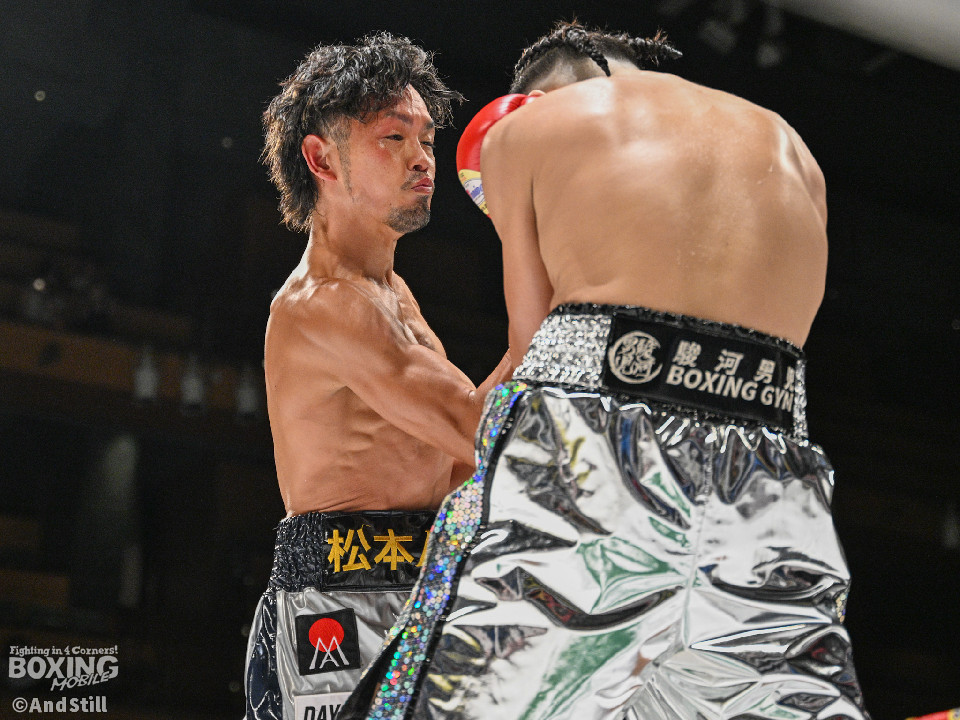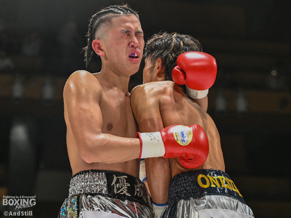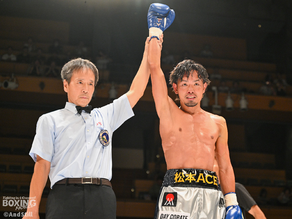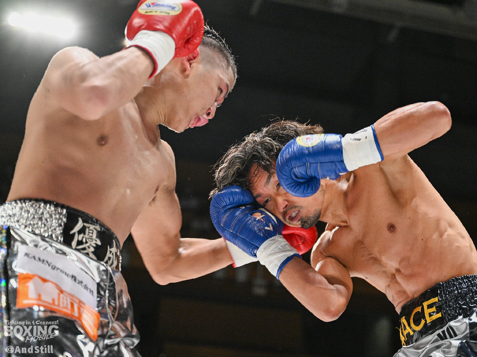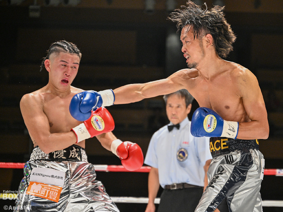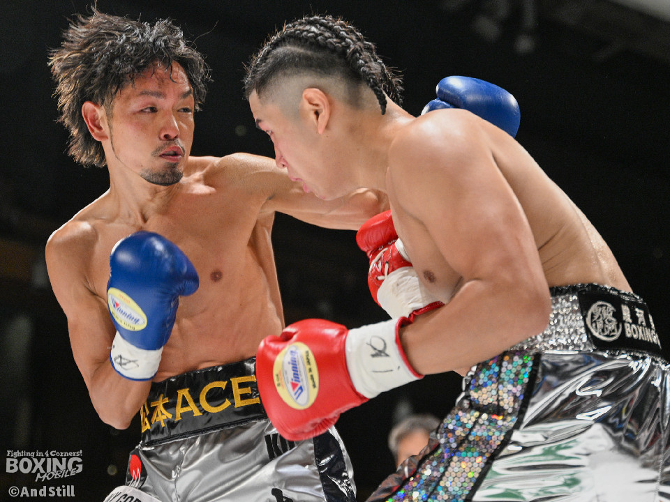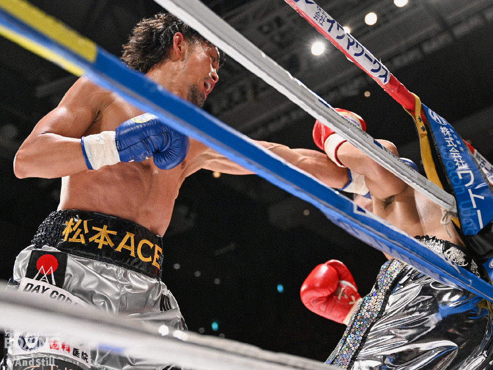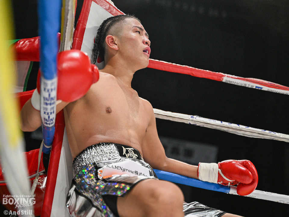 試合:アッパーでリズムを作る土屋に対して、初回、白井はジャブと左ボディで応戦、右ストレートも見せた。2回、右アッパーからの連打で仕掛けてきた土屋に対して、白井は右ストレートと左ボディを返すが、土屋は手数を増やして連打を続けた。3回はサイドステップで切り替えながら土屋のプレスを外した白井だが、土屋が右アッパーの後に左右の連打をまとめたところで、レフェリーが試合を止めた。