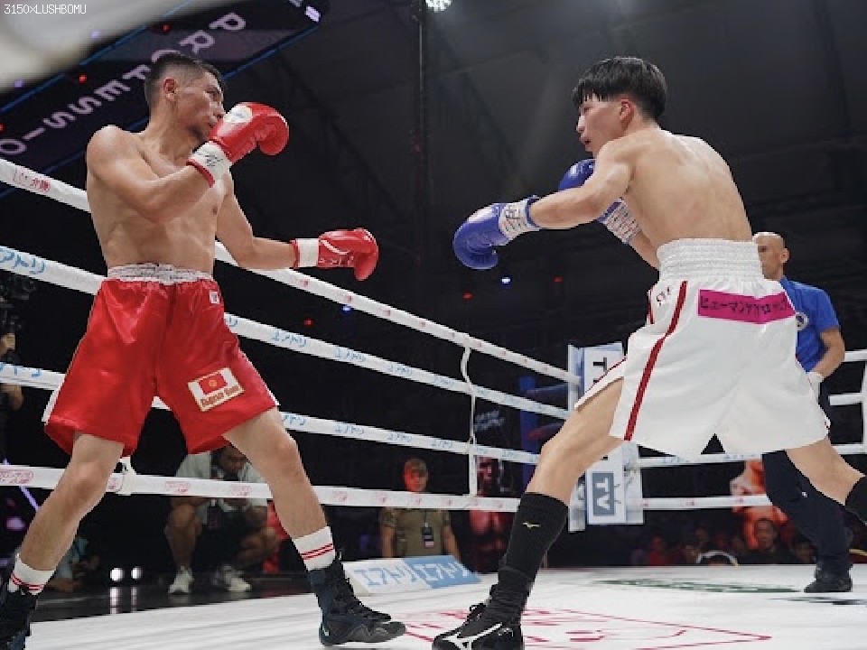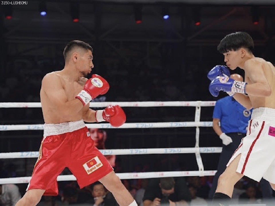試合:最初からスイッチしながら入田と対峙したホジエフ。入田が踏み込むタイミングにカウンターをコンパクトに合わすホジエフ。初回に身長で勝る入田がバランスを崩す場面もあった。2回はリングを大きく回りながらスイッチを繰り返すホジエフが、カウンターに踏み込んで右ストレートを突き出した。3回、ホジエフが真っ直ぐ前に出て左フックから真っ直ぐ伸ばした左右の連打でダウンを奪った。後ろに倒れた入田はダメージを感じさせずすぐに立ち上がった。4回はホジエフが突っ込んでくるとバッティングする場面が増えた。5回、中間距離を保ってロープ際を大きく回るホジエフを入田が追うがカウンターを警戒して距離を詰めきれず。最終回、入田は前に出て右ストレートを上下に打ち分けて打ち合いに行った。ホジエフも左右のストレートを強振して打ち合いに応じた。最後は足を使って挑発しながら距離を保ったホジエフが勝利を確信した。