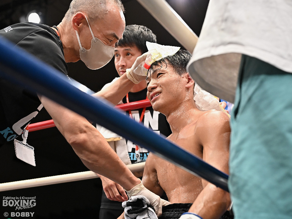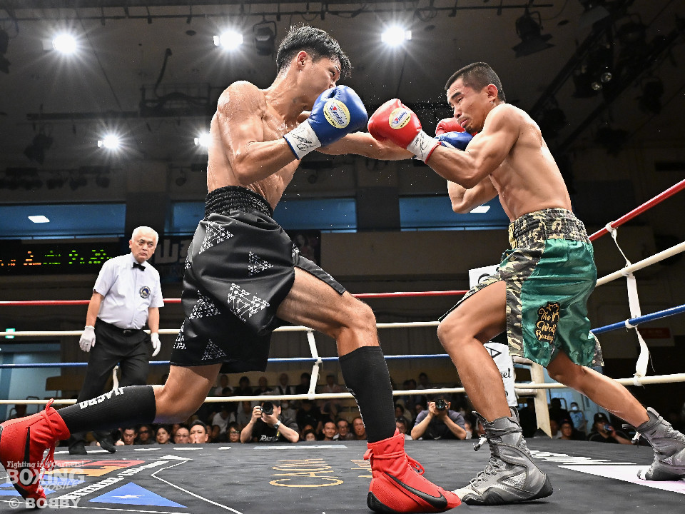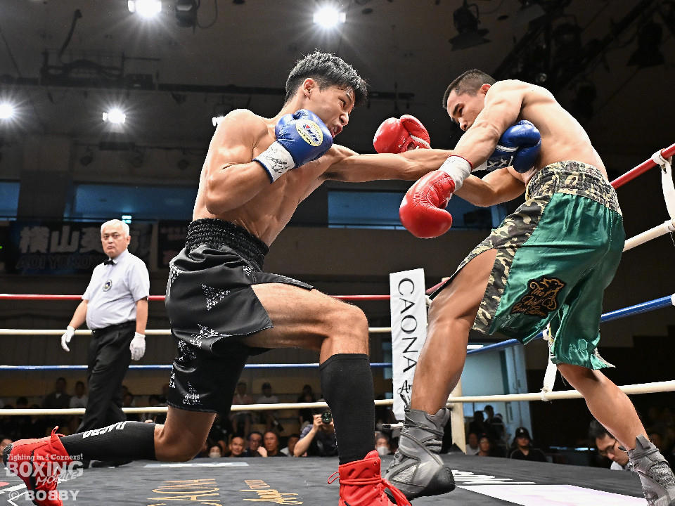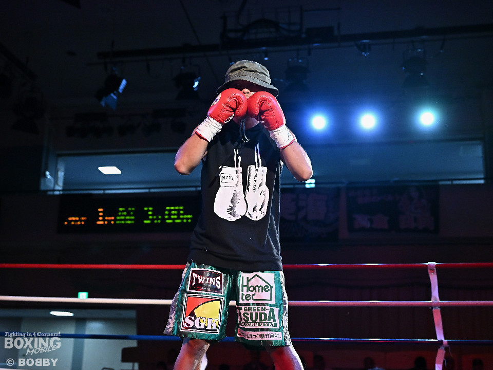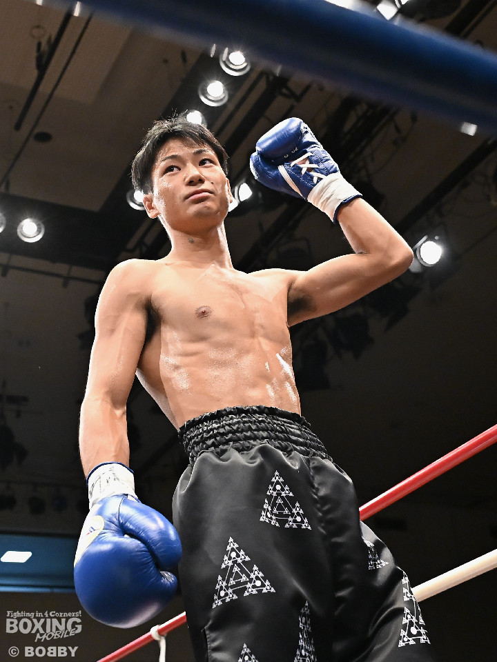 試合:サウスポー為我井が前の手で距離を測りながら右フックを好打するとリズム感のある攻撃でペースを掌握。2回、為我井は上下に打ち分けて丁寧な組み立て。3回、打ち終わりに右を合わせようとするラードチャイだが、相手のスピードについていけず。続く回も為我井のラウンド。強弱をつけながら左ボディストレートを突き刺しポイントを加点。5~6回、為我井のジャブが面白いにように当たる。距離をキープしながら右ボディ、ワンツーをヒット。ワンサイドの展開が続いた。8回、為我井はテンポアップしてワンツーを軸に攻め立てた。為我井がフルマークの判定勝ちでA級初戦を飾った。