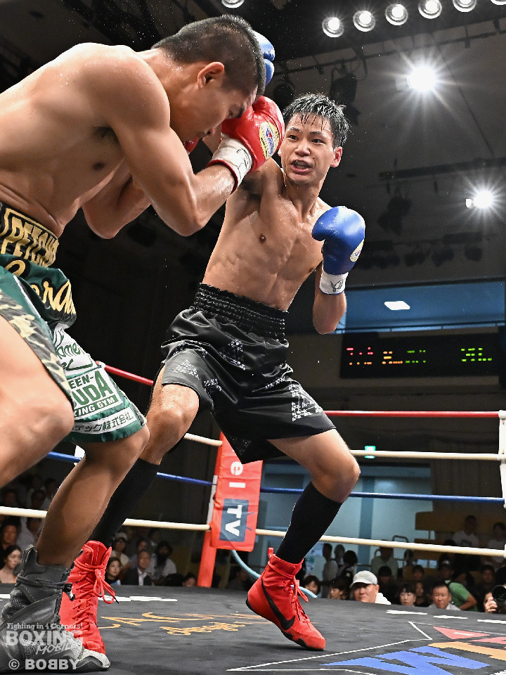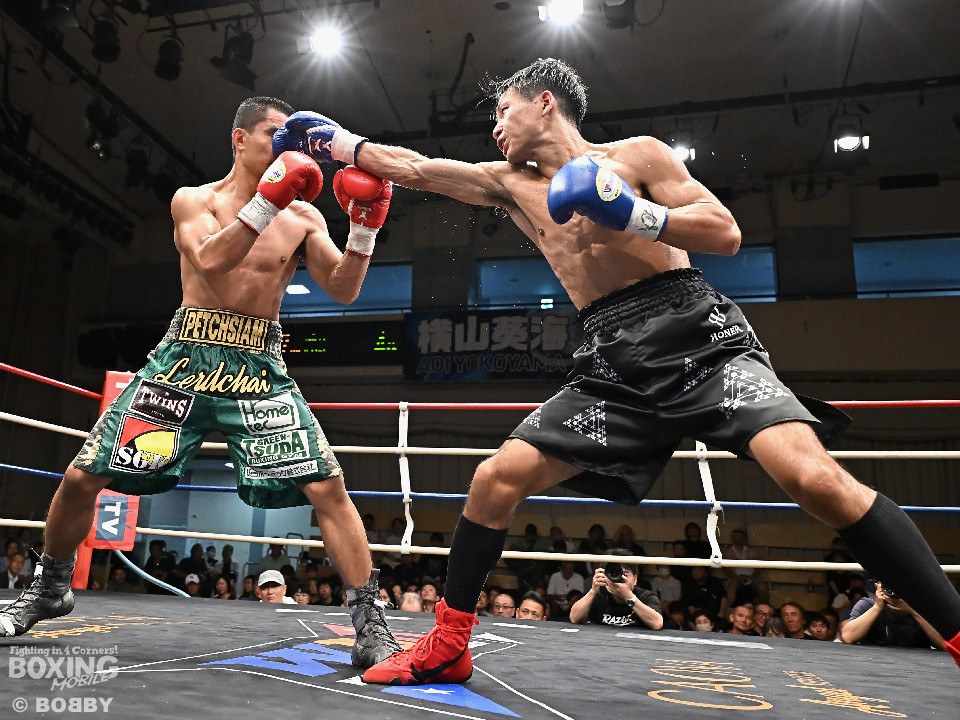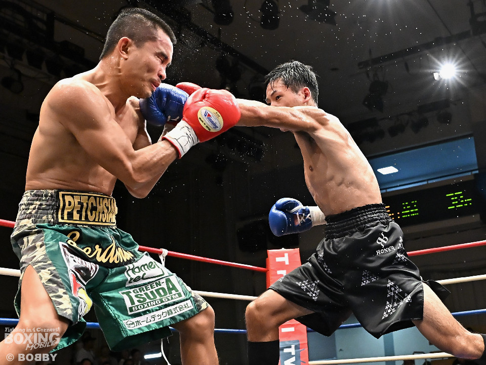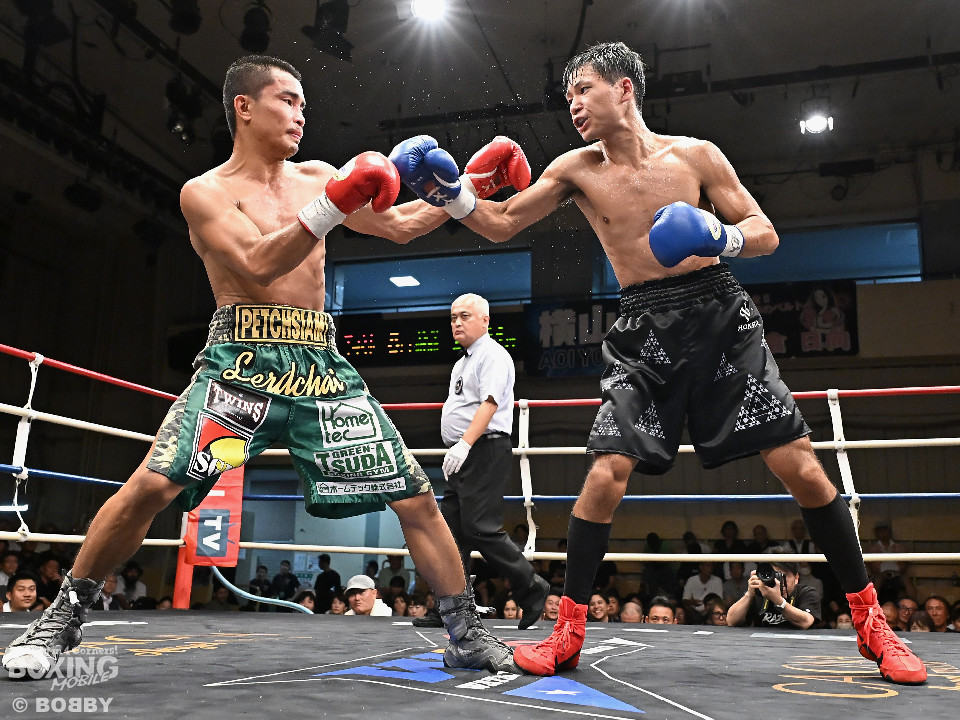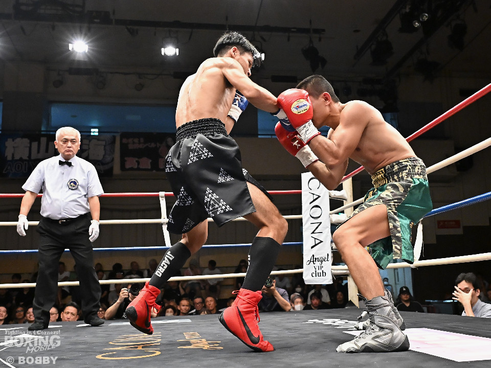 試合:サウスポー為我井が前の手で距離を測りながら右フックを好打するとリズム感のある攻撃でペースを掌握。2回、為我井は上下に打ち分けて丁寧な組み立て。3回、打ち終わりに右を合わせようとするラードチャイだが、相手のスピードについていけず。続く回も為我井のラウンド。強弱をつけながら左ボディストレートを突き刺しポイントを加点。5~6回、為我井のジャブが面白いにように当たる。距離をキープしながら右ボディ、ワンツーをヒット。ワンサイドの展開が続いた。8回、為我井はテンポアップしてワンツーを軸に攻め立てた。為我井がフルマークの判定勝ちでA級初戦を飾った。