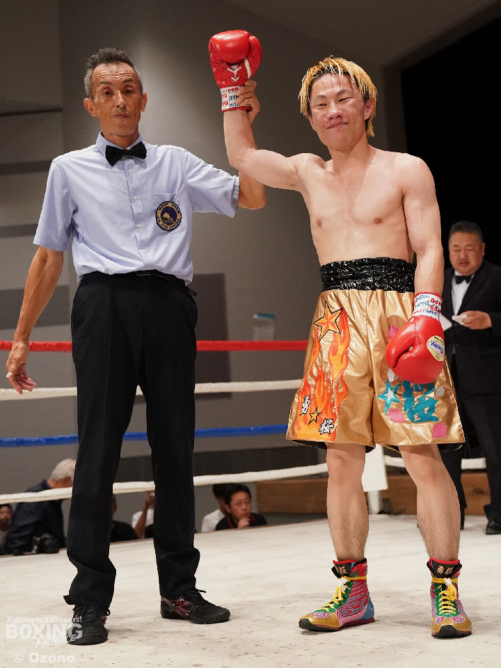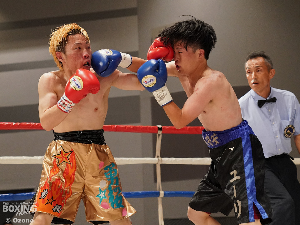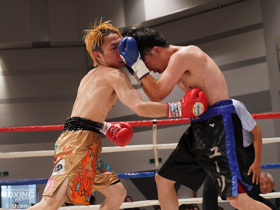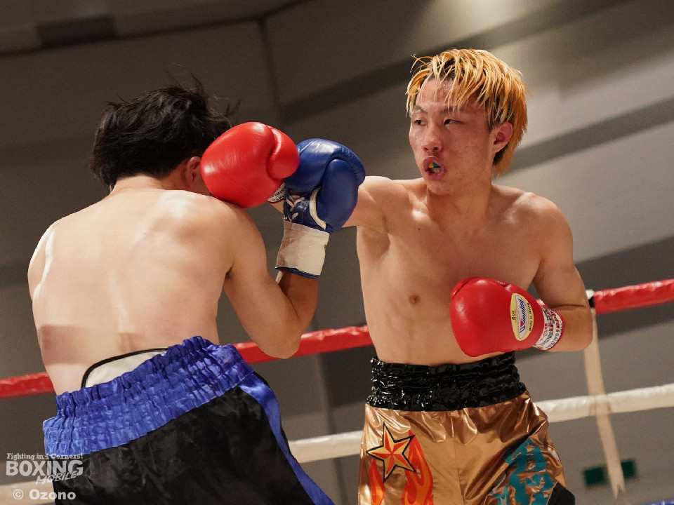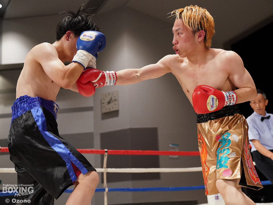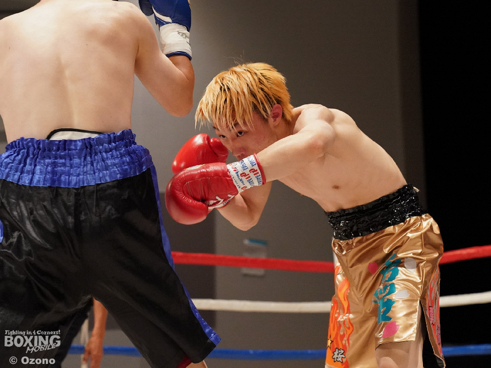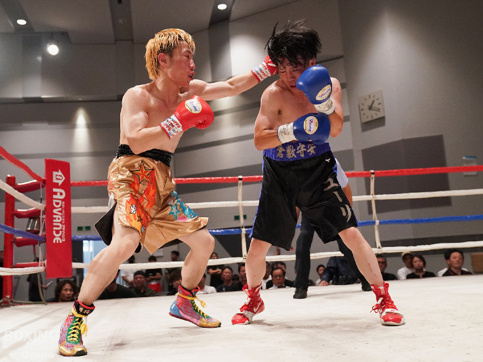 試合:右ジャブから組み立てるサウスポーの増川に対して、高木は右ボディを再三ヒットした。2回は距離が近くなった。増川の右フックと左ストレートでリズムを作った。3回は頭をつけて打ち合う展開。増川の右フックが光った。高木はガードの上から連打を打ち込んだ。最終回も最後まで打ち合いを続けた。