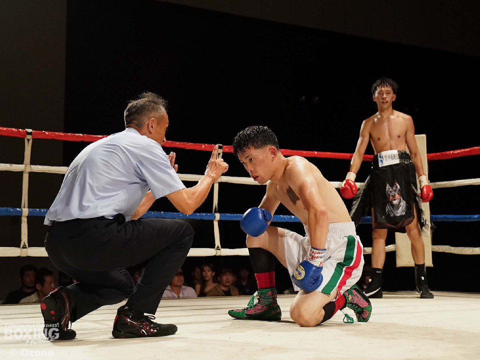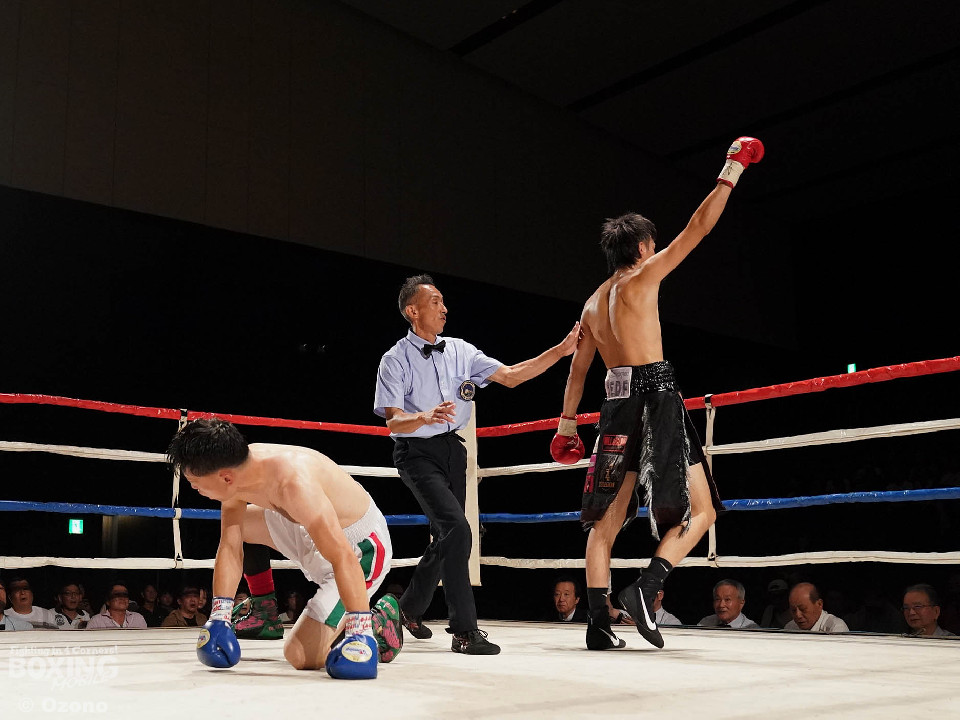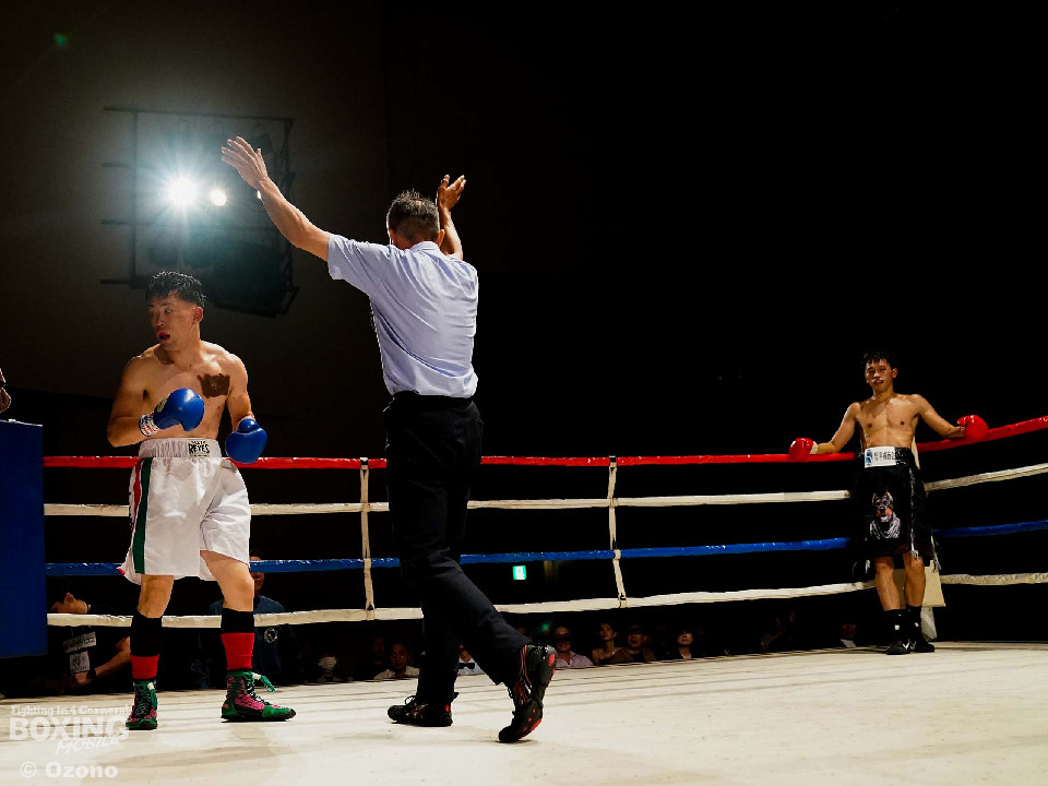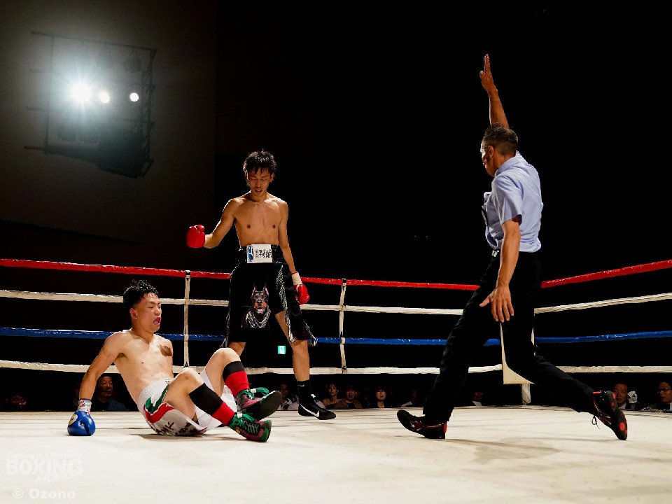 試合:ゴングと同時に低い姿勢で飛び込んだ早川に対して、芝本は右を打ち下ろして応戦した。早川は距離を詰めて連打、芝本はジャブでスペースを作って左ボディを叩いた。試合が決まったのは3回、早川が距離を詰めに入ったところに、芝本が左ボディでダウンを奪った。立ち上がった早川だったが、連打を打ち込まれたところで、セコンドからタオルが放り込まれた。
