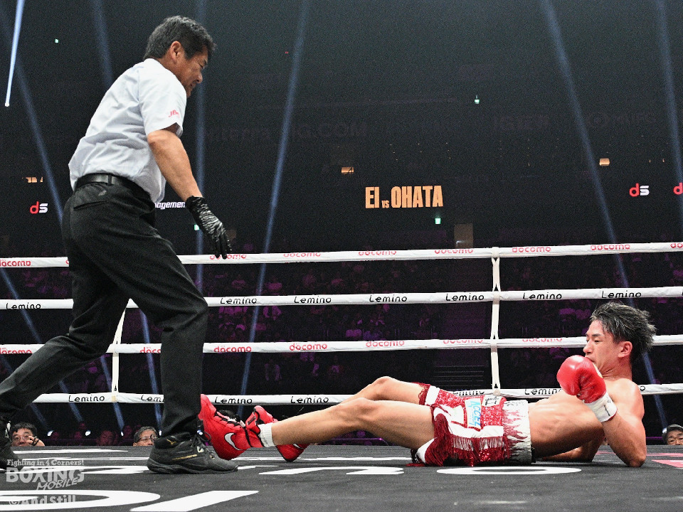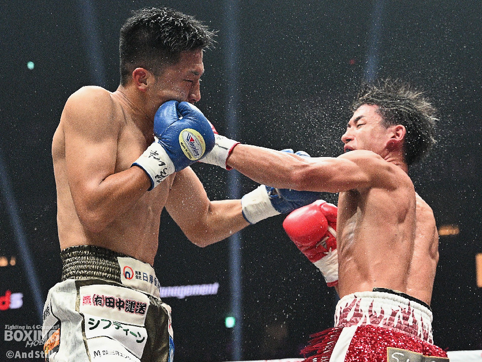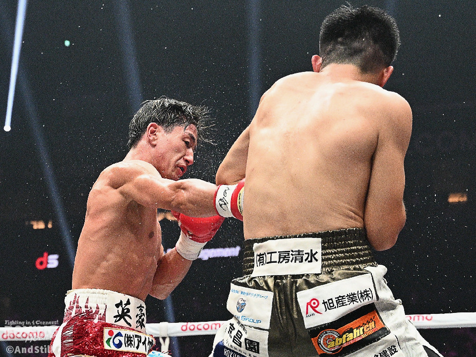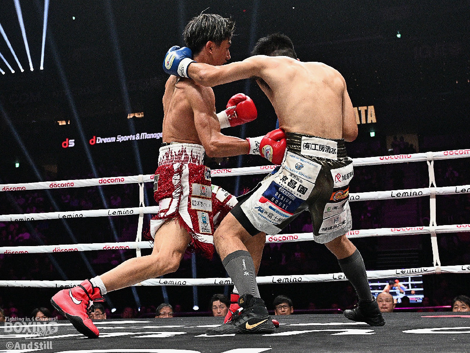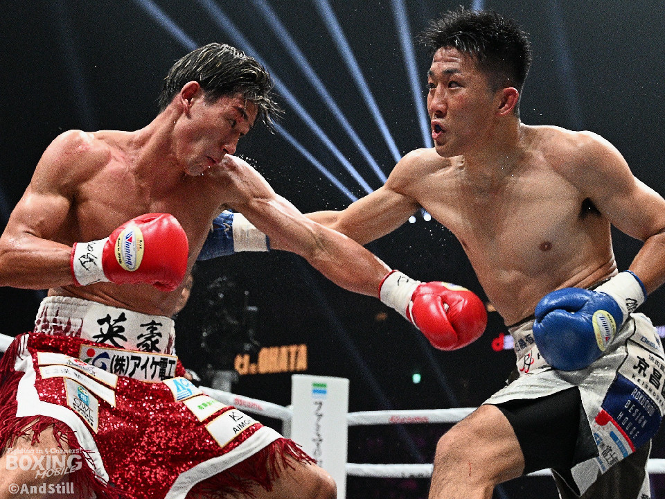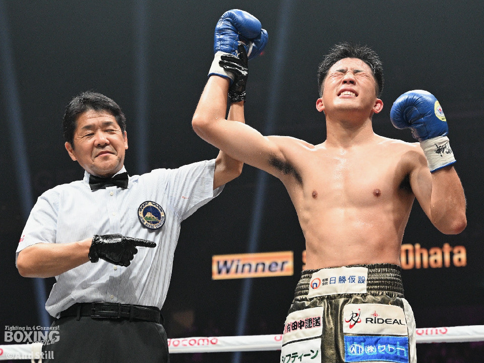 試合:スーパーフェザー級ランカー対決は、大畑が前後の動きを意識しながらリズム感のある攻撃を披露。2回、中間距離でし烈なペース争いを繰り広げる中、英豪がワンツージャブをヒット。偶然のバッティングで英豪は左目上をカット。3回、ジャブの差し合いで神経戦が続く中、大畑がやや上回った印象。4回、激しいパンチの応酬の中、大畑の左フックがジャストミート!大の字に倒れた英豪は立ち上がろうとしたが足元がふらつきレフェリーストップとなった。大畑が見事なKO勝ちを飾った。