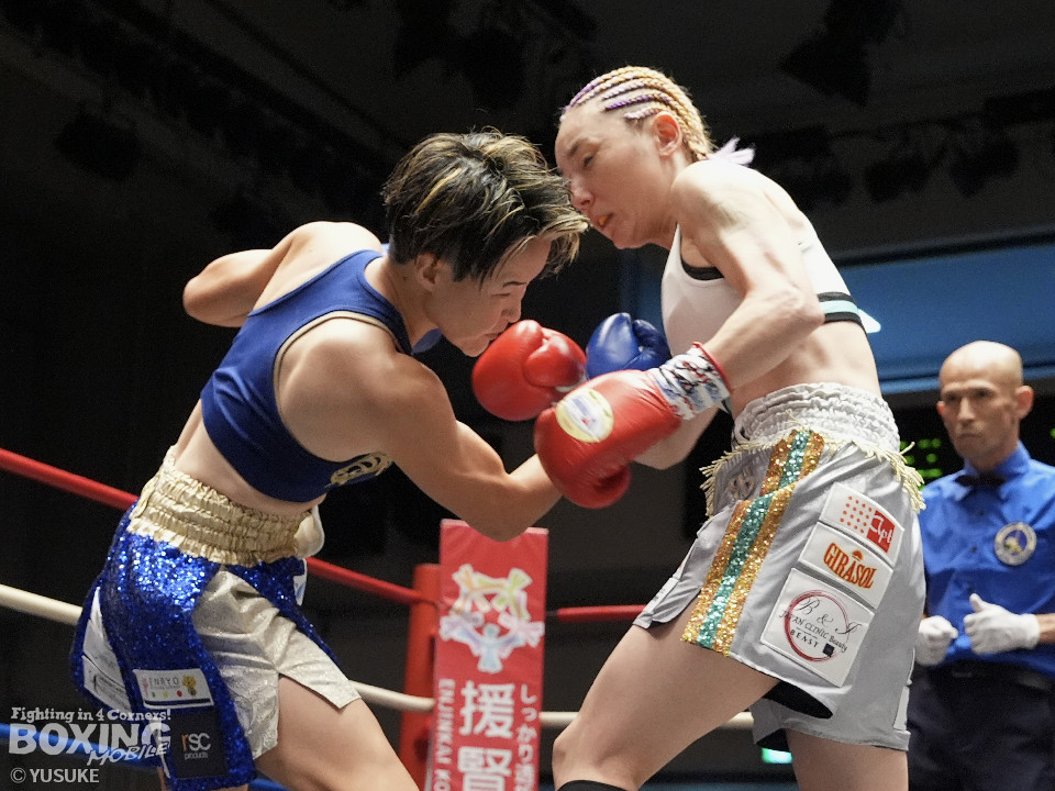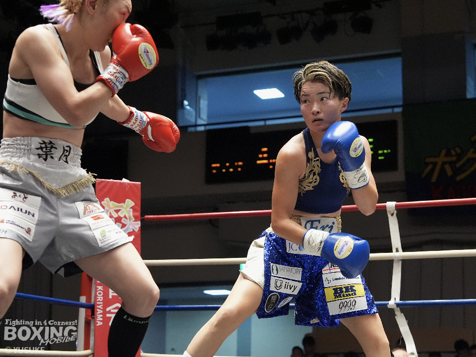 試合:前WBA・IBF世界アトム級統一王者の松田と世界ランカーの葉月が拳を交えた。初回、サウスポー松田がステップを刻みながら左フックから切り込み先制。2回、松田は前の手でコントロールしながらスピードを活かした攻撃を披露。スイッチを織り交ぜながら捕まえに行く葉月だが、思い通りの展開を作れず。3回、葉月はノーモーションの右ストレートをヒットすると左右フックで反撃。4回、松田は打ち合いに付き合わず、右フックを軸にアウトボクシングを徹底。偶然のバッティングで松田は左目下を負傷。5回、松田は左ボディアッパーを突き刺すと打っては離れてでポイントを加点。6回、葉月はプレスをかけてワンツーを軸にアグレッシブな姿勢。7回、葉月は左右フックでグイグイと攻めると松田も負けじと応戦。頭がぶつかり葉月は右前頭部を腫らした。8回、松田は回転力を活かした連打で押し込むと気持ちが強い葉月を振り切った。ジャッジ2者の支持を得た松田が熱戦を制した。