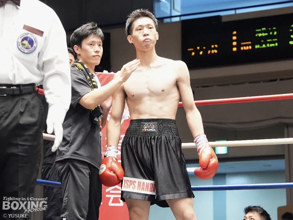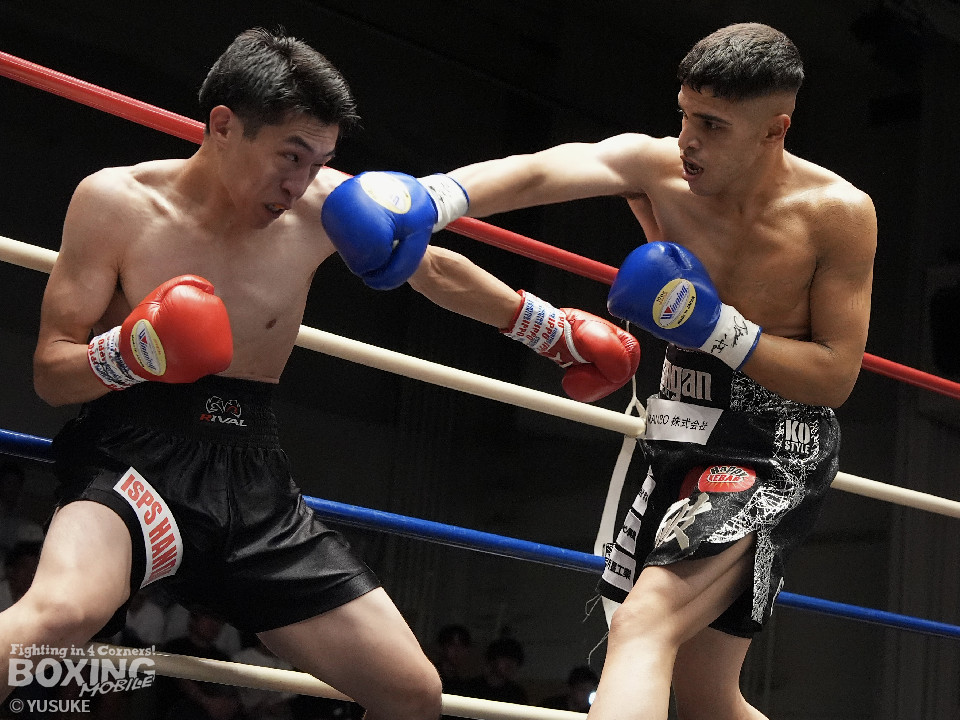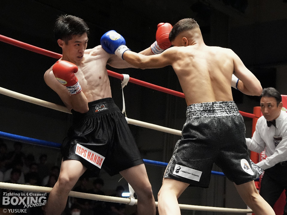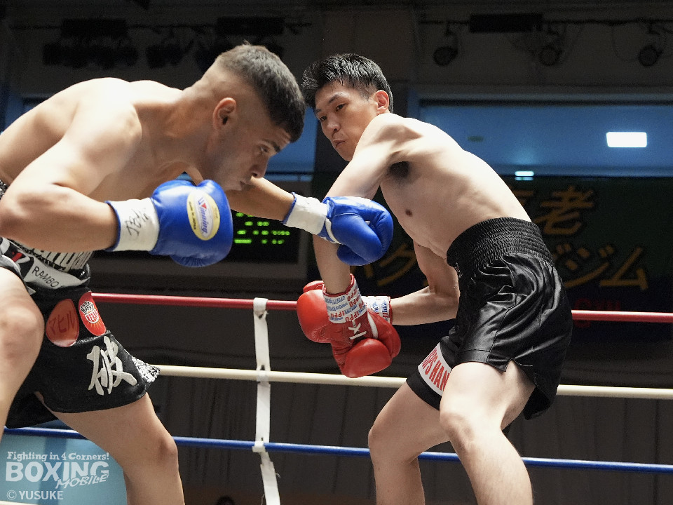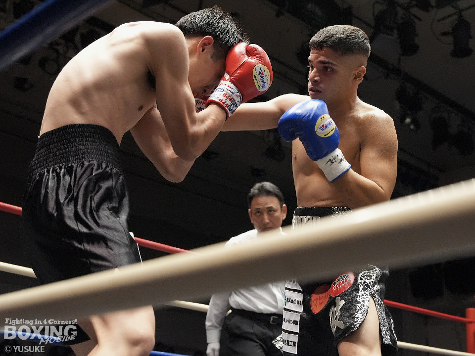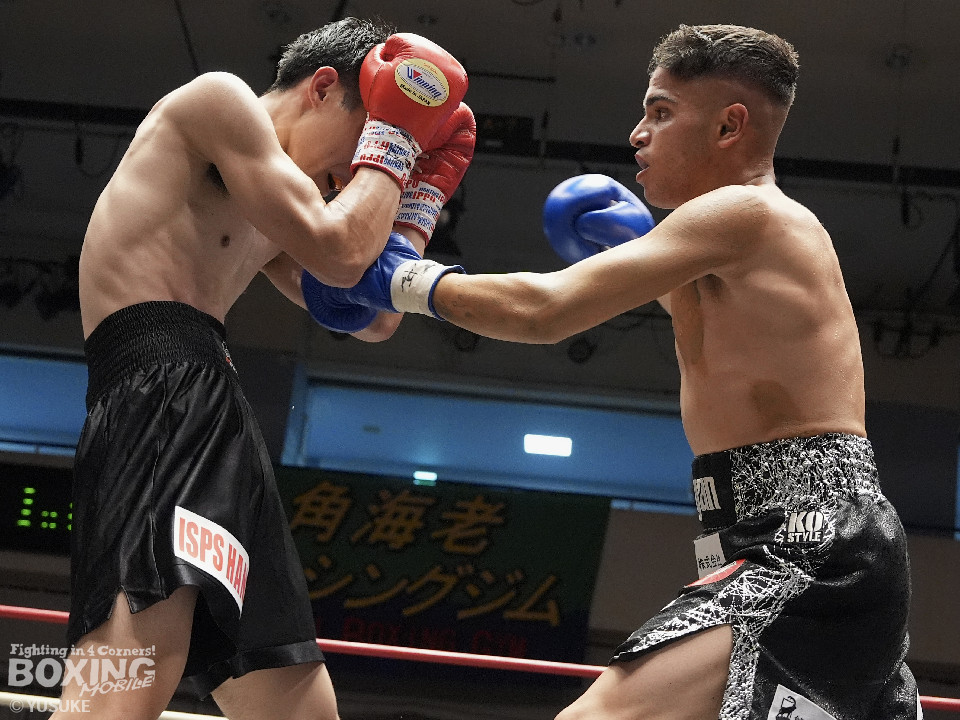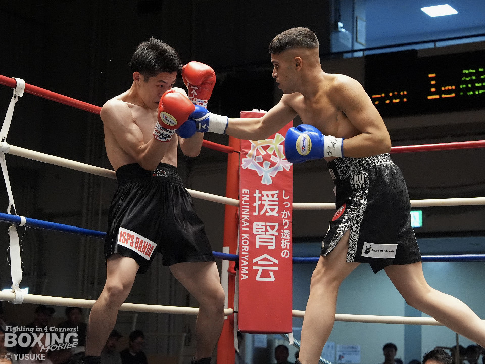 試合:ハリルが長いリーチを活かした右オーバーハンドを叩きつけて先制。グイグイと攻め立てて倒しに行く姿勢。ガードで嵐が収まるのを待った野口だが、守勢を強いられた。2回もハリルは手数で押し込み押せ押せの展開。3回、ハリルは打ち下ろしの右ストレートで顔を弾くと積極的な攻撃。左フックを返した野口だが、ポイントを取り切るまでには至らず。4回、ハリルは左ボディを突き刺すと最後まで攻撃の手を緩めなかった。トルコ出身のハリルが初陣を飾った。