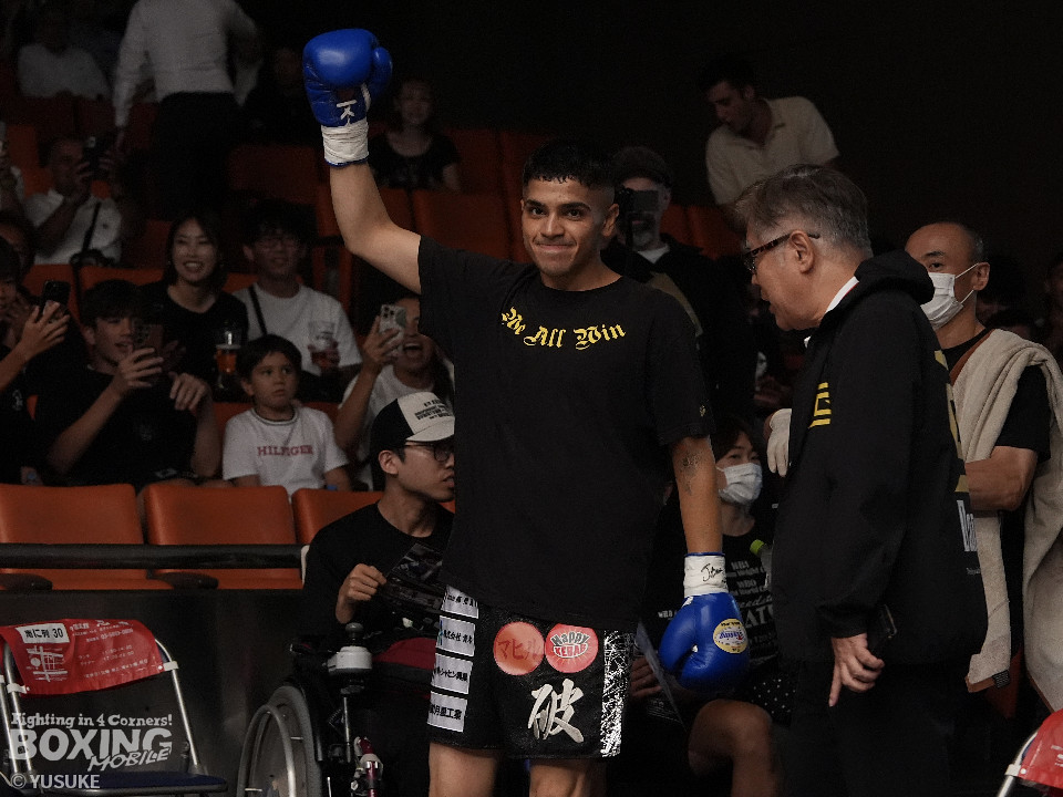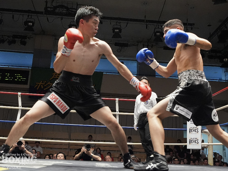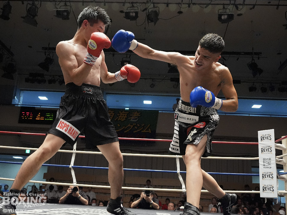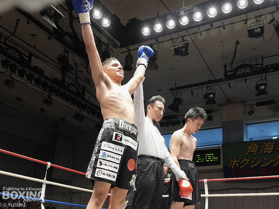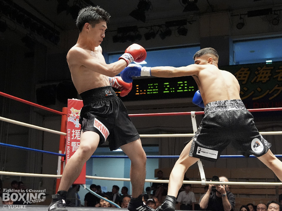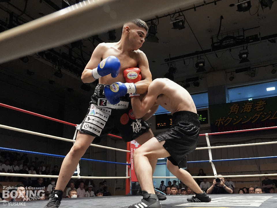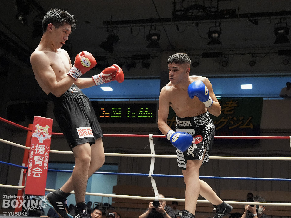 試合:ハリルが長いリーチを活かした右オーバーハンドを叩きつけて先制。グイグイと攻め立てて倒しに行く姿勢。ガードで嵐が収まるのを待った野口だが、守勢を強いられた。2回もハリルは手数で押し込み押せ押せの展開。3回、ハリルは打ち下ろしの右ストレートで顔を弾くと積極的な攻撃。左フックを返した野口だが、ポイントを取り切るまでには至らず。4回、ハリルは左ボディを突き刺すと最後まで攻撃の手を緩めなかった。トルコ出身のハリルが初陣を飾った。
