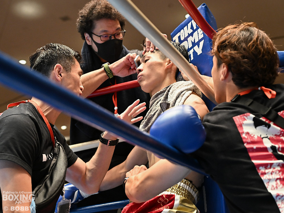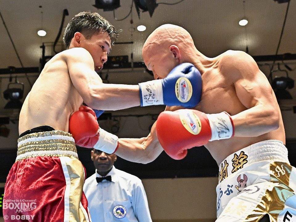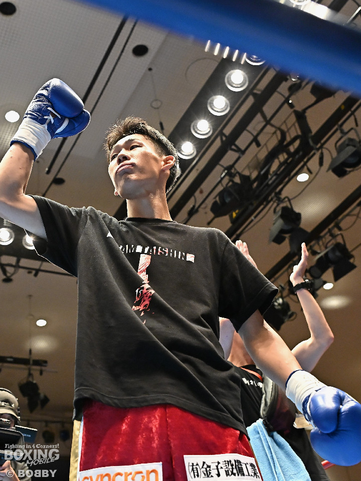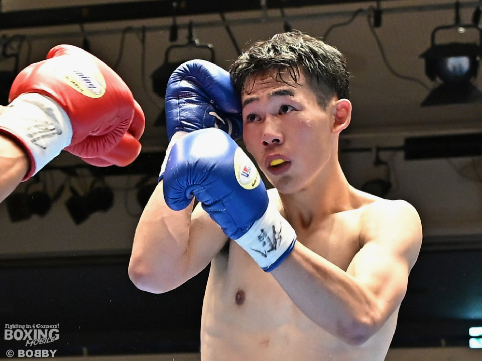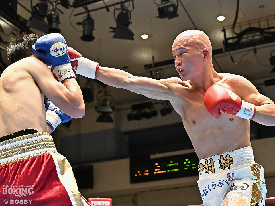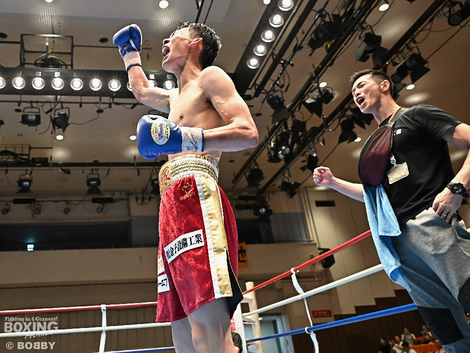 試合:中村がボディにコツコツと集めて積極的に攻めるが、サウスポー鬼塚は左カウンターで膝を揺らして応戦。2回、中村はプッシュしながら、しつこいボクシングを展開。3回、鬼塚は打ち下ろしの左ストレートでガクッと腰を沈めさせると連打で攻勢。4回、鬼塚は左ボディストレートを差し込むと回転力を活かした連打で攻め立てて粘る相手を振り切った。