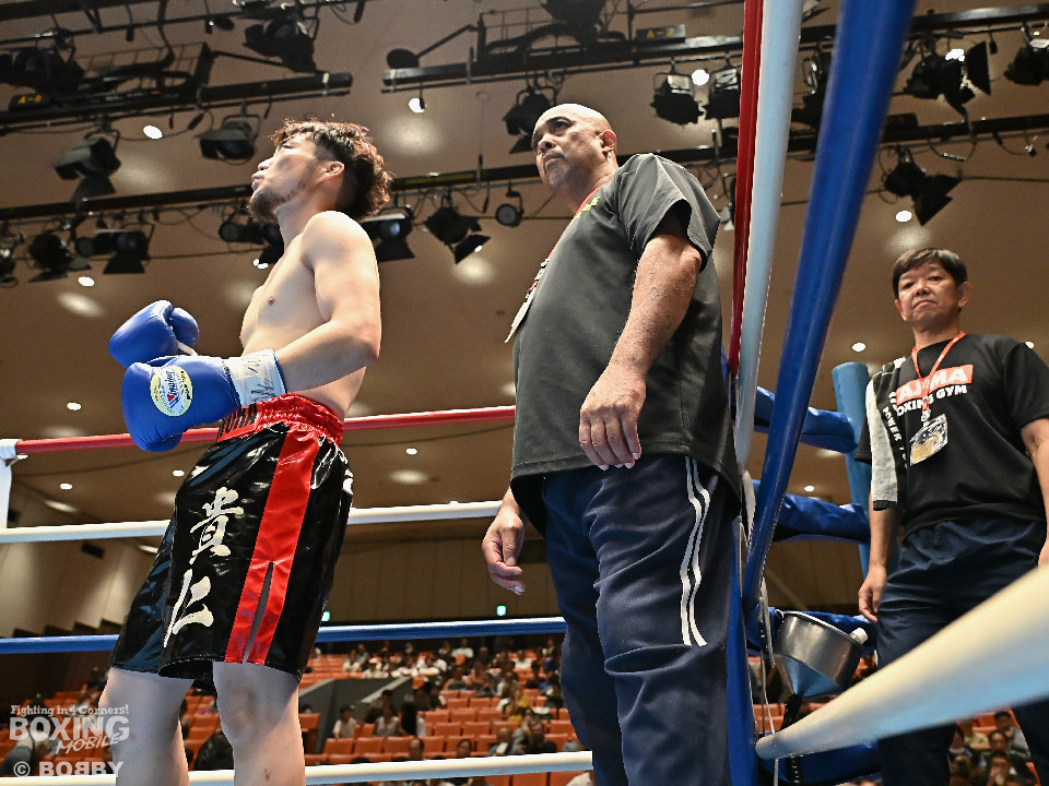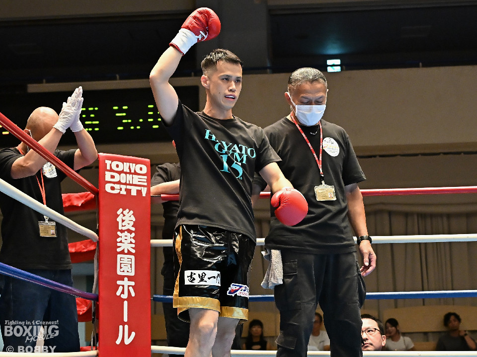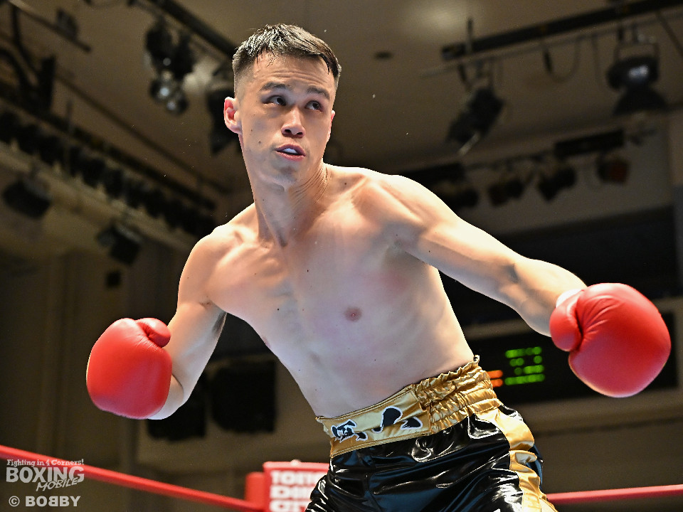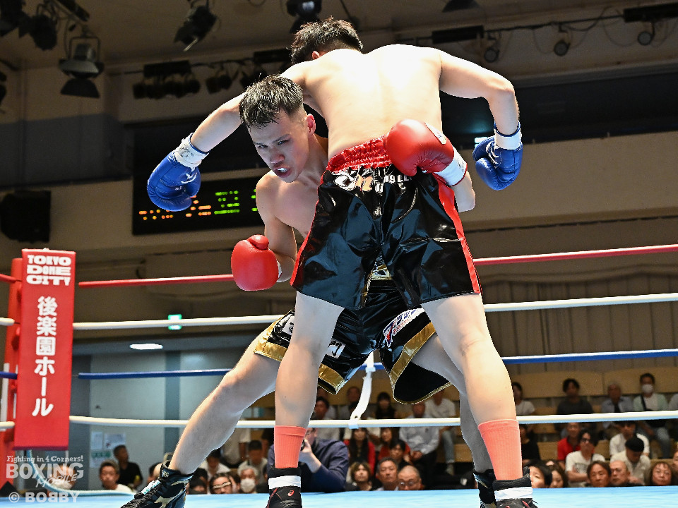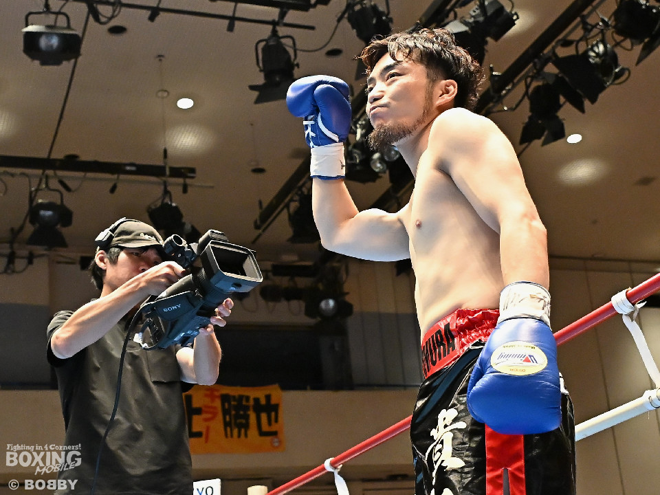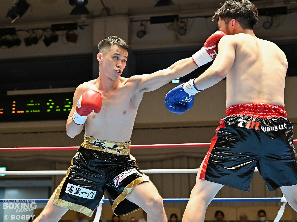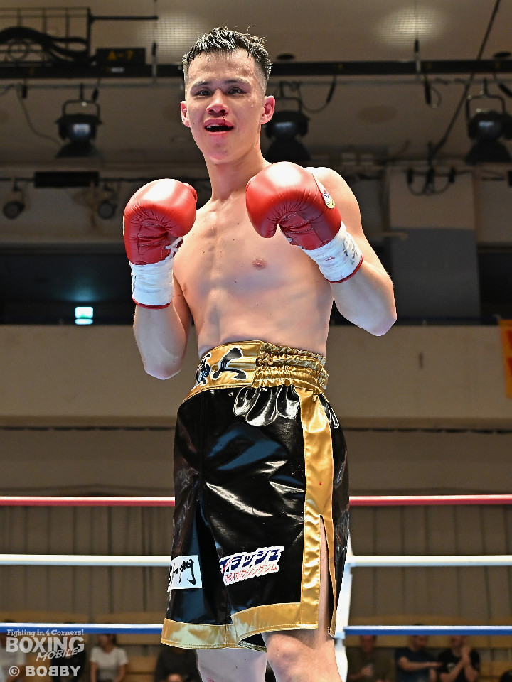 試合:距離がかみ合わず決定打が出ない中、猪爪が単発の右フックをヒット。本来はオーソドックスの中村だがこの日は、サウスポーで挑んだ。2~3回、レフェリーに引き離される展開が続き、ジャッジ泣かせの試合。4回、頻繁にスイッチした中村は左右を振って攻め立てるが猪爪も負けじと右フックを返した。要所で右を当てた猪爪が勝利をつかんだ。
