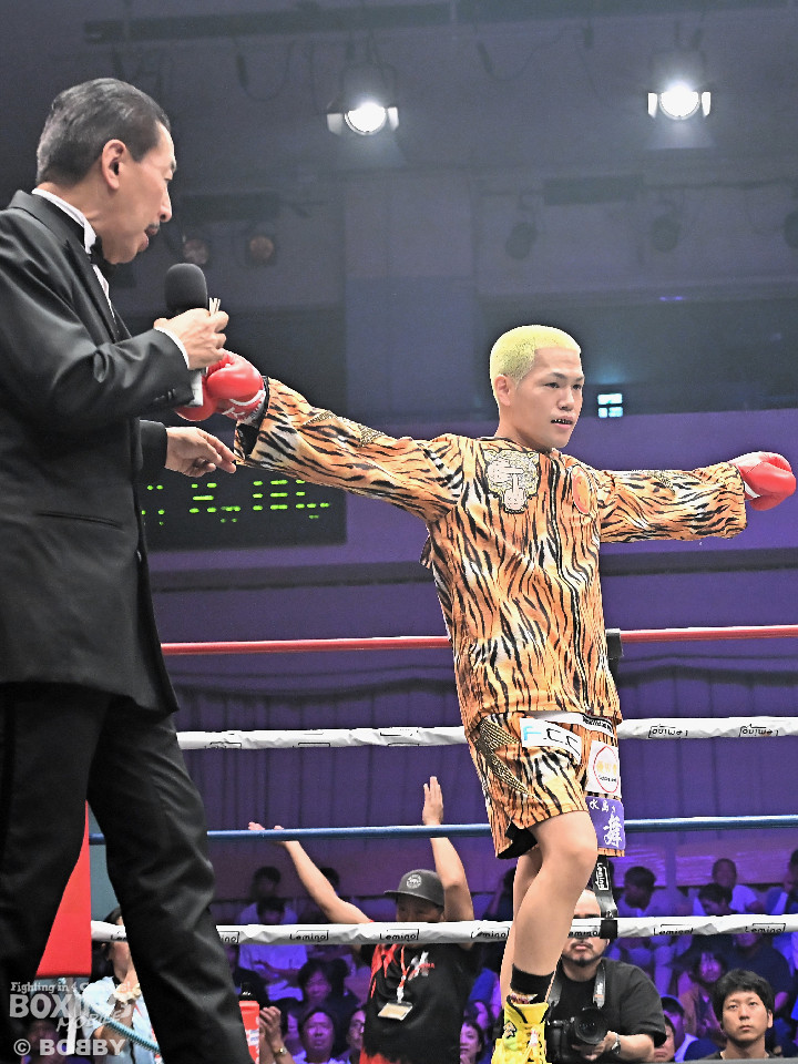 試合:日本ミニマム級挑戦者決定戦、岡田と金谷が3年半ぶりに再戦した。初回、中間距離でし烈なペース争いを繰り広げる中、金谷が右ショートをヒット。2回、サウスポー岡田はカウンターの左フックで痛烈なダウンを奪取!なんとか立ち上がった金谷だったが足元が定まらないのを見たレフェリーは10カウントを数え上げた。岡田がワンパンチKO勝ちで日本王座挑戦権を獲得した。