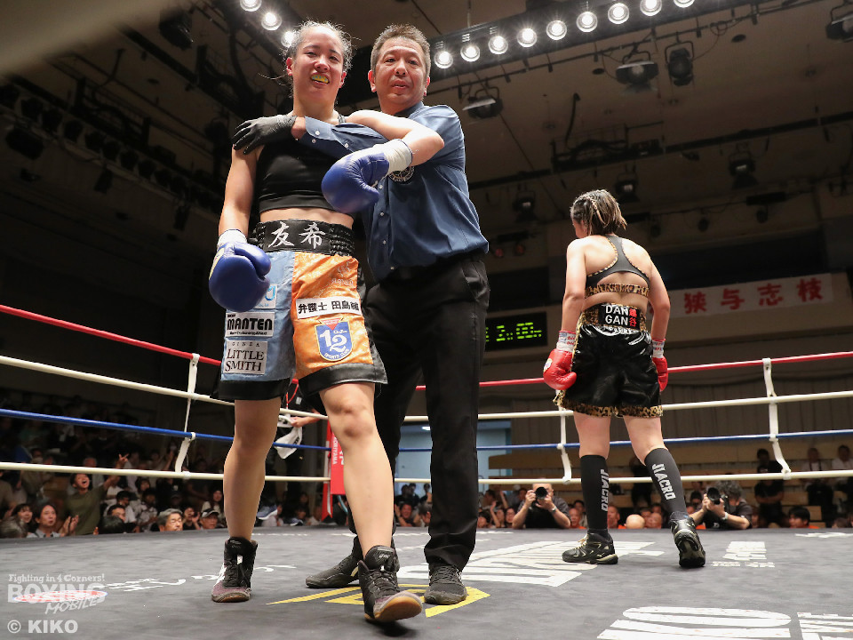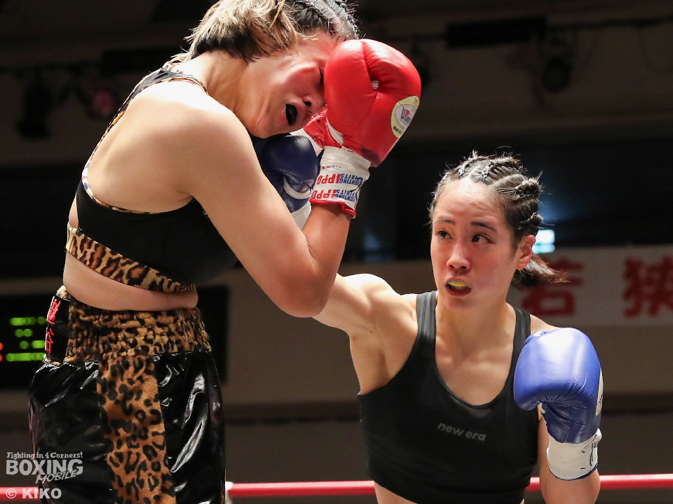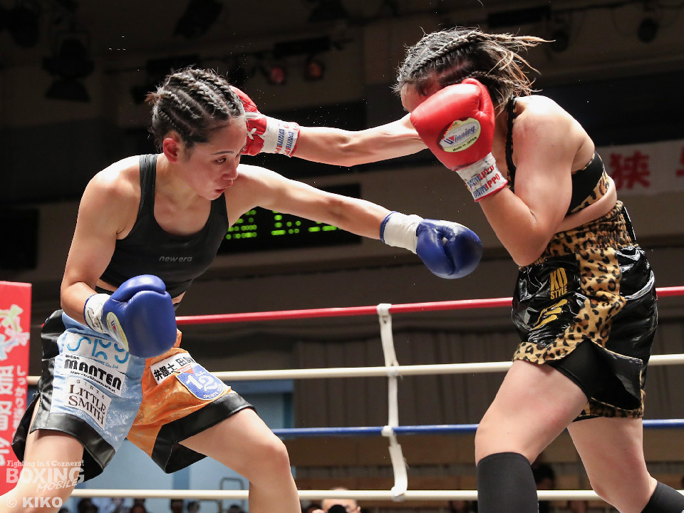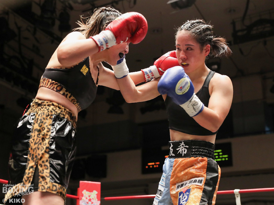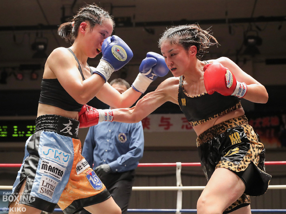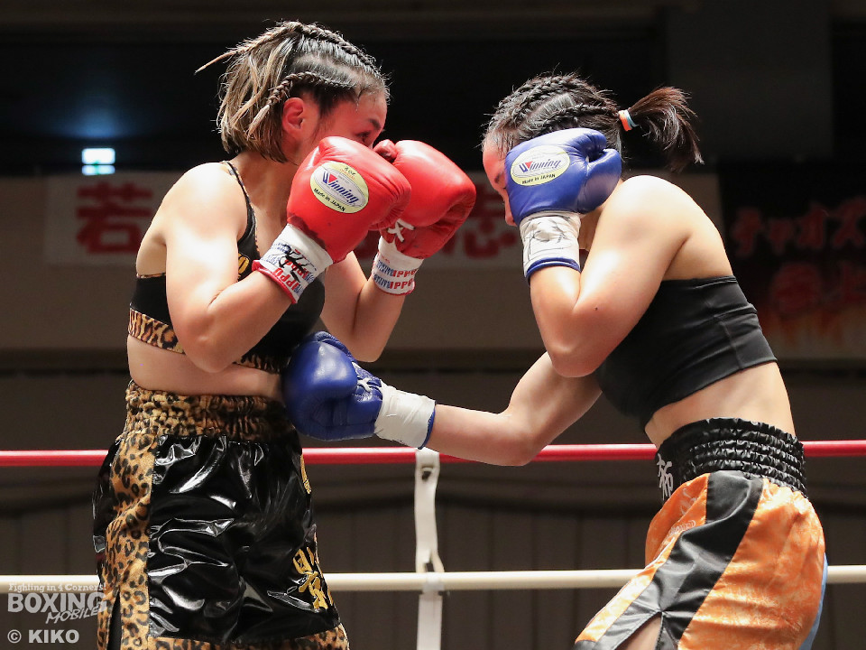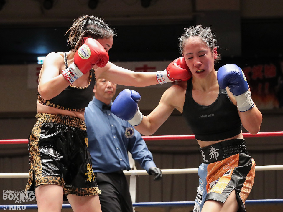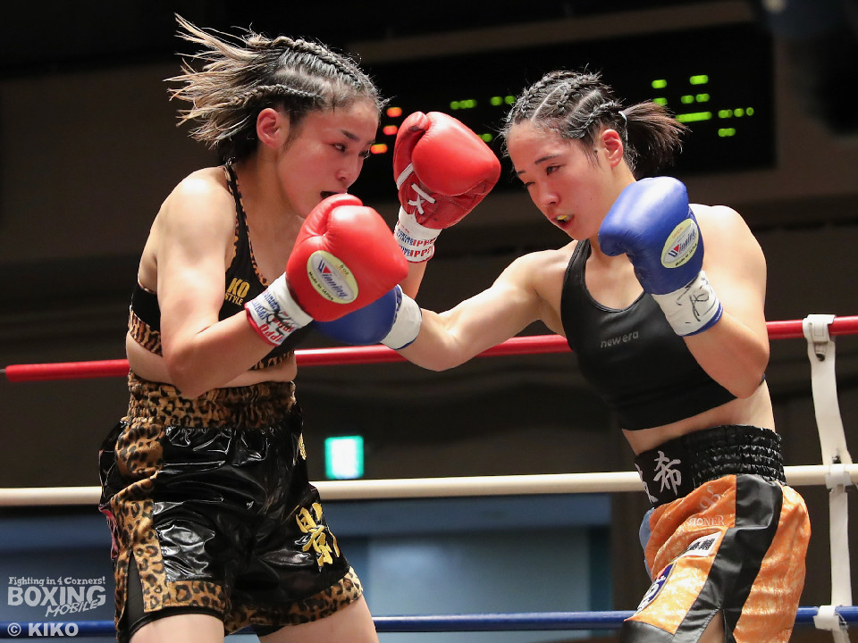 試合:開始から回転力を活かした打撃戦でスタート。影山が左右アッパーを決めれば、片山もパパっと手数をまとめて譲らず。2回、影山はプッシュしながらショートアッパーを軸にグイグイと攻め立てて攻勢。3回、片山は出入りを意識しながらワンツーをヒット。しかし、影山の勢いは止まらない。豊富なスタミナを活かして攻め立てた。勝負が決まったのは4回、影山は残っているスタミナを使い果たすがごとく、左右をまとめてレフェリーストップに持ち込んだ。